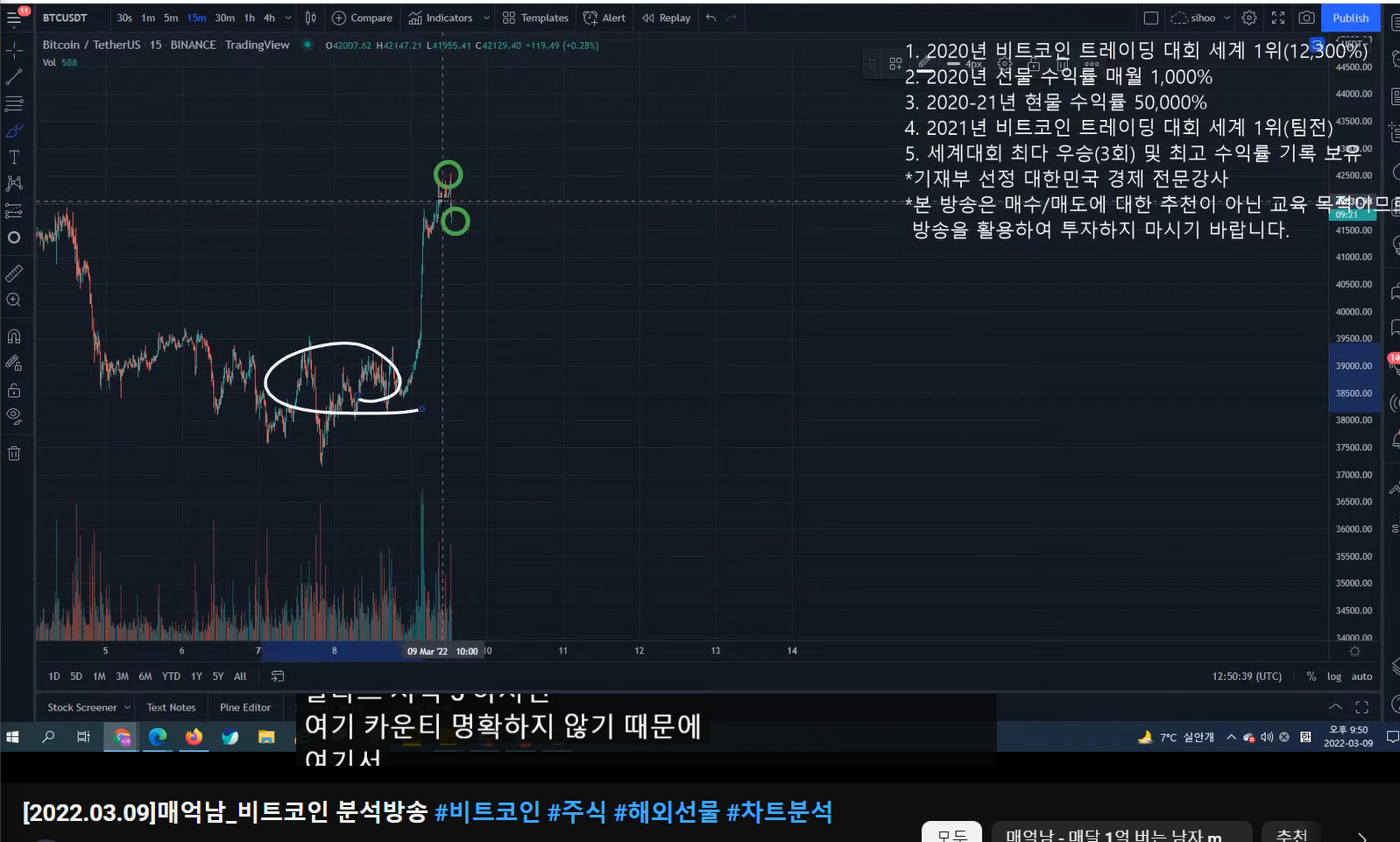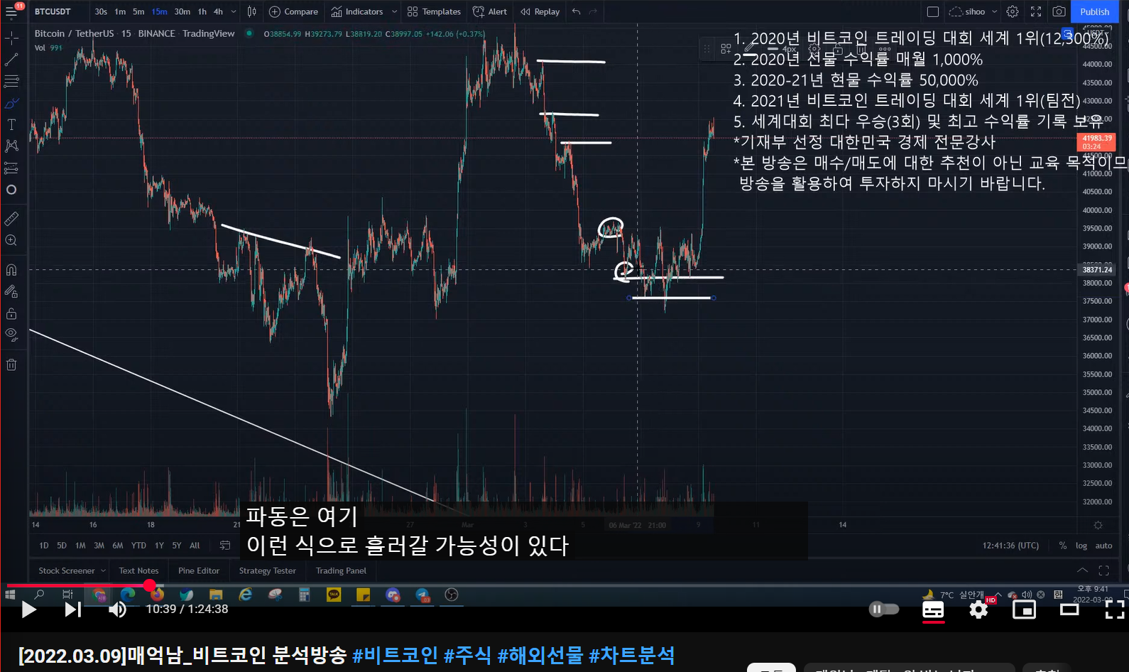 15분 봉 상 차트를 봤을 때,
