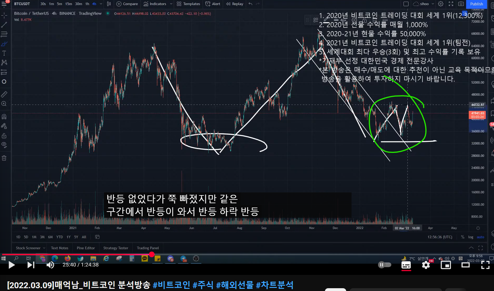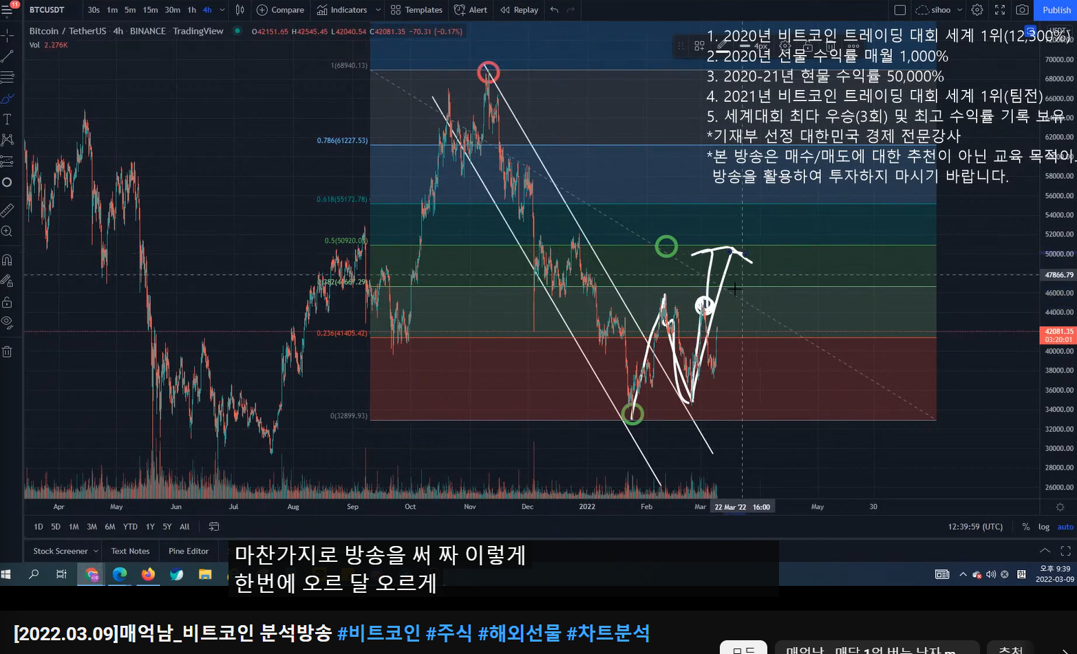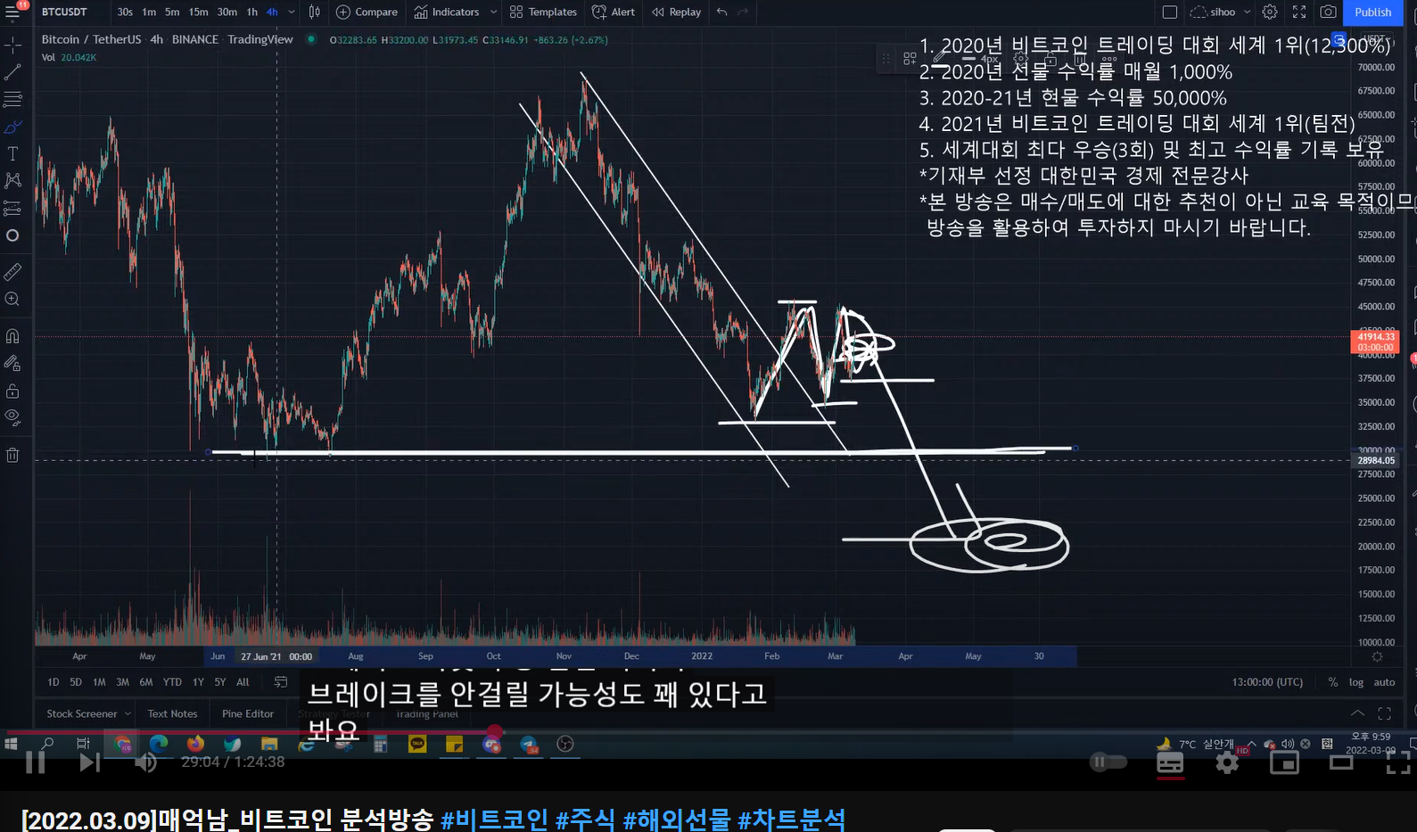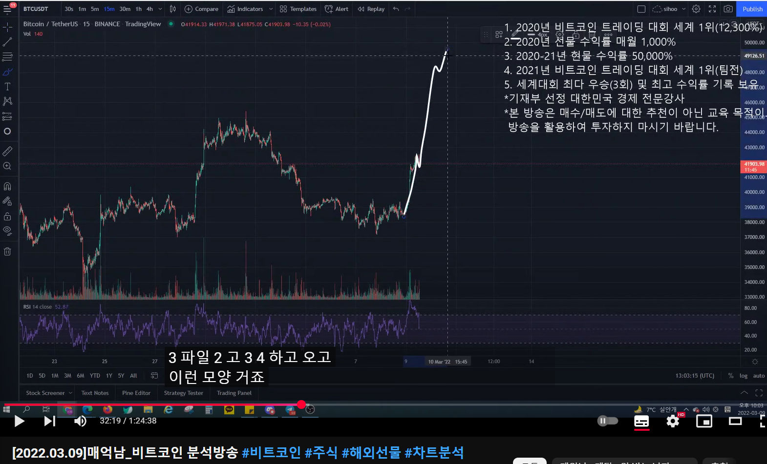 - 더 크게 봤을 때, 여기까지가 1파이고, 2파 조정 이후에 크게 3(이렇게 되면 3파가 크게 나올 것이다), 4, 5파가 나오면서 52k까지 가는 시나리오가 나올 수 있다.