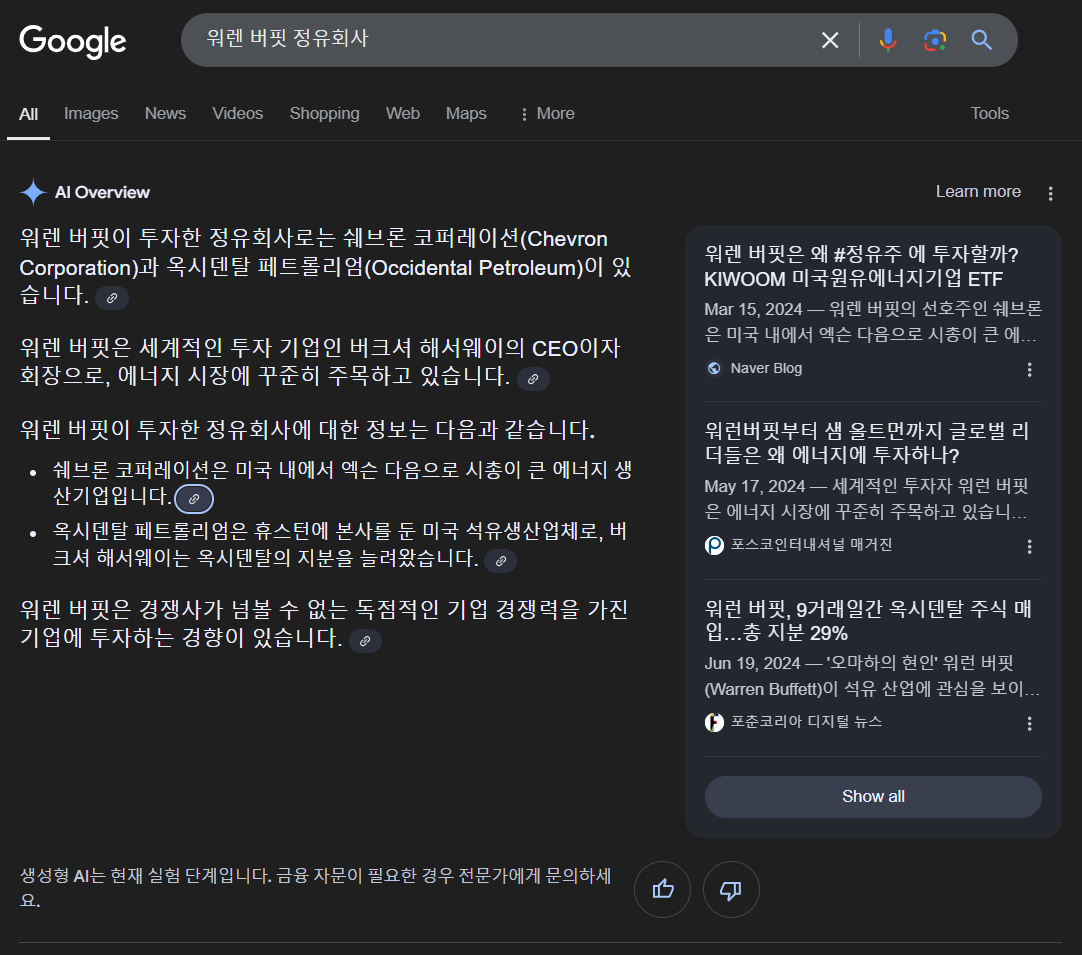- 워런 버핏이 매수했던 정유회사 매수해서 좀 갖고 있다.