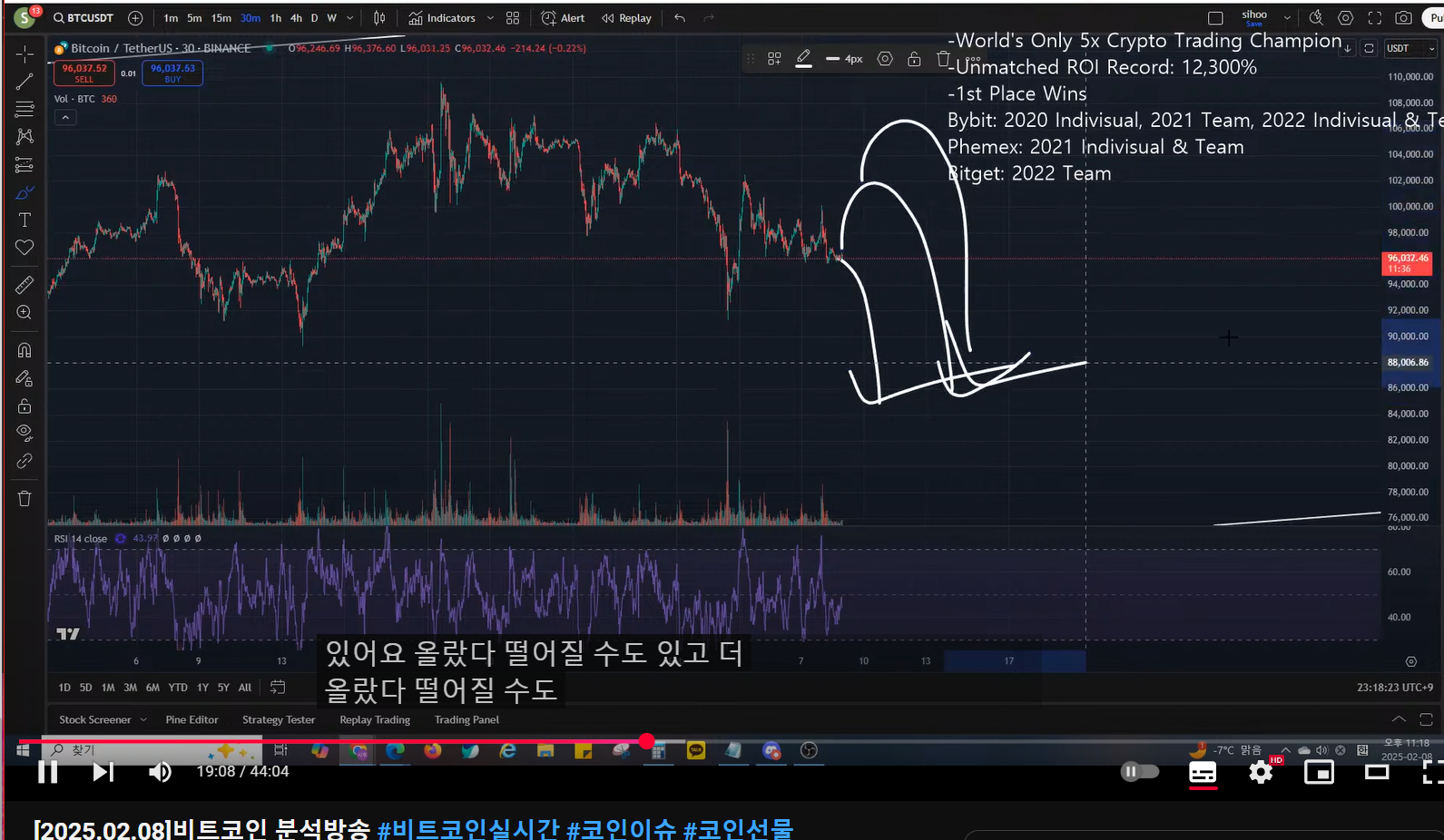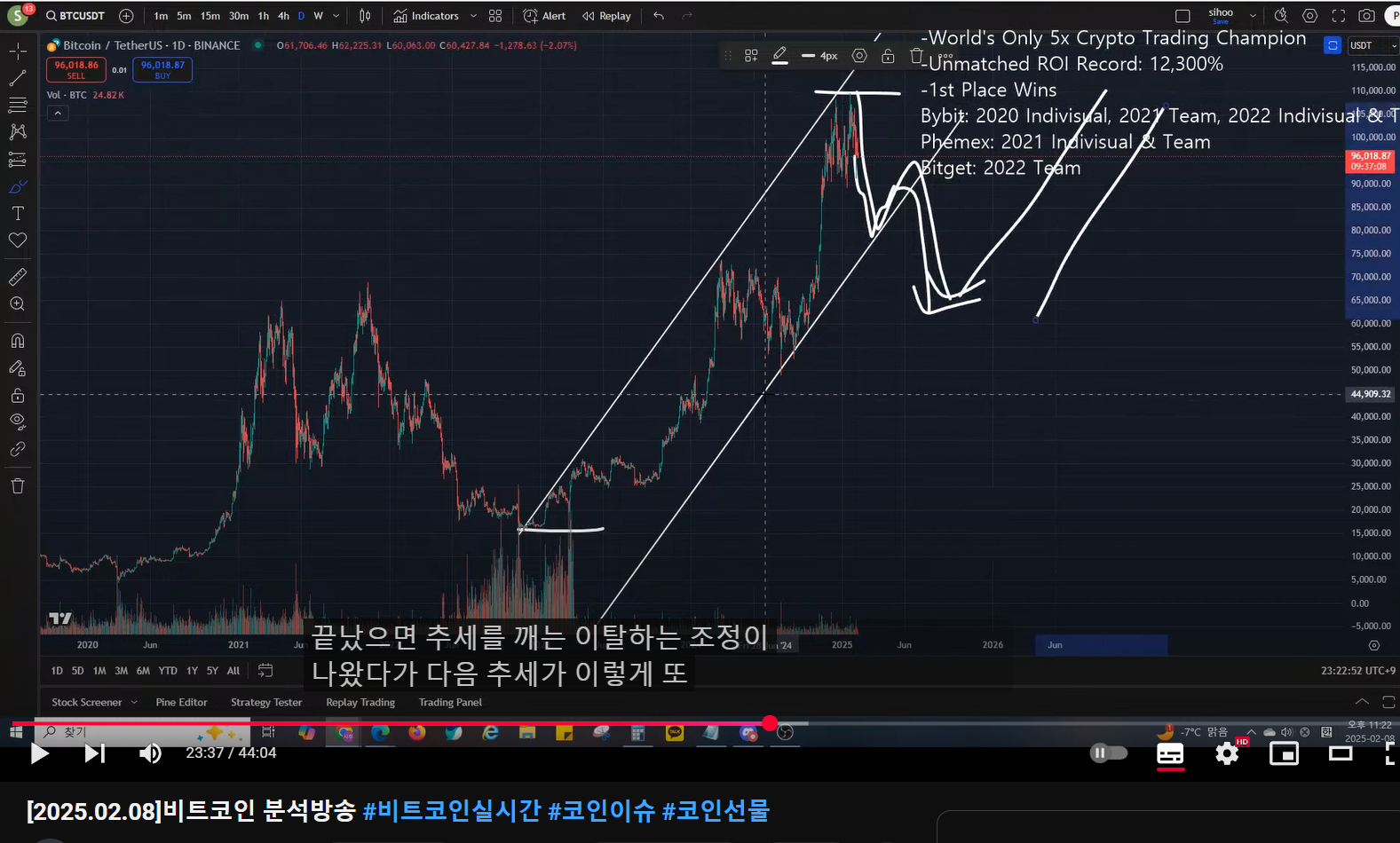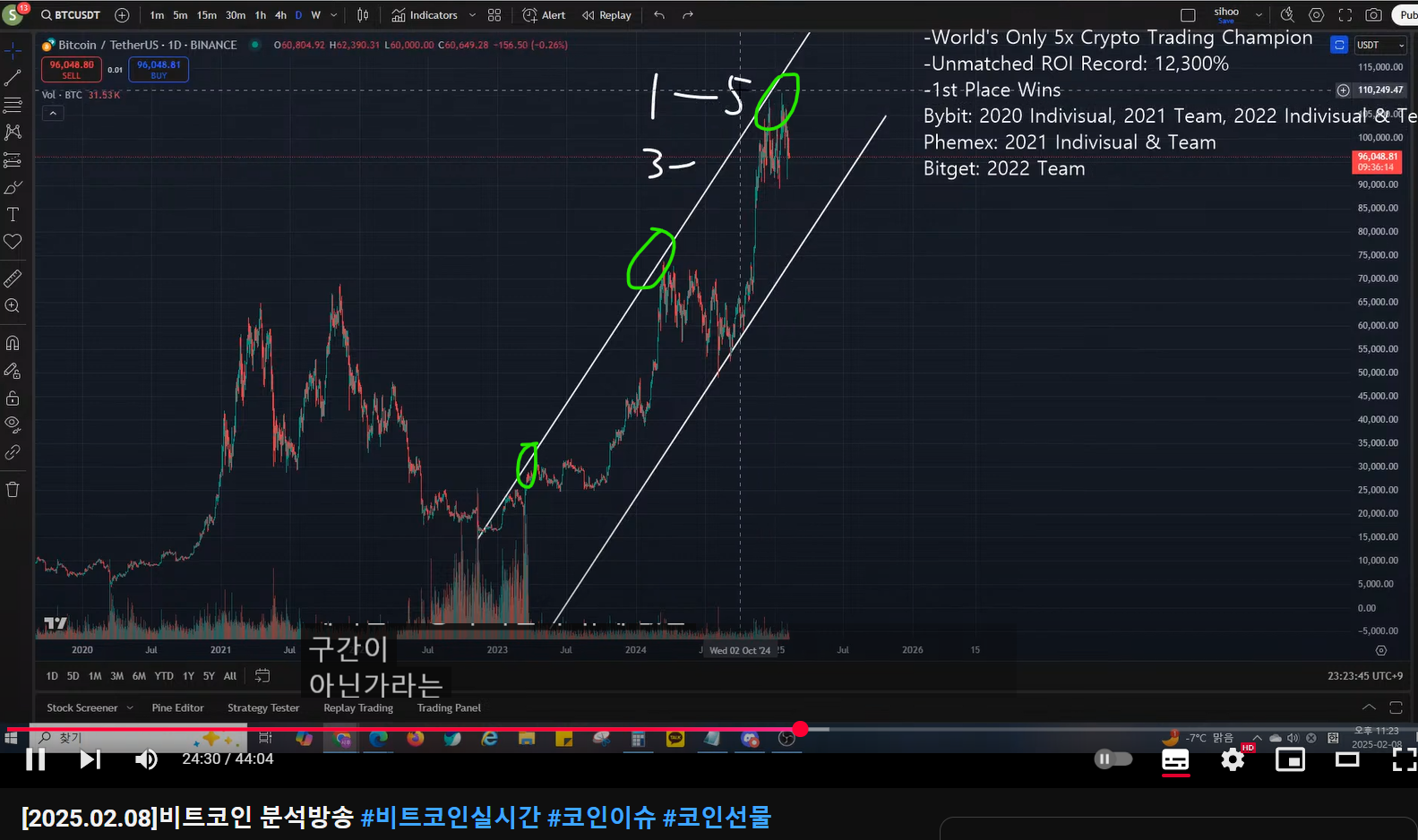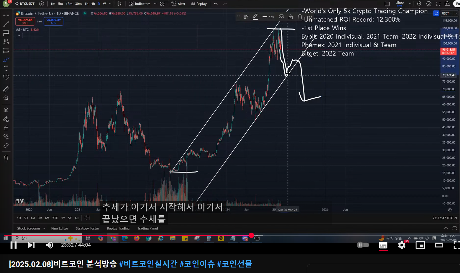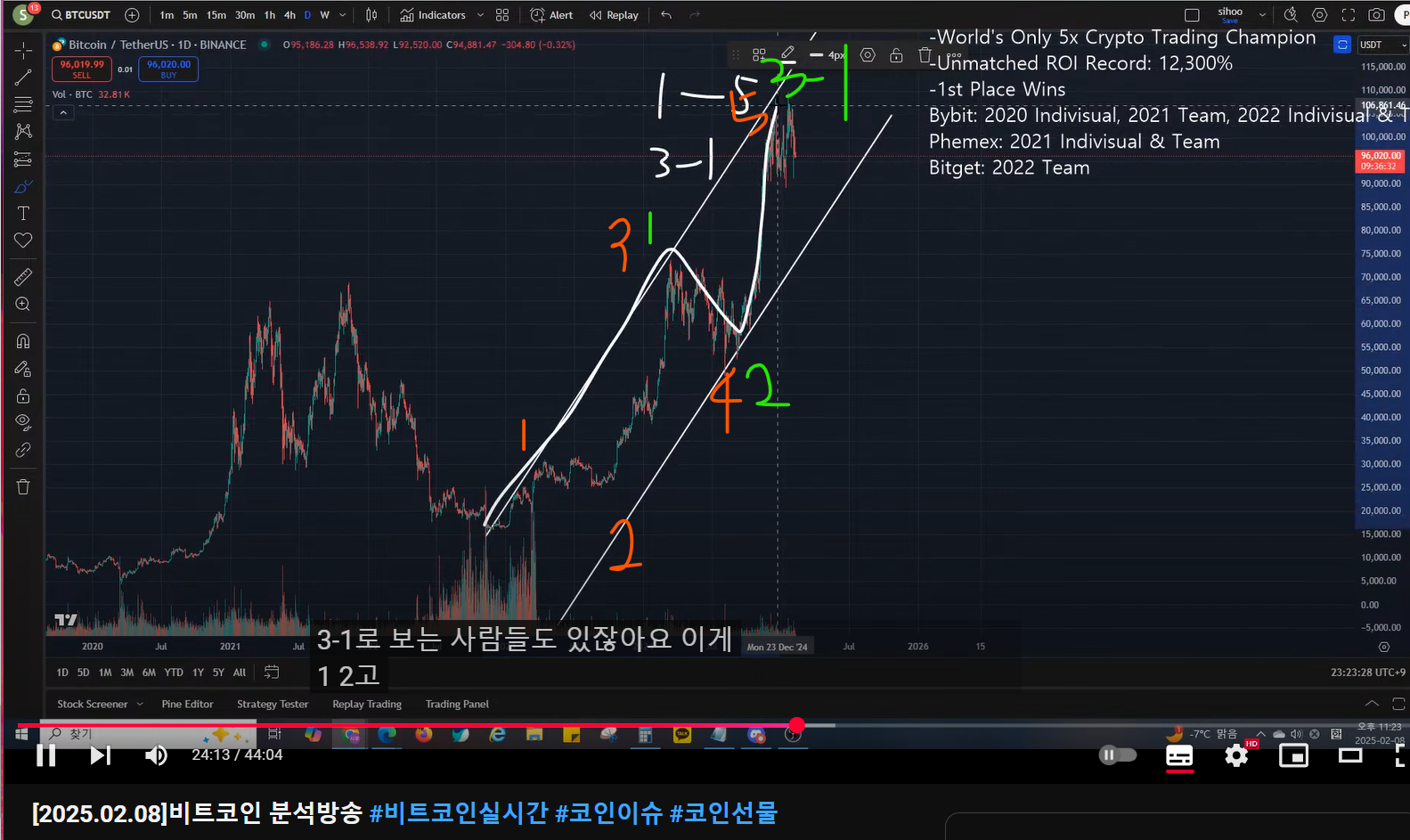 매억남은 비트코인을 파동 카운팅 상 5 파동의 끝(1-5)으로 보고 있는데,