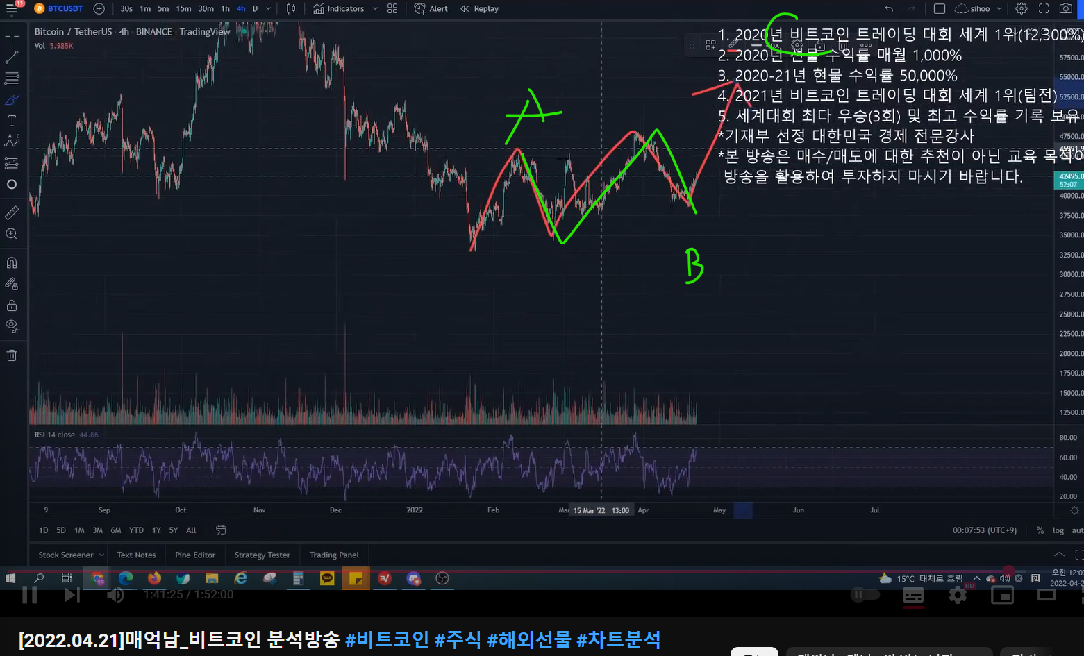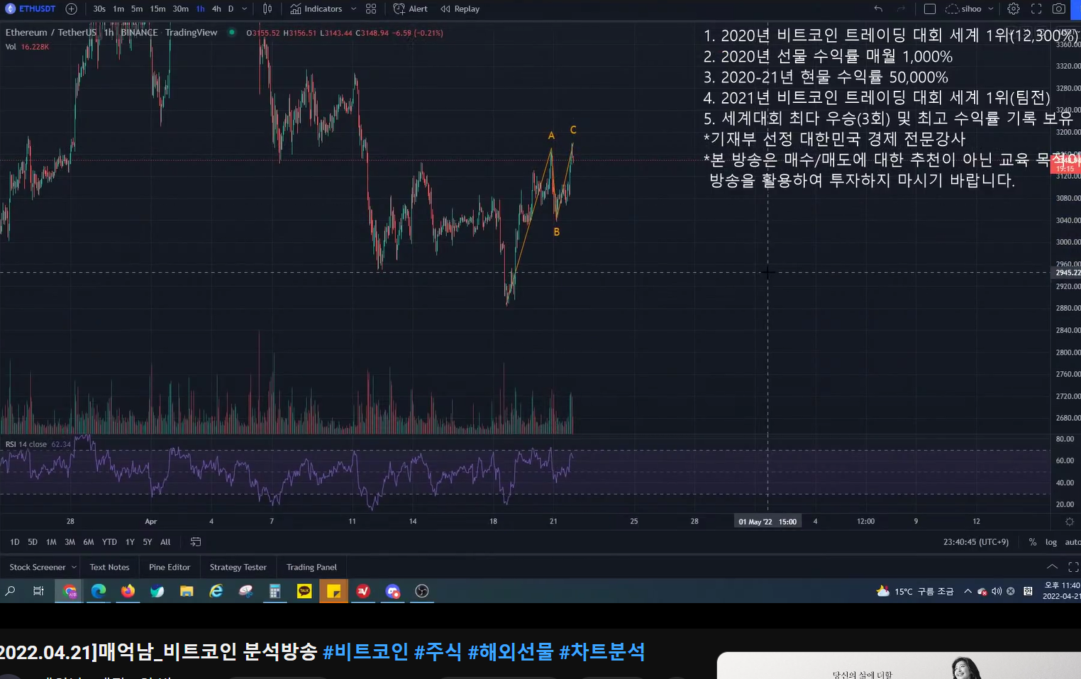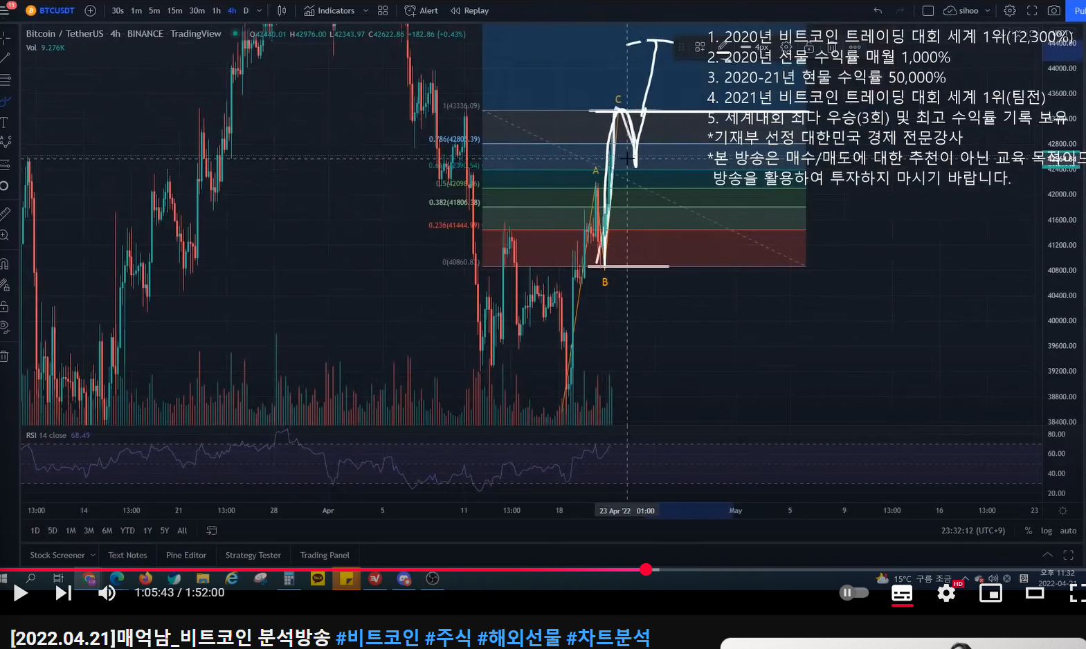 - 해당 지점에서 반등이 나오면 매억남은 다시 한번 하락하면서 2파 (abc)를 그리며 하락했을 때 롱 진입하려고 했다.