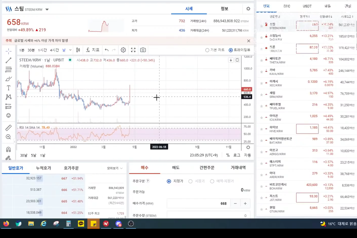 - 시청자 : 내일 스팀이 바이낸스 상장.