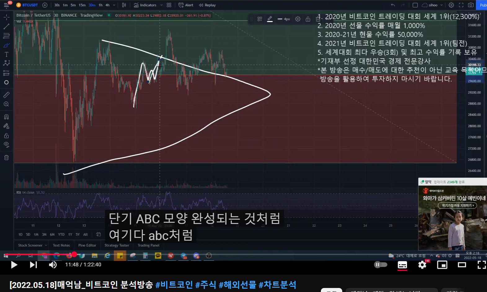 - 그런데 단기 abc(abc)가 완성되면서, 15분 봉, 30분 봉 하락 다이버전스가 떴다.