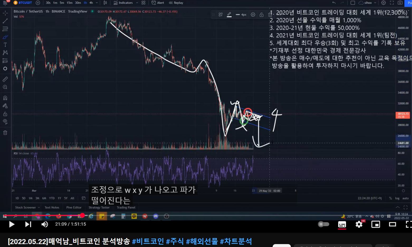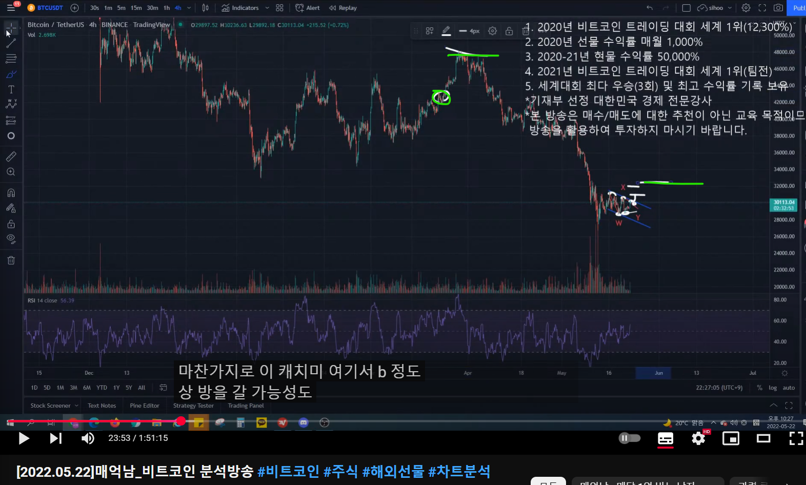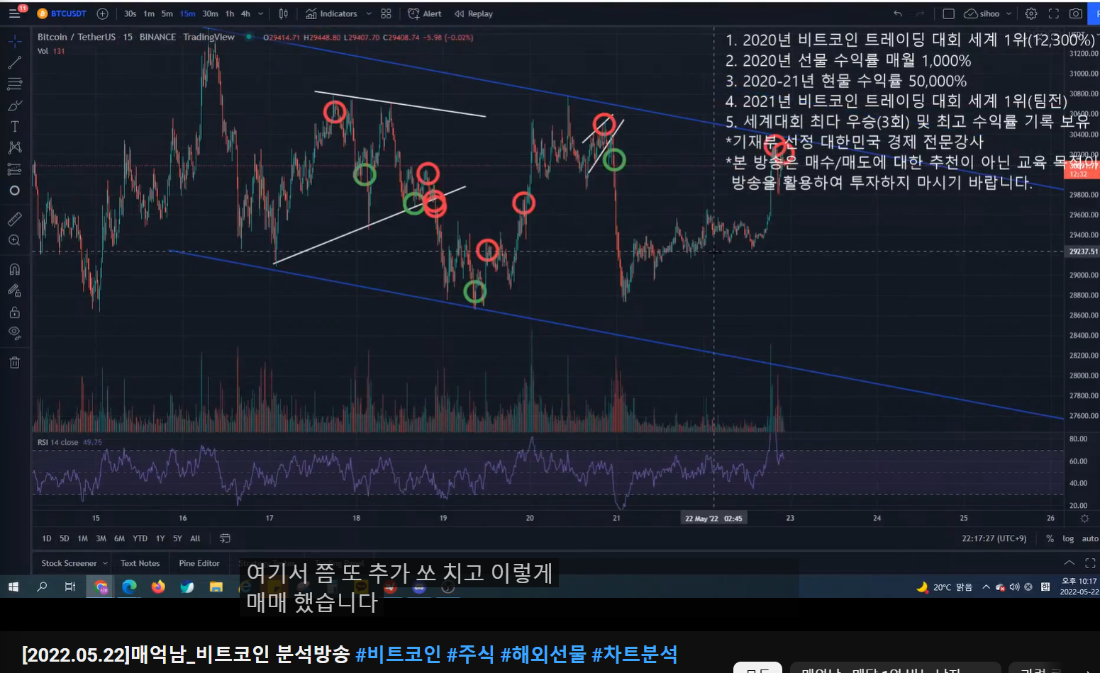 - 숏 진입한 것 - 일부 익절 후 나머지는 홀딩하다가 방송 키기 전에 추가로 2번에 걸쳐 숏 진입
