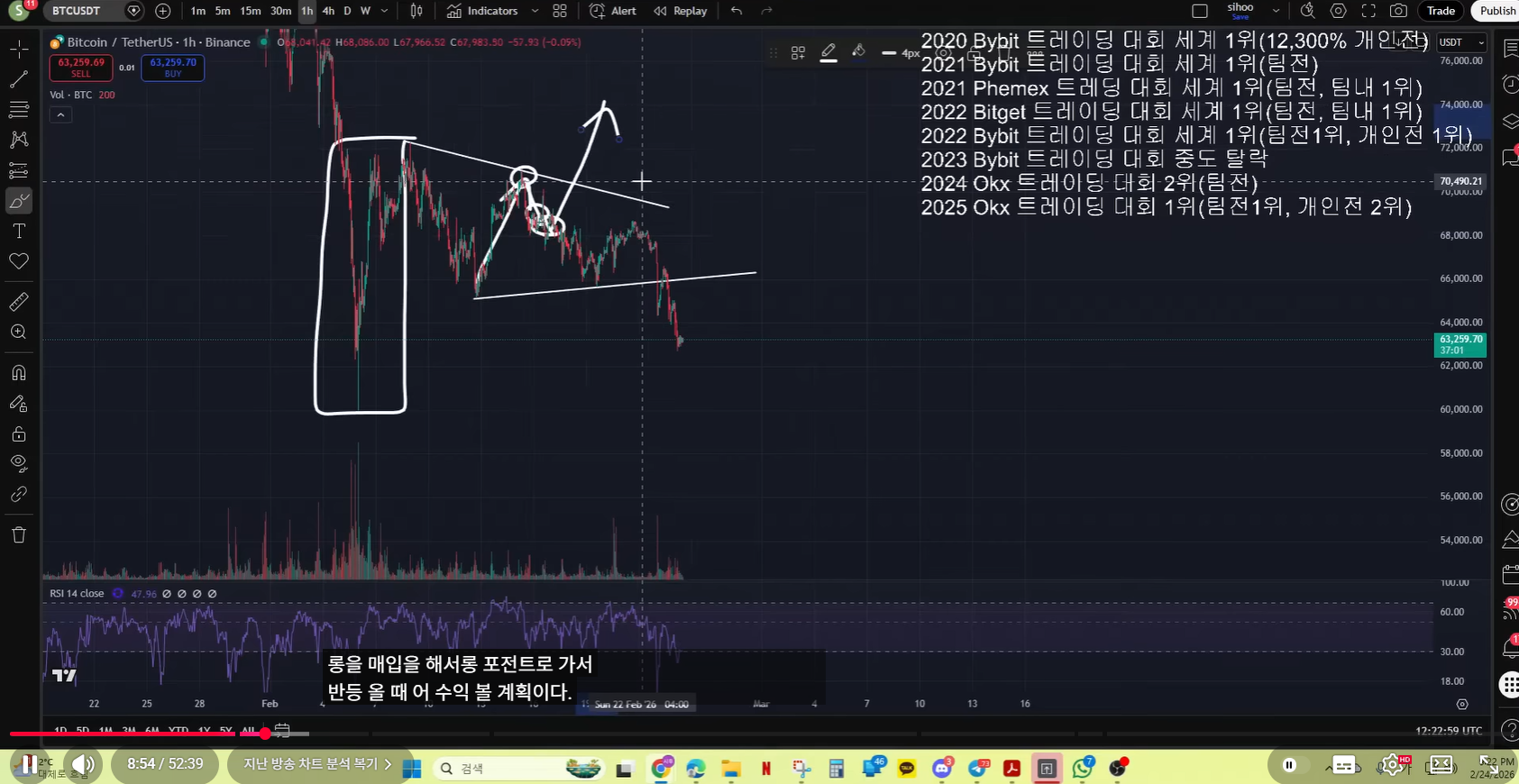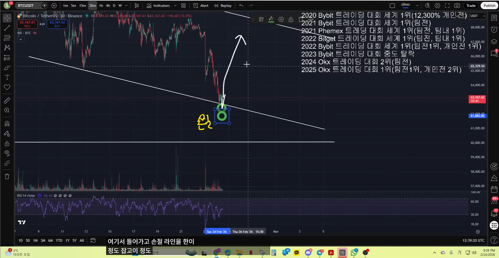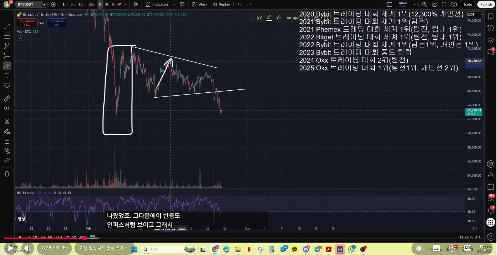 - 현재 차트 기준으로, 실제 매억남이 말한 것처럼 나왔다. 저점을 갱신하고, 15분봉 다이버전스를 그렸고. 불 반등이 나왔다.
