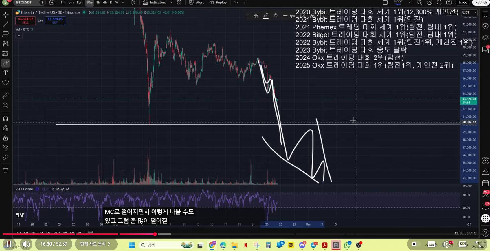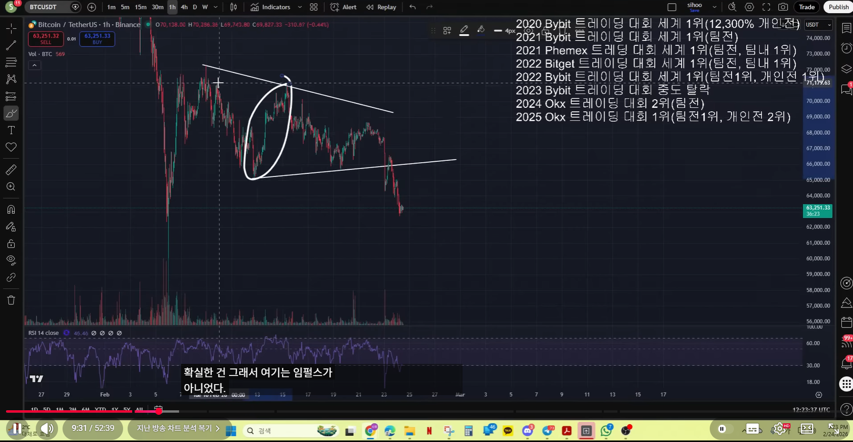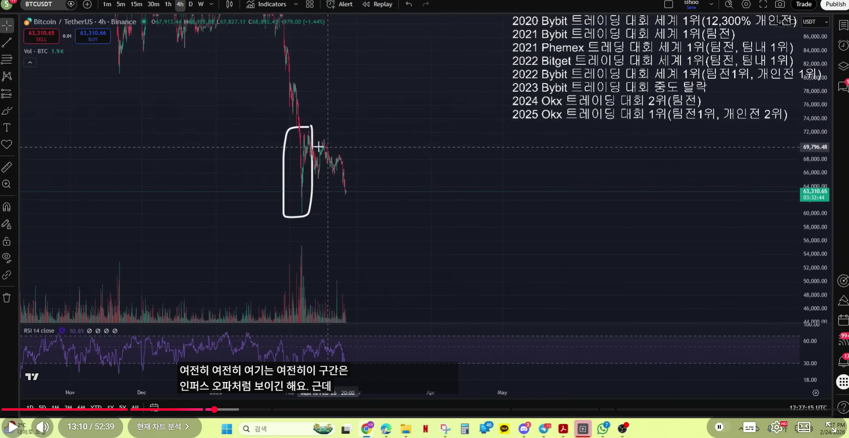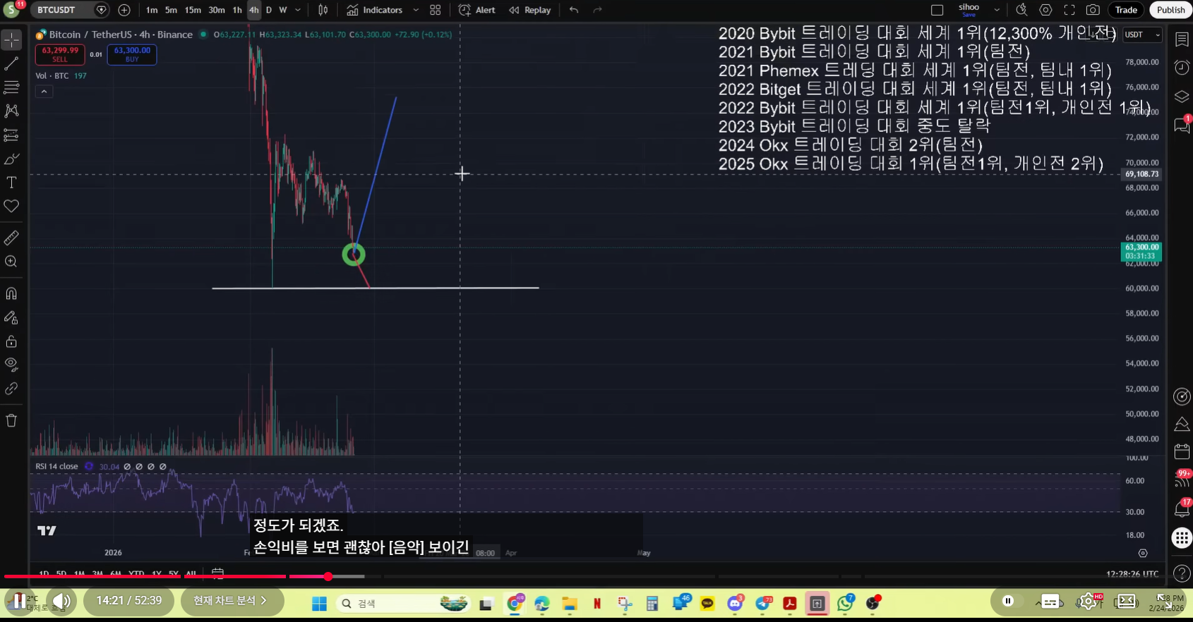 - 현재 차트 기준으로, 실제 매억남이 말한 것처럼 나왔다. 저점을 갱신하고, 15분봉 다이버전스를 그렸고. 불 반등이 나왔다.