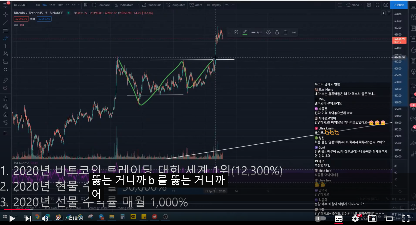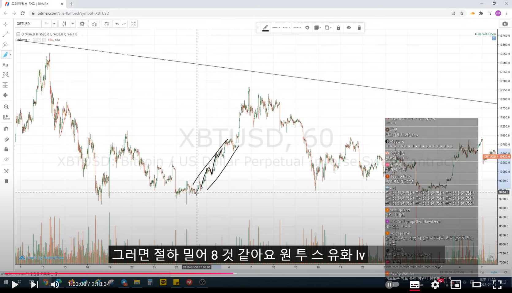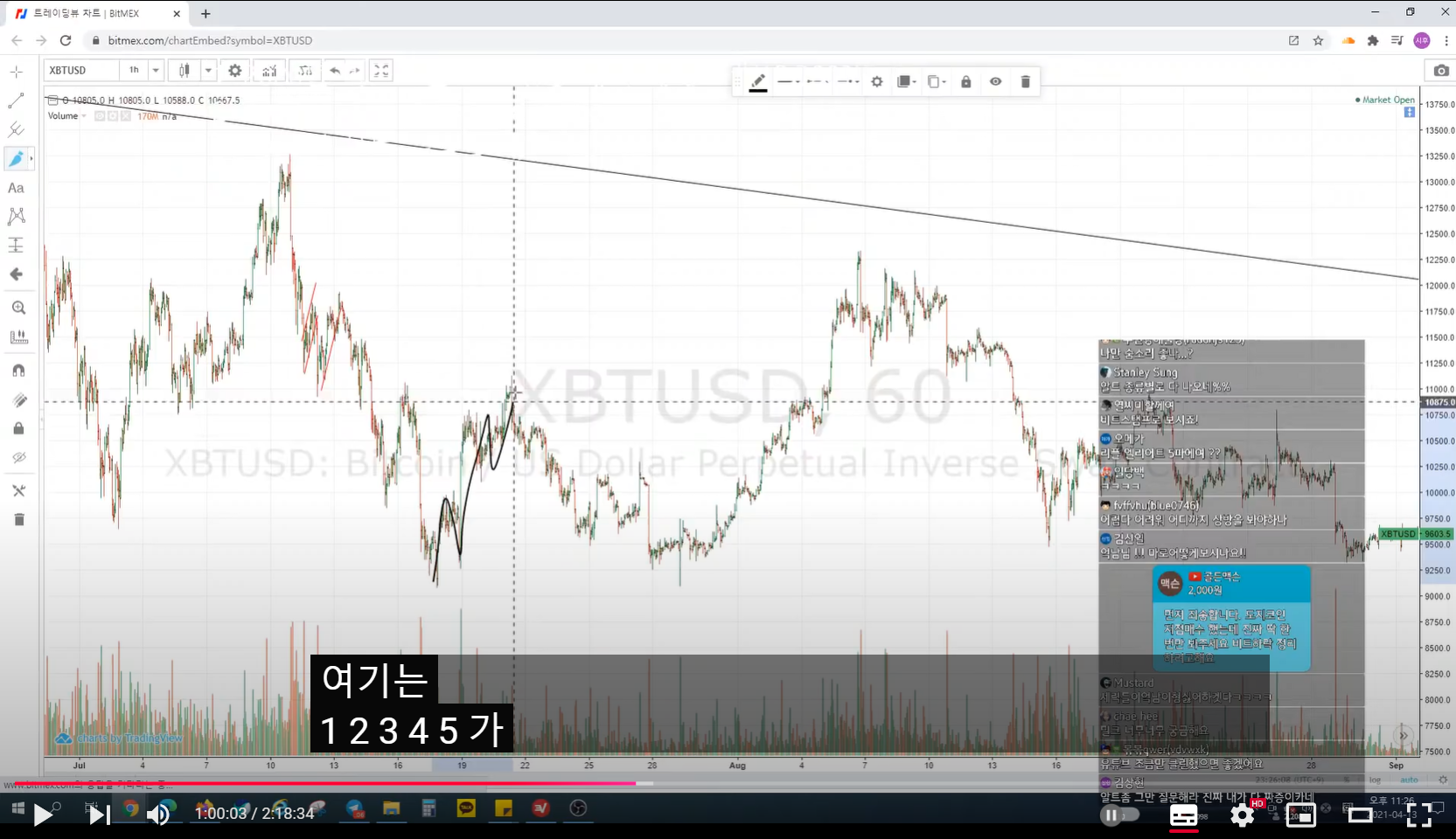 이전 방송 중 롱 매수 들어갔다.