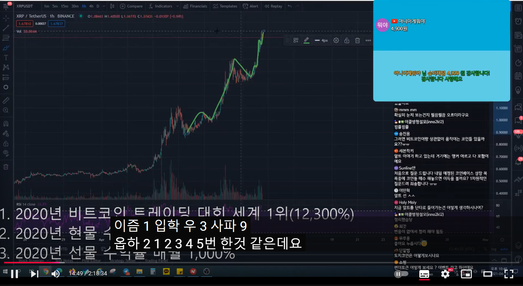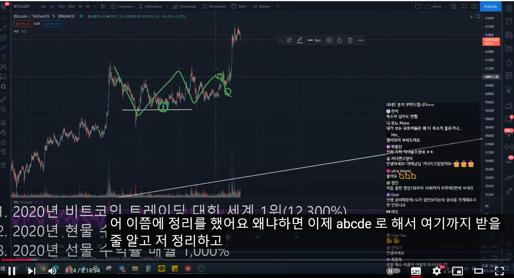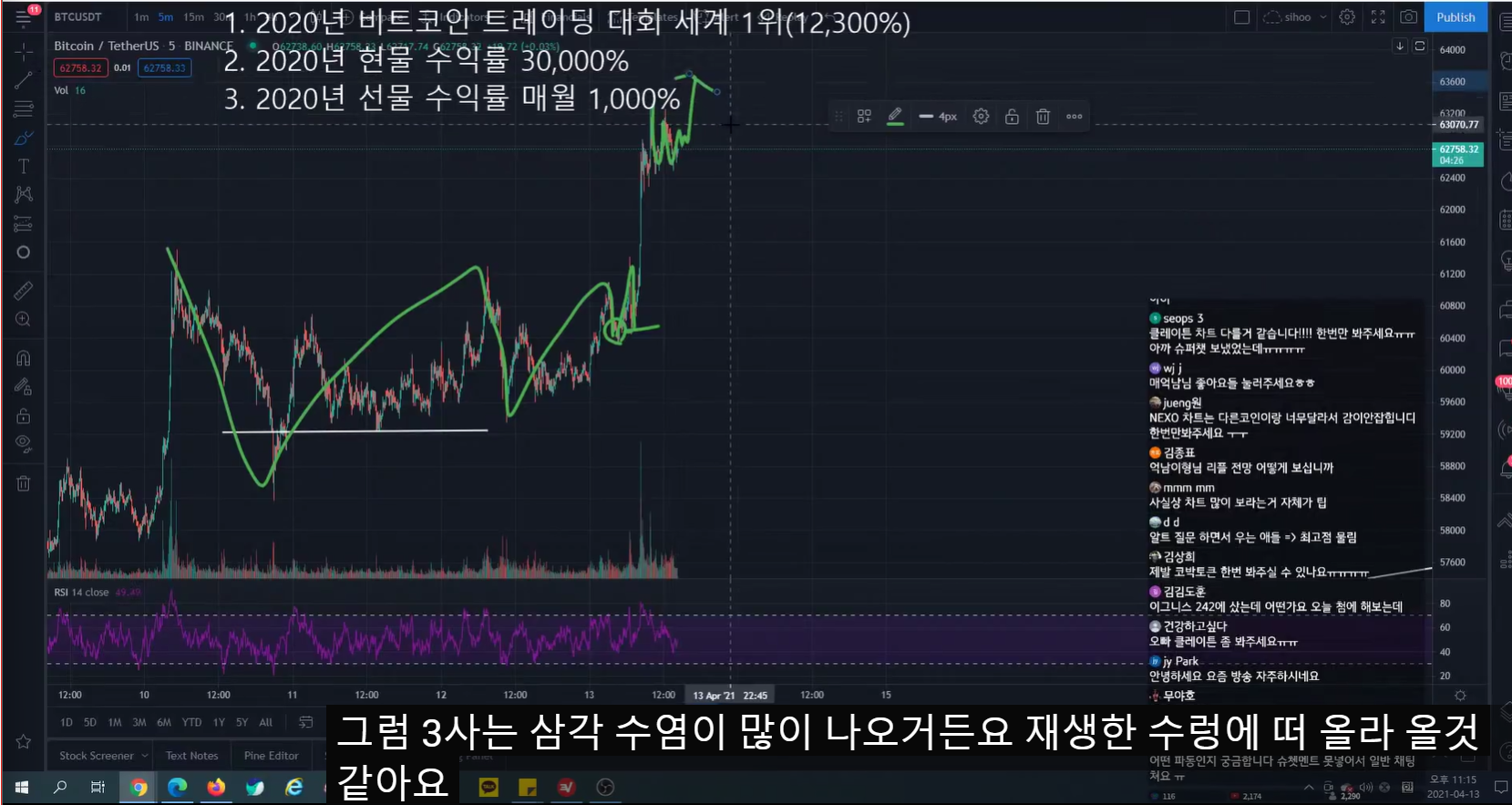 이전 방송 중 롱 매수 들어갔다.