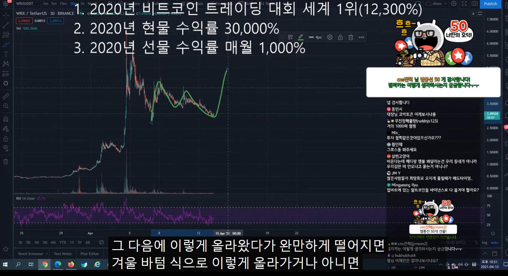 - 실제로 트뷰에서 보면 4월 13일 이후 반등을 줬다가 내렸다.