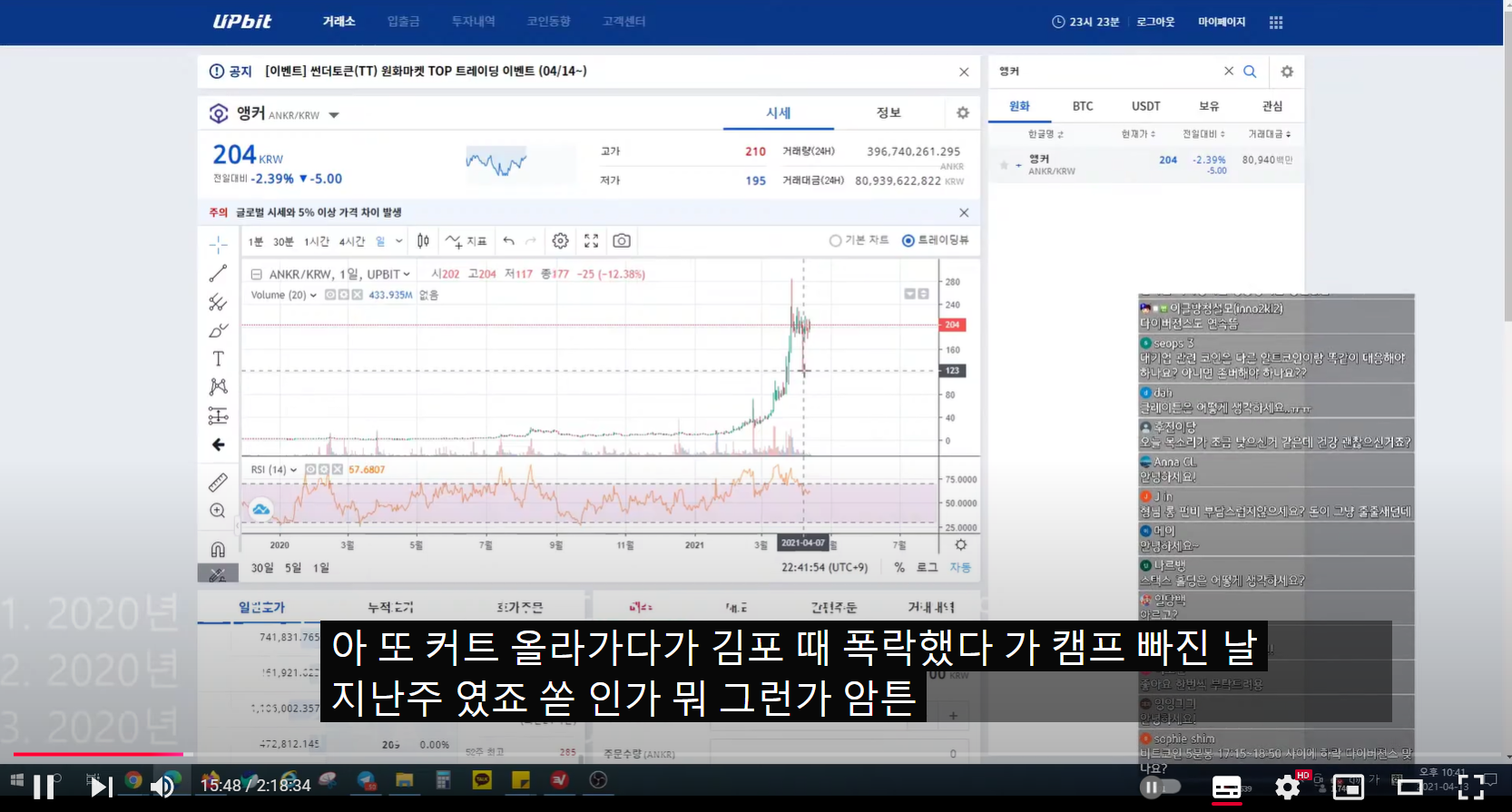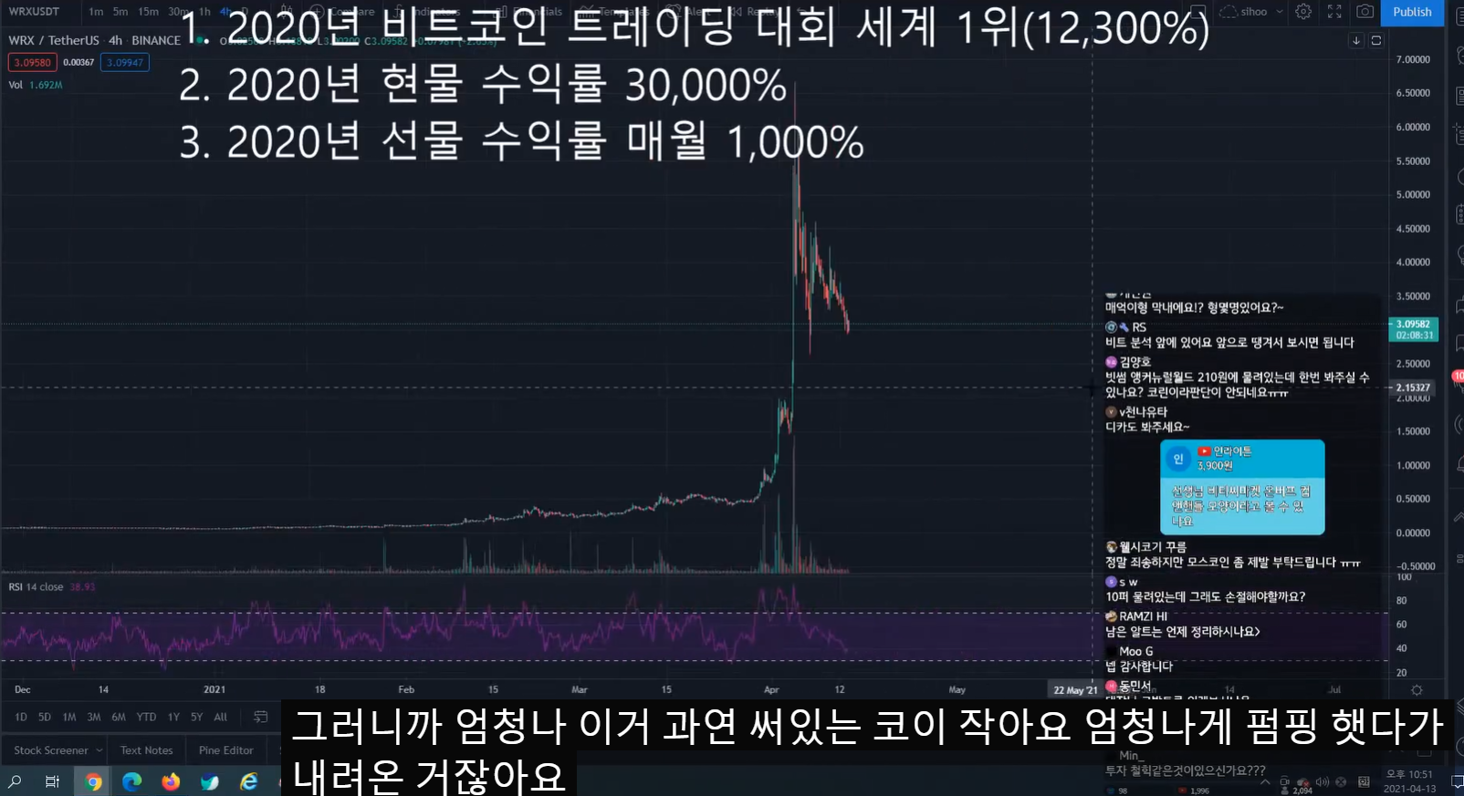 - 엄청나게 펌핑했다가 내린 코인이다.