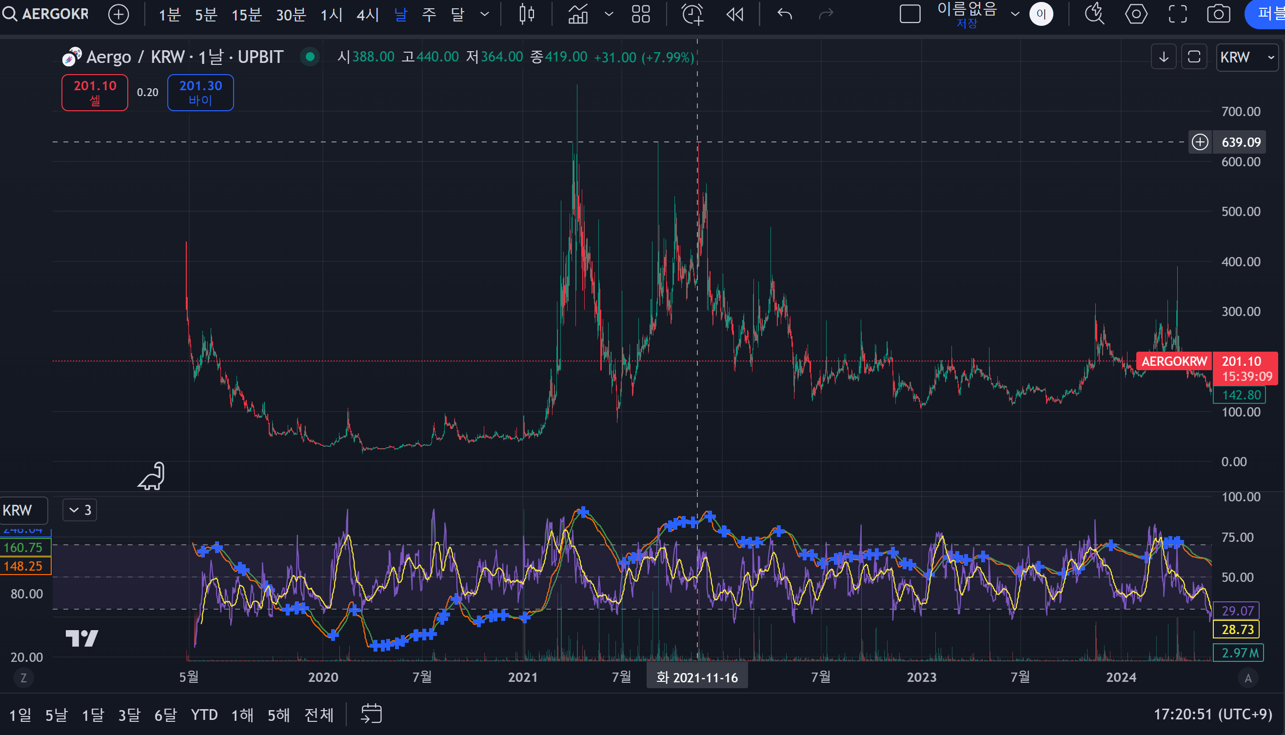 - 신규상장 코인이다. 신규 상장코인은 알 수 없다. 재단 마음이다.