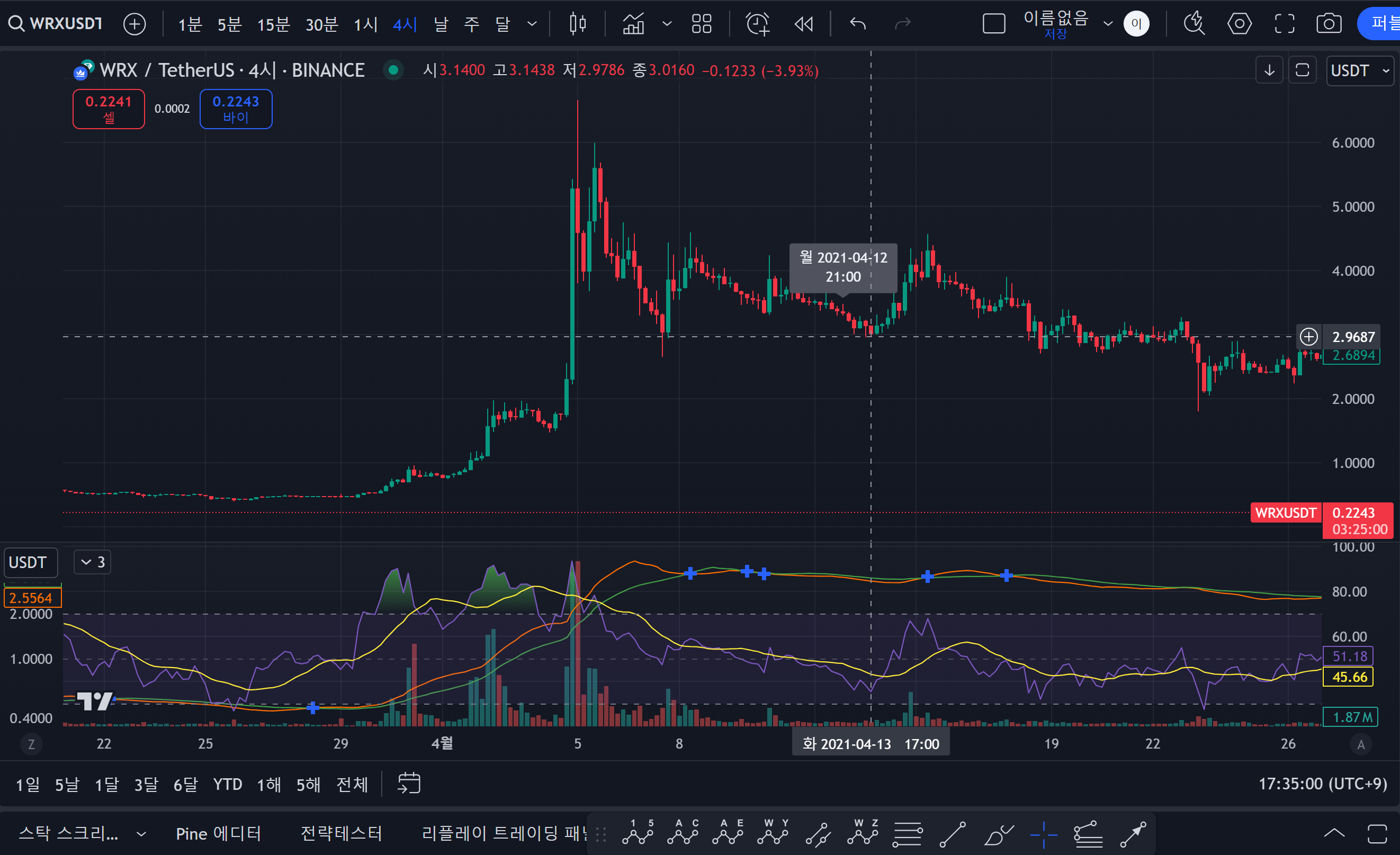- 실제로 트레이딩뷰에서 보면, 4/13 이후 크게 하락했다.