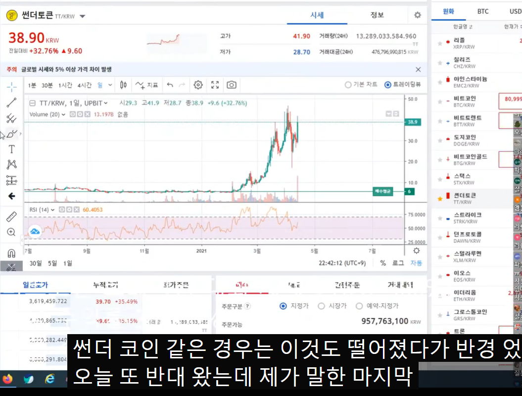 - 썬더는 김프 하락 - 반등 - 하락 - 재반등