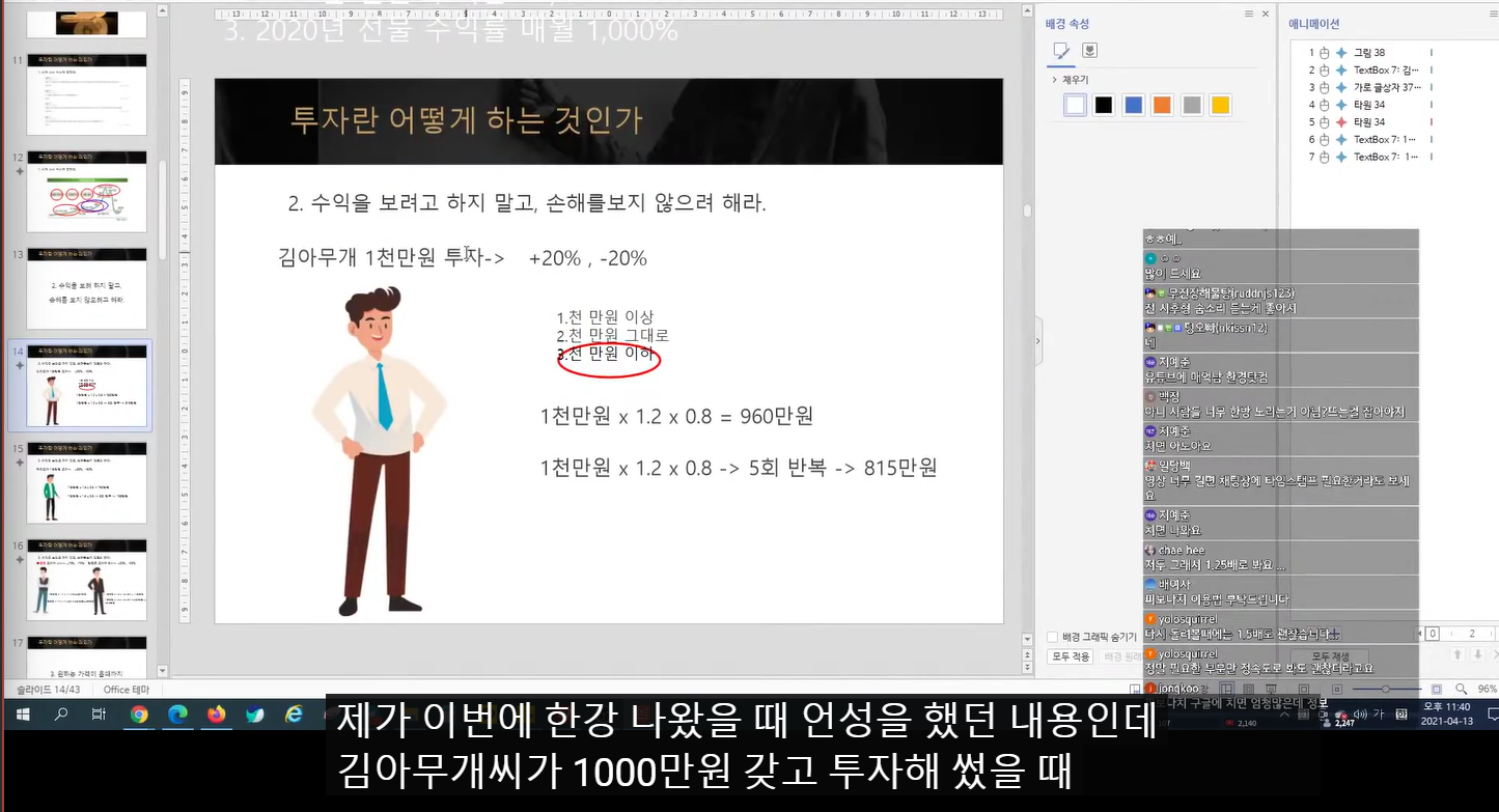- 손해봤을 때 어떻게 할지를 꼭 생각해봐라. 안정적으로 복리로 불릴 생각을 해야 꼭 계좌가 불어난다.