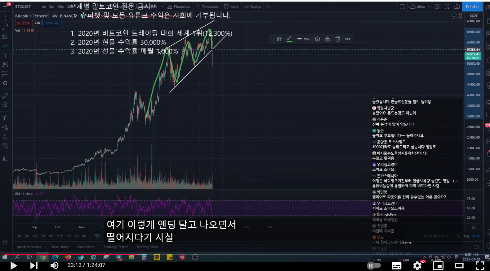 엔딩 이후 추세라인을 깨면서 하락했다. 반등이 나오더라도 속지 말라고 미리 말했다.