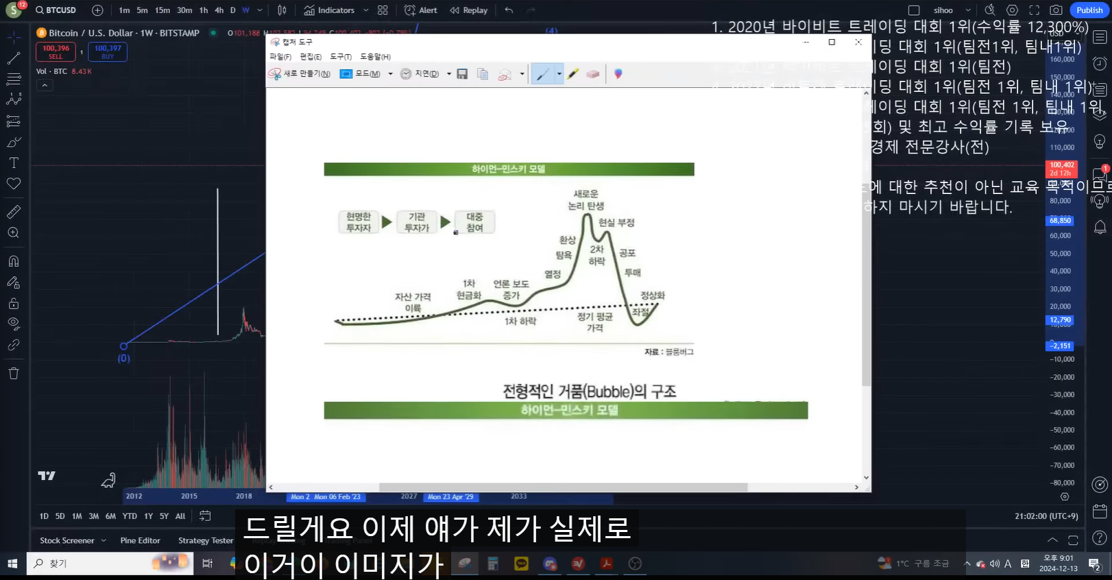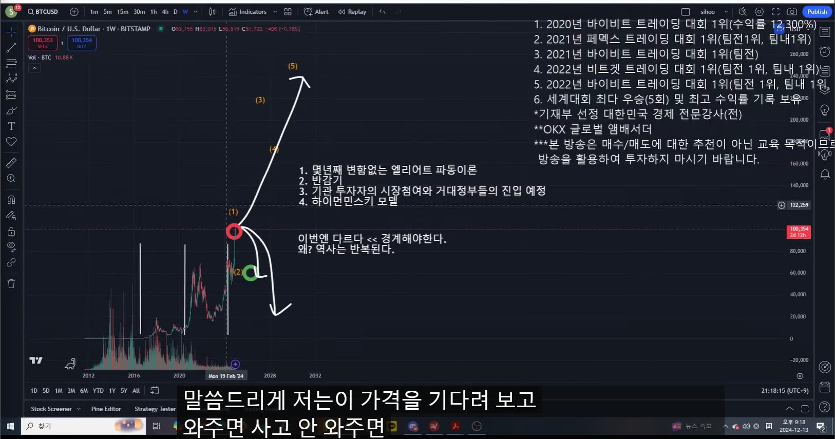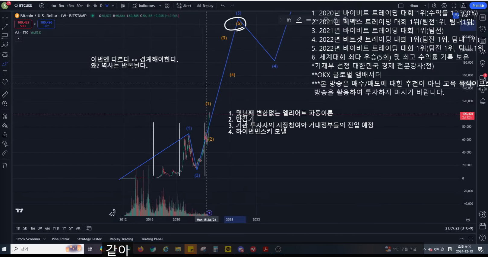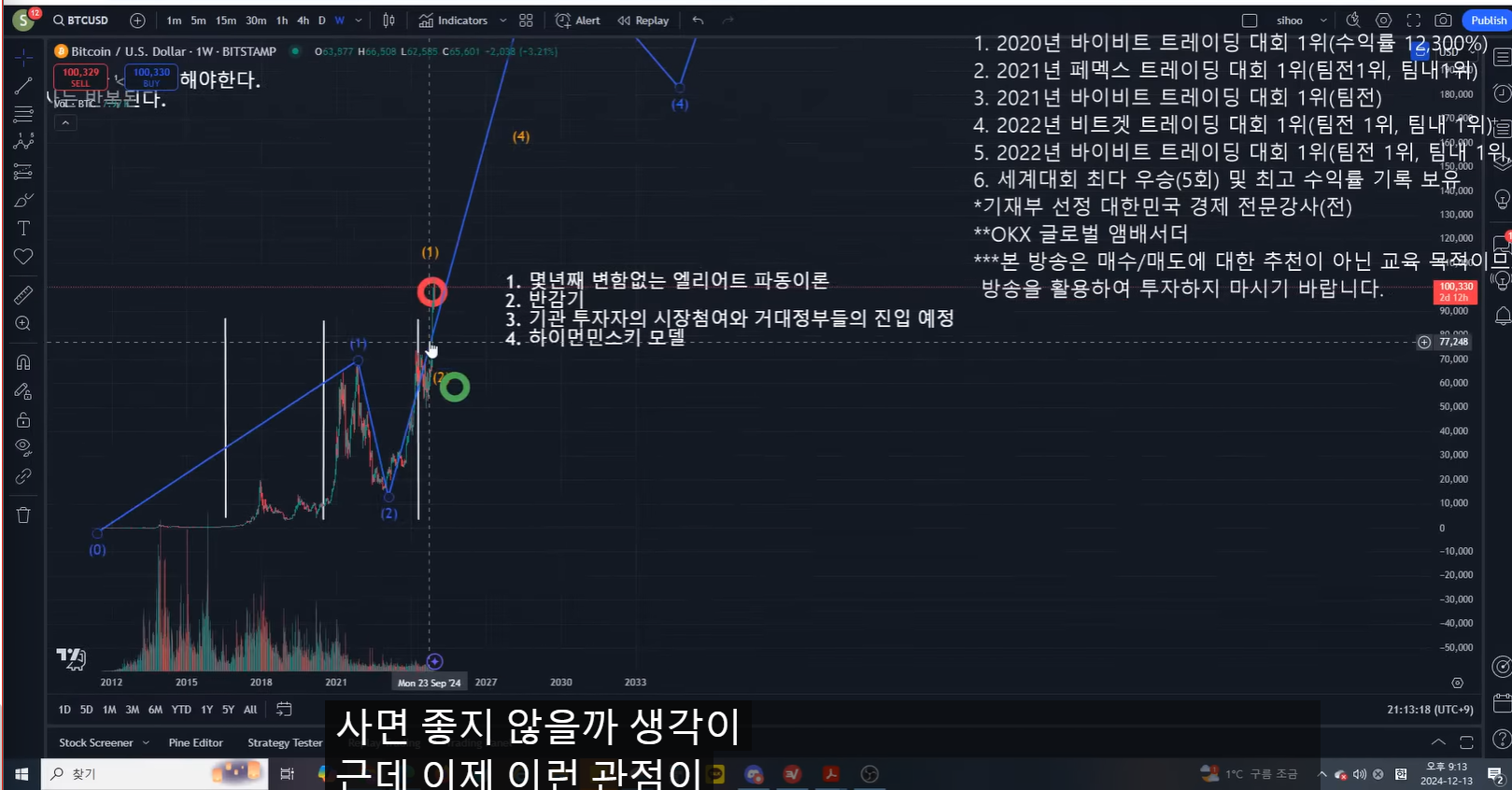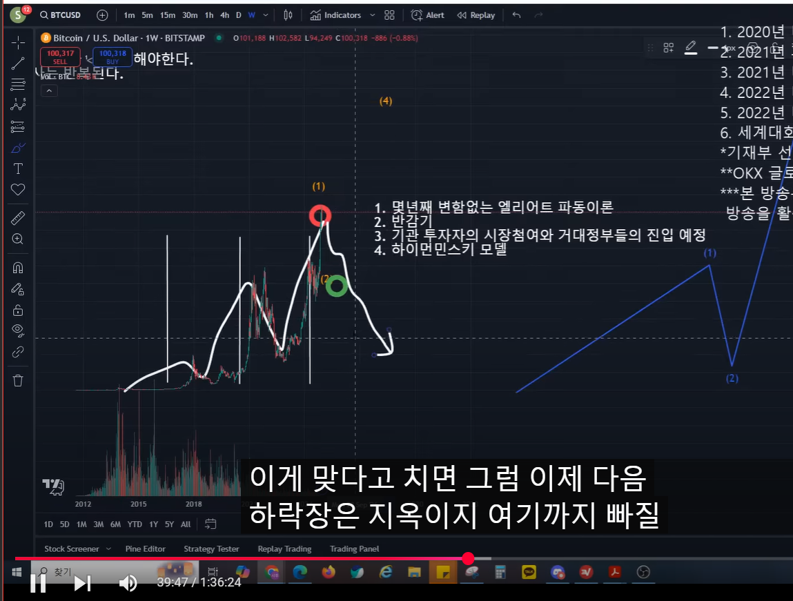 이 네가지 분석들이 조화롭게 맞아들어가는 것 같다.(파동, 반감기, 기관투자자, 하이먼 민스키 모델)