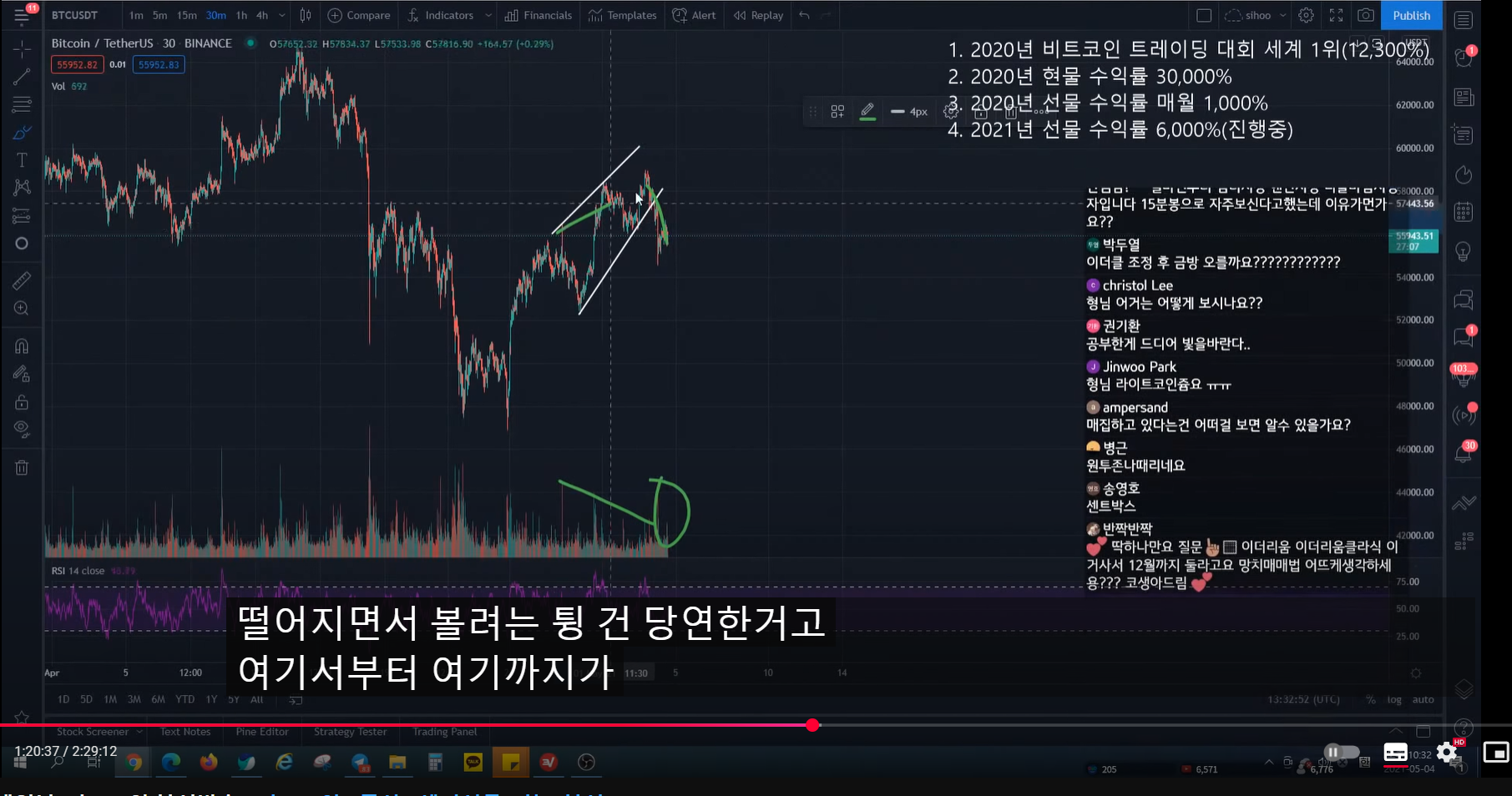 - 그런데 시청자가 본 것은 빨간색 부분을 고점으로 보고, 러닝 플랫이 나온 것이라고 봤다.
