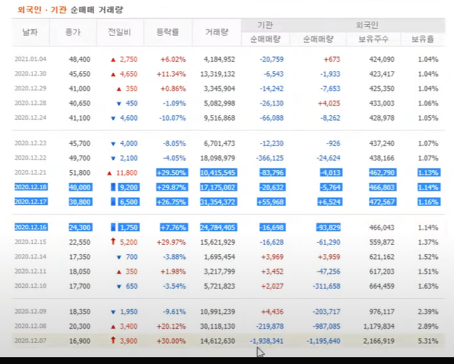 - 21년 2월, 기간과 개인이 순 매수.