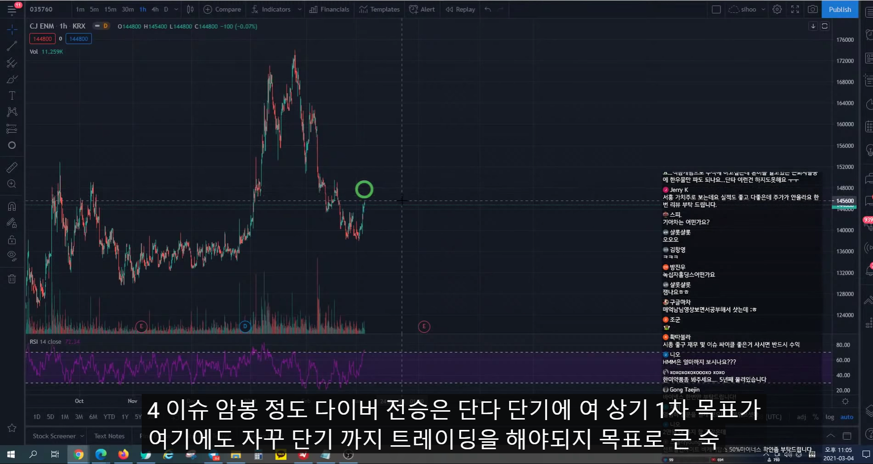 2. 뉴스 나올 이야깃거리가 한동안 없을 것 같다고 생각하면 조금씩 매도하면 좋다.