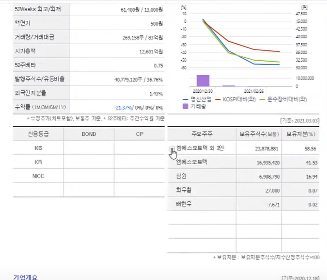 - 그런데 명신산업 시가총액이 2800억 밖에 안 된다. 그런데 명신산업의 대주주. 웃기다.