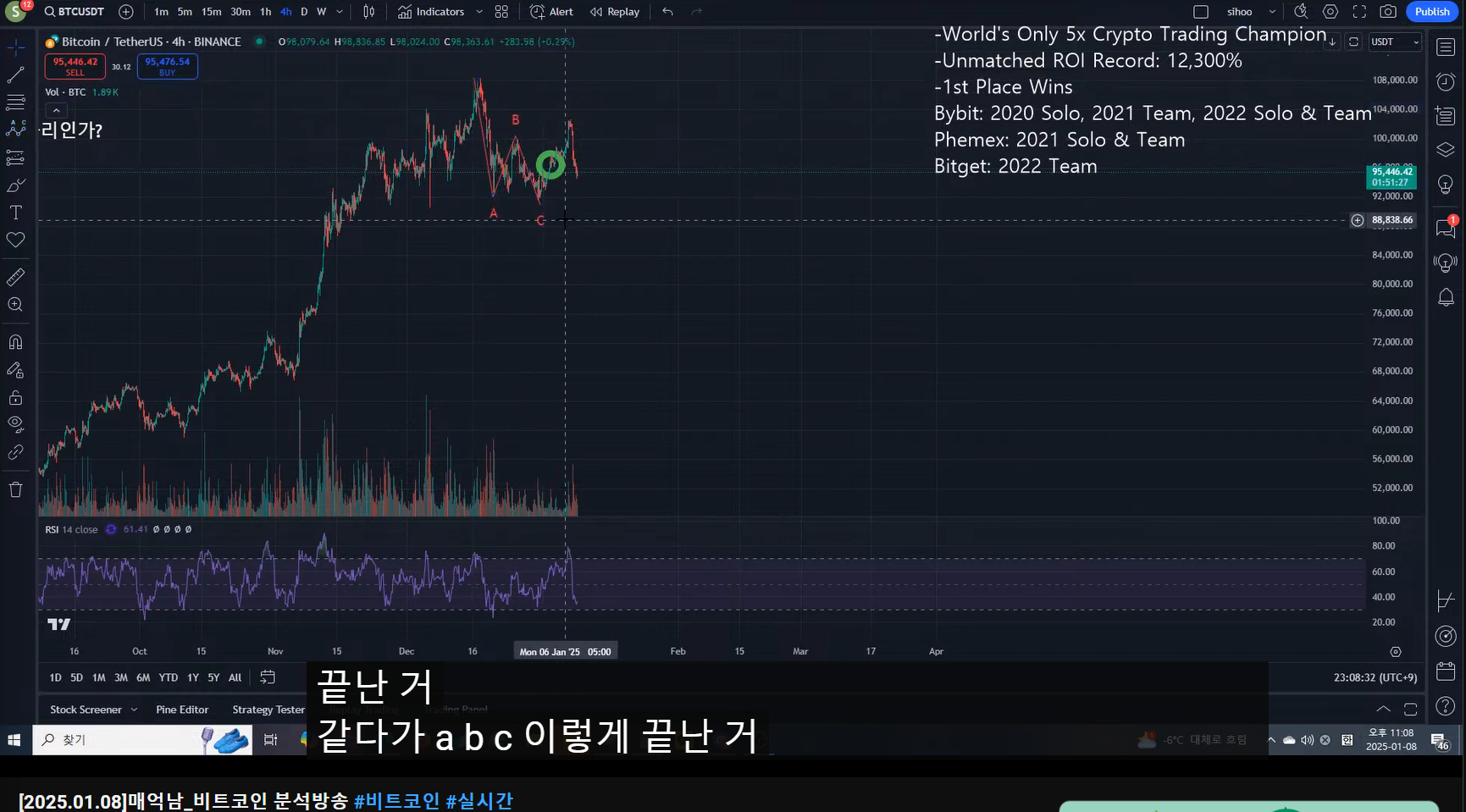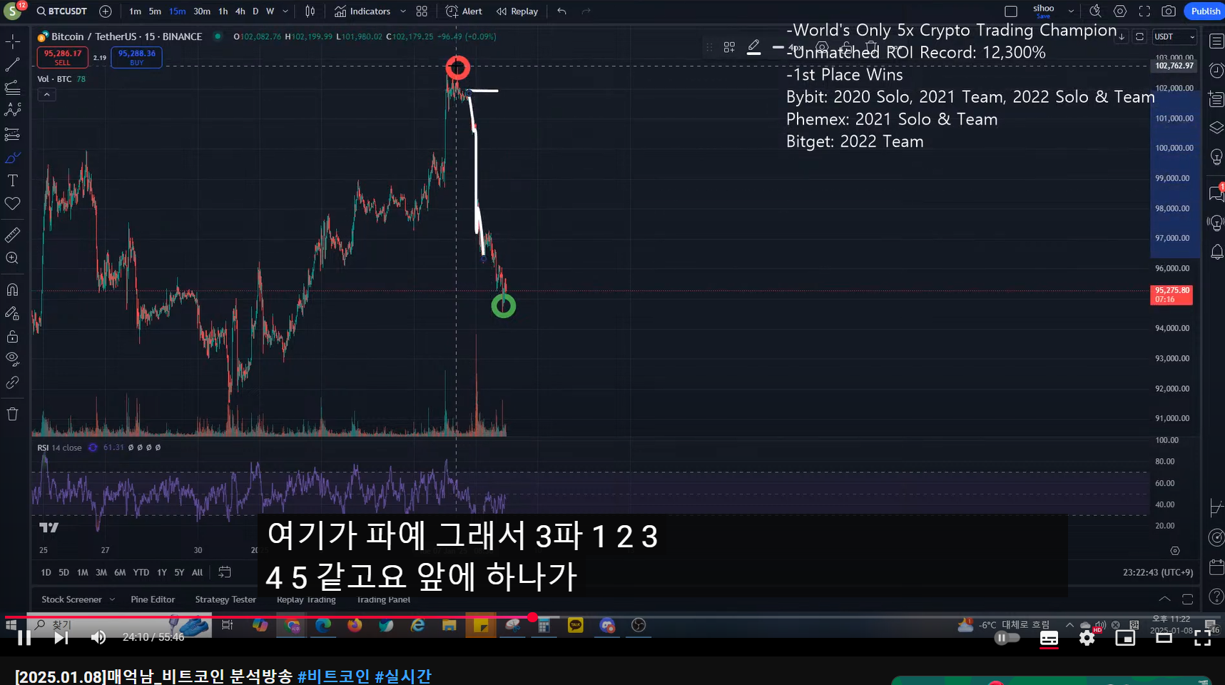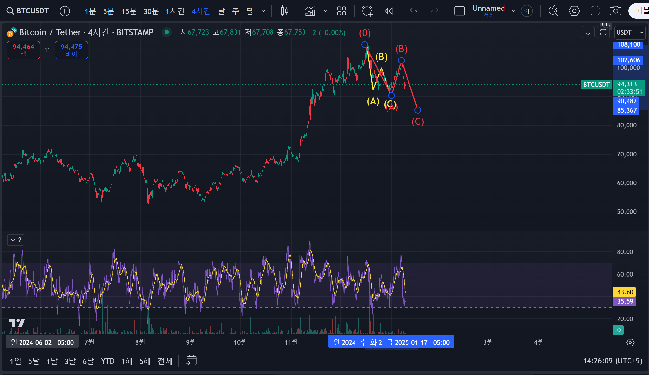 - 첫 숏 진입 시 어느 정도 떨어지면 반익/반본절로 대응해야 하고, 혹시 올라가면 구간 카운팅을 abc로 다시 해서 숏 진입 후 수익을 크게 보는 것을 바라봐야 한다.
