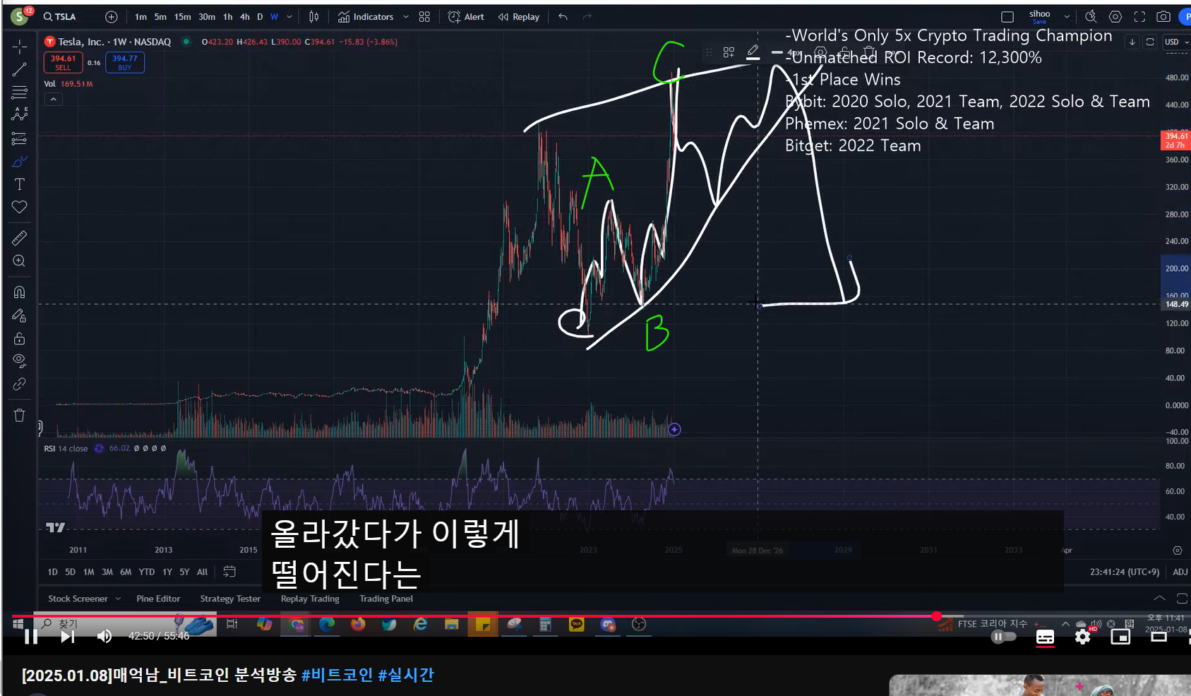 - 테슬라가 저점 이후에 A(abc) - B - C(abc)로 올랐다.