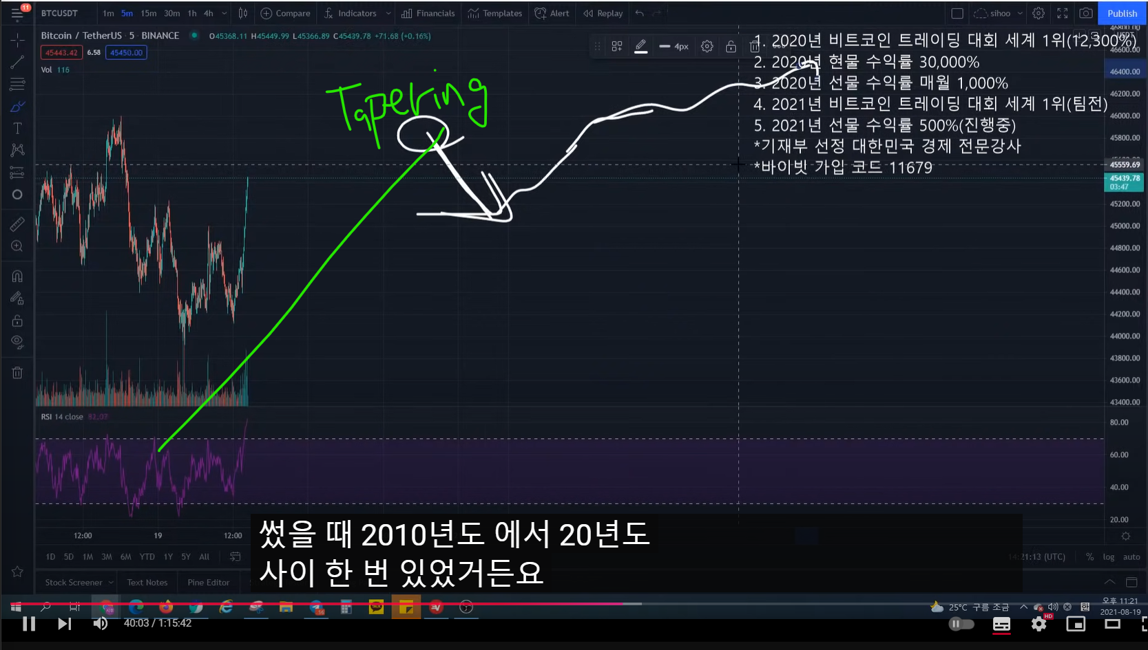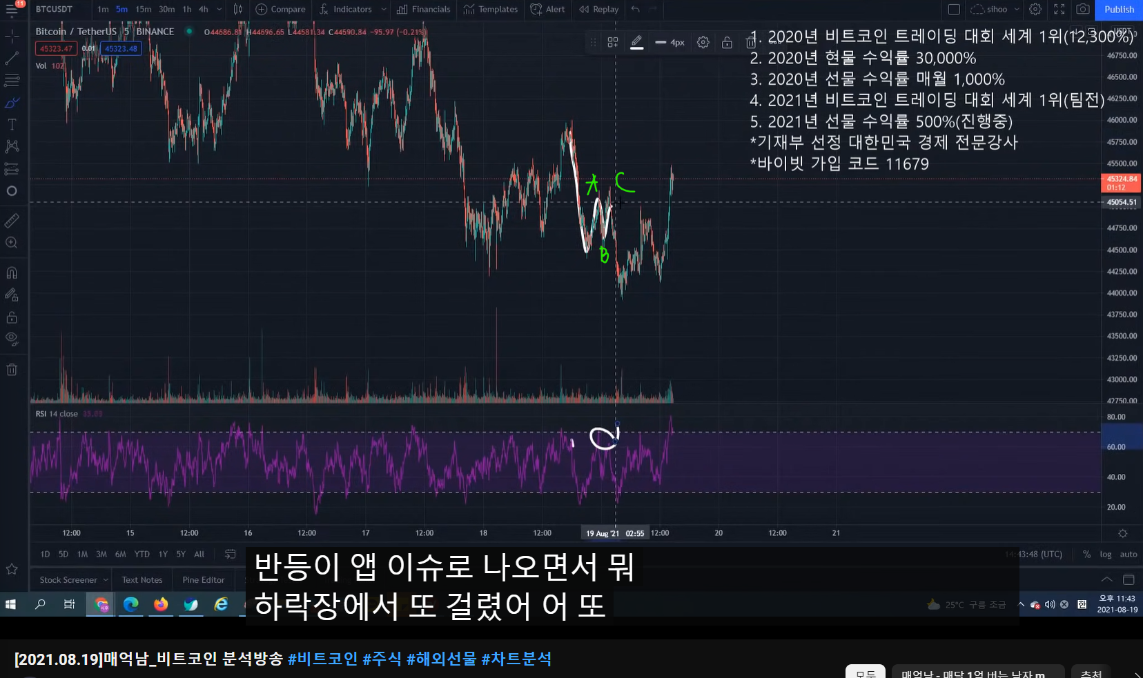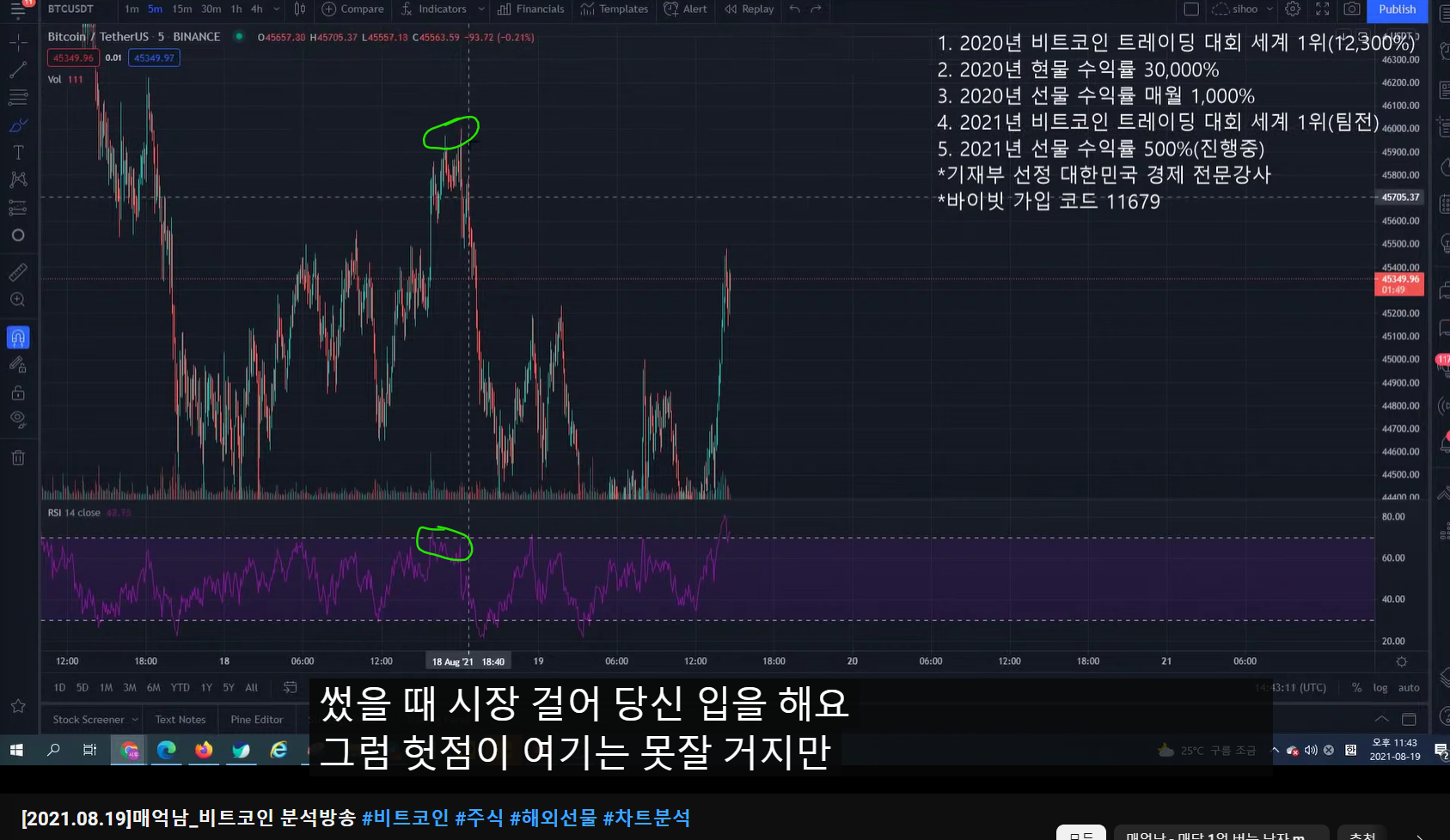 - 지지난 방송에서 고점이 여기라고 말했었고, 숏 타겠다고 말했었다.