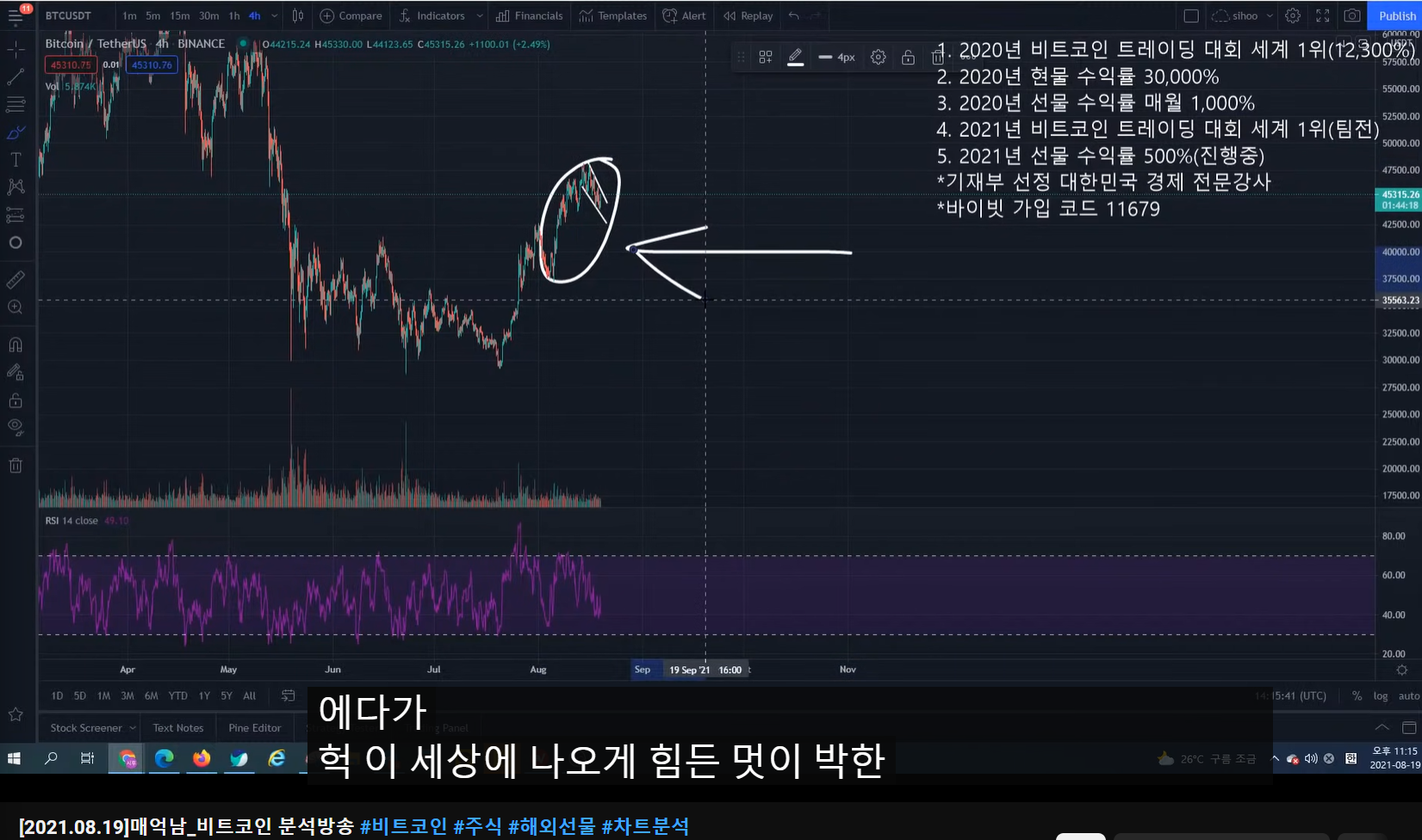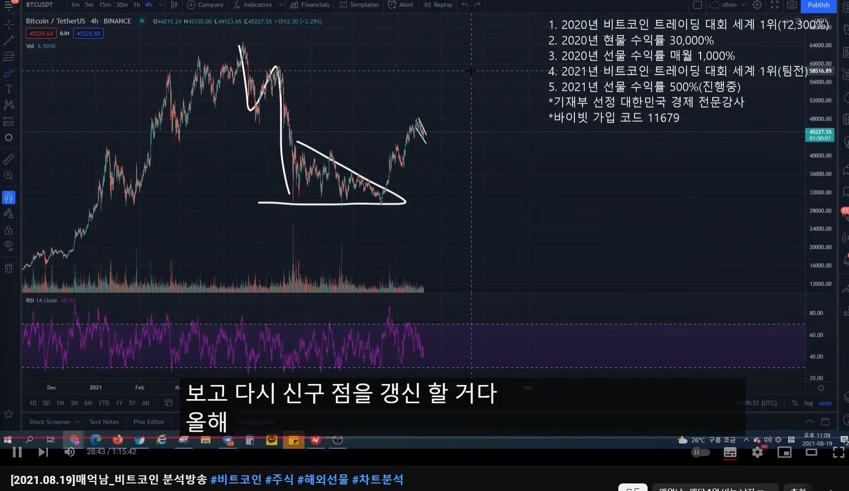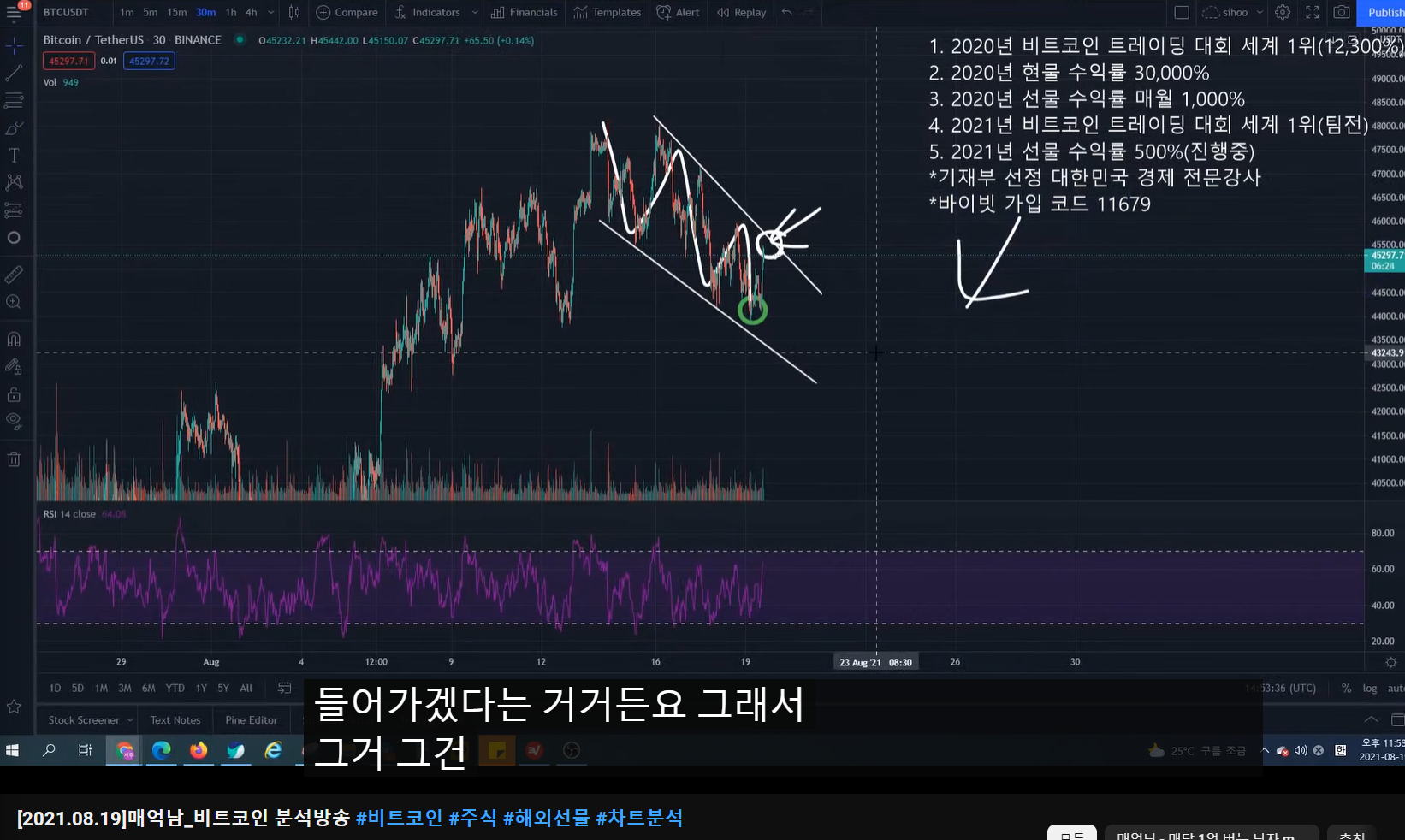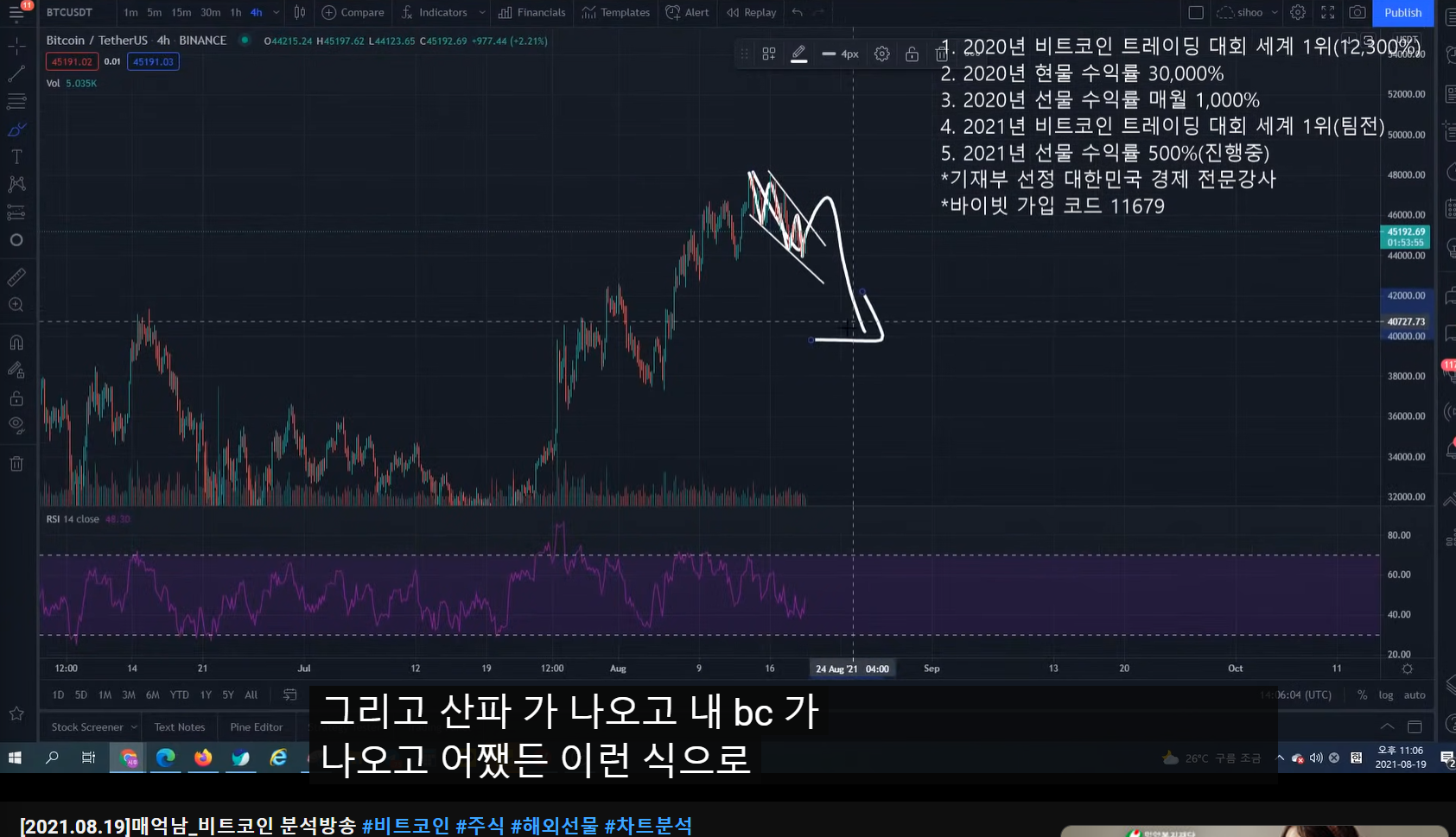 - 지지난 방송에서 고점이 여기라고 말했었고, 숏 타겠다고 말했었다.