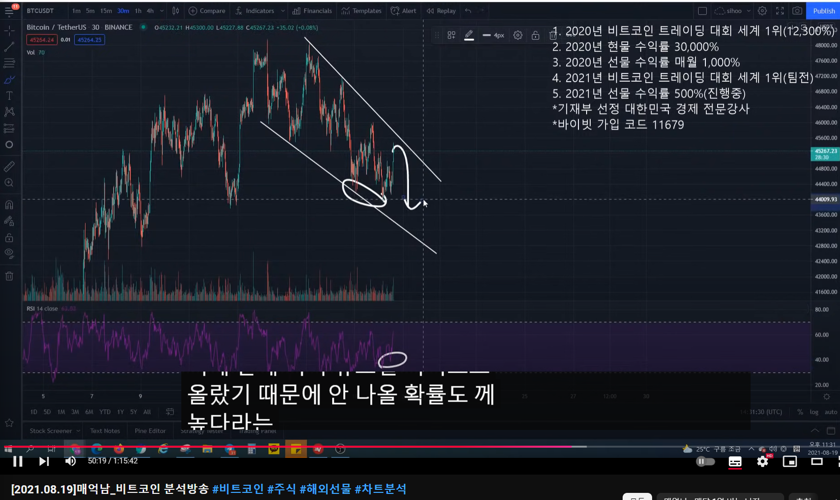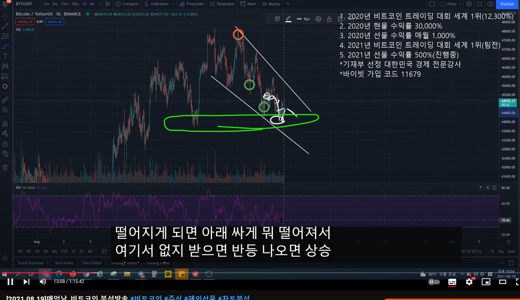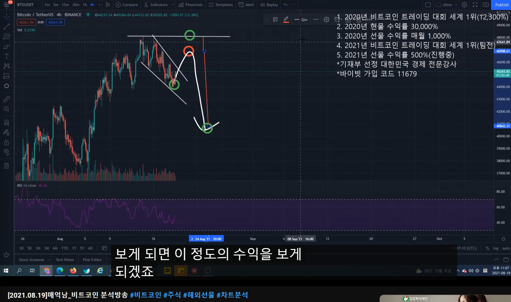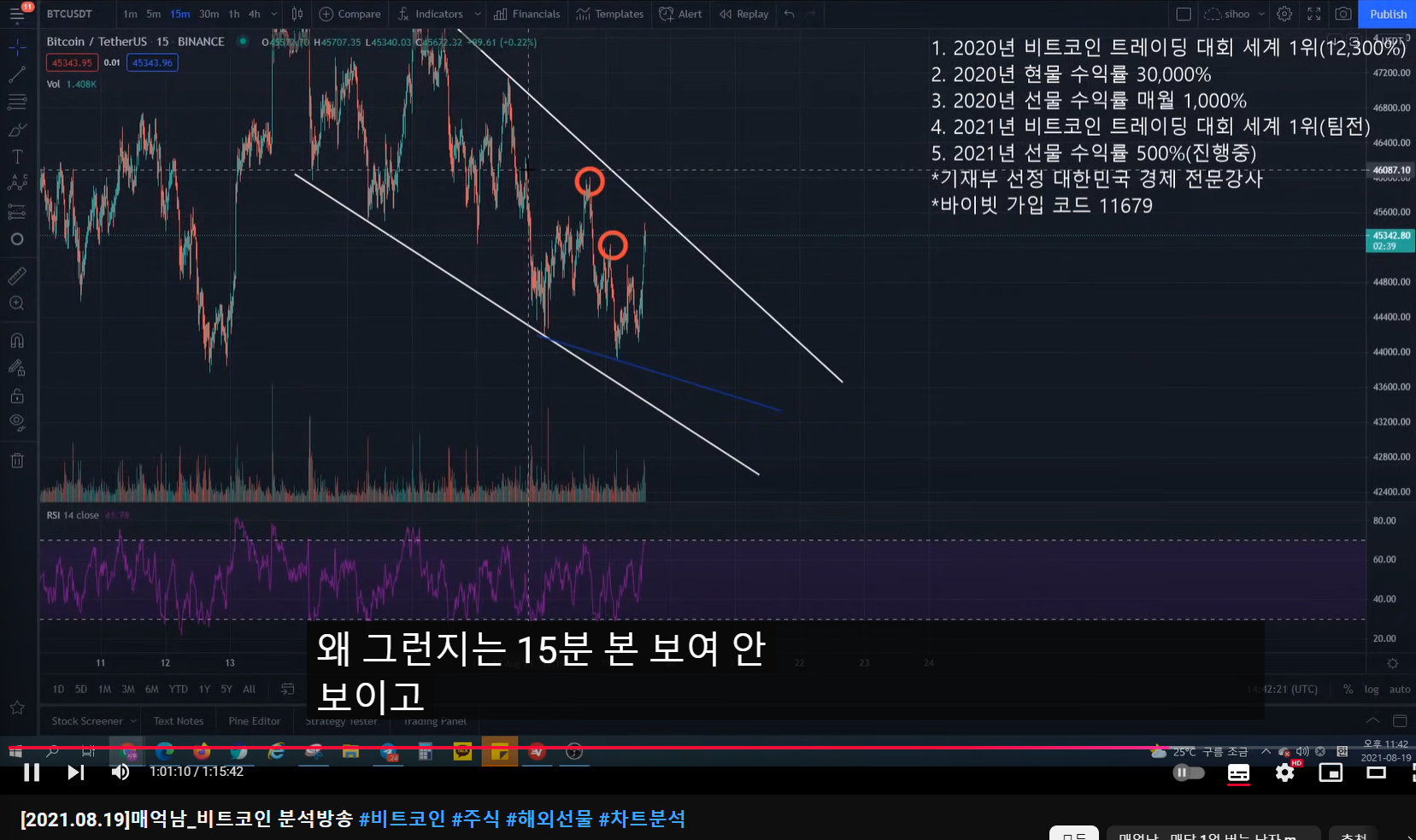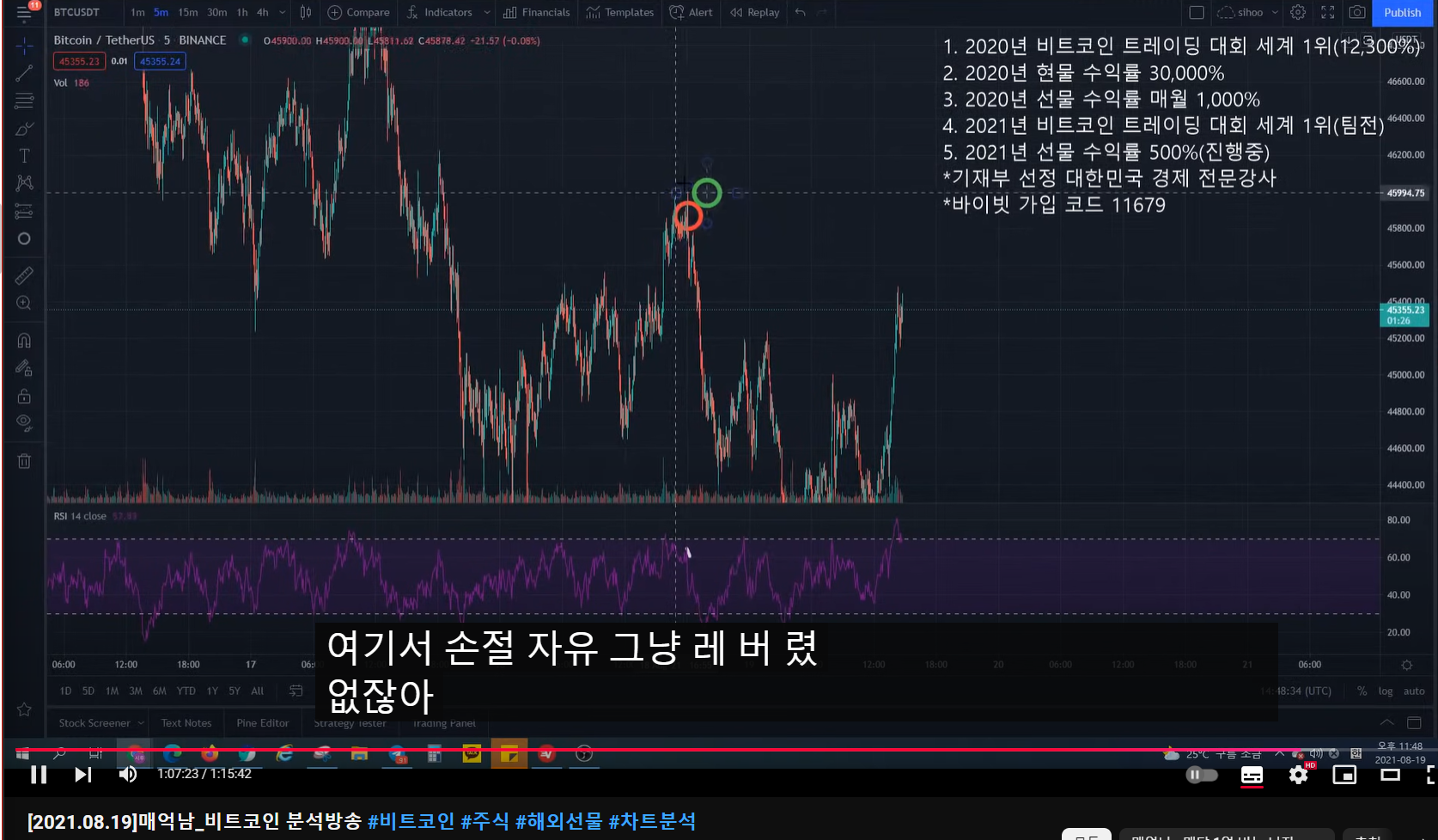 1:07:00 메억남님 방금 말씀하신 대회타점에서 하락 이후 매물대에 익절 다시 숏잡을 때 손절을 어캐해요?