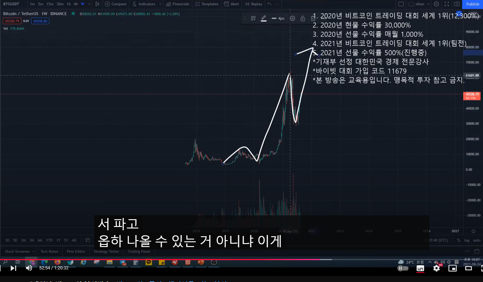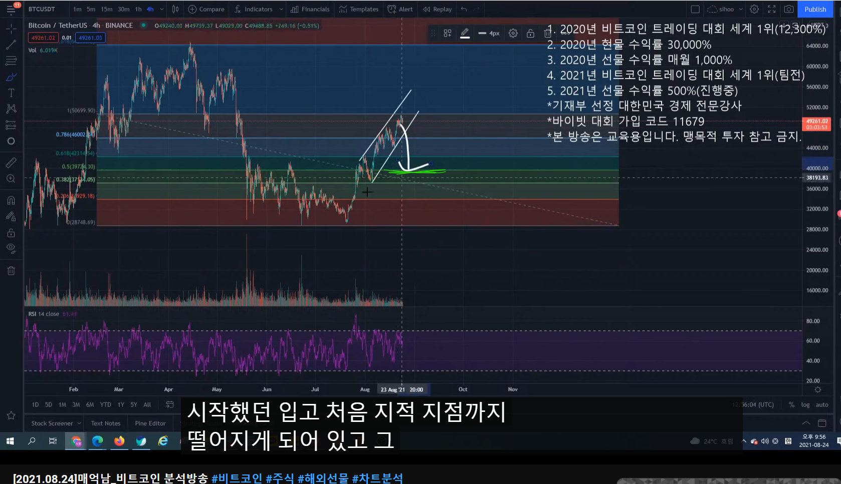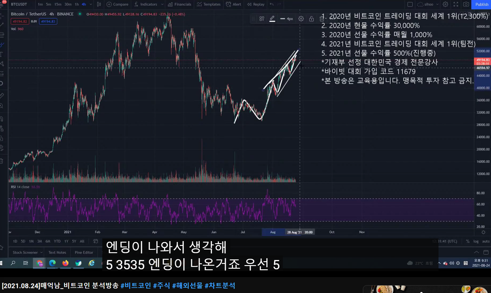 - 3-1 파동이면 피보나치 618 구간 밑으로 잘 안 내려간다. 47k 부근.