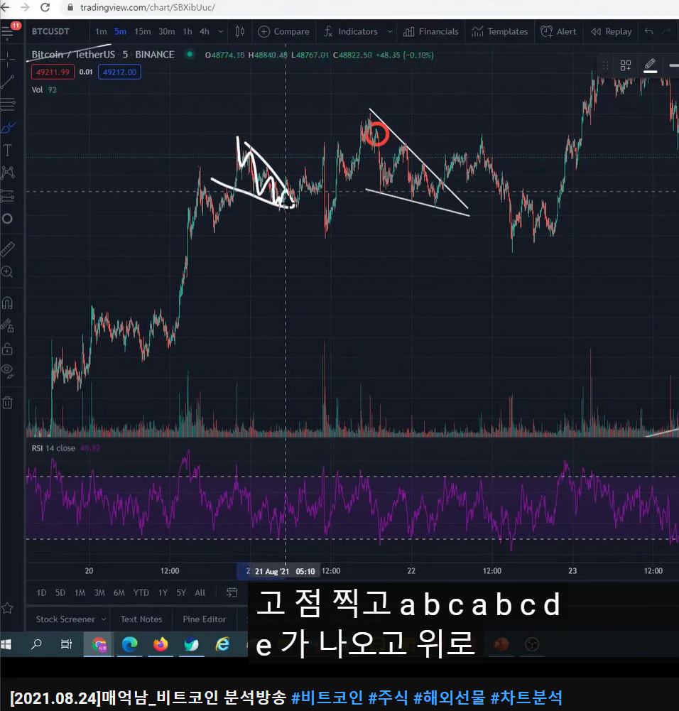 - ABC로 올라왔는데 수렴했다. 수렴관점으로 봐도 되고, 고점 트라이했다가 실패하는 관점으로 봐도 되는데, 그 이후 강 슈팅이 나왔다.