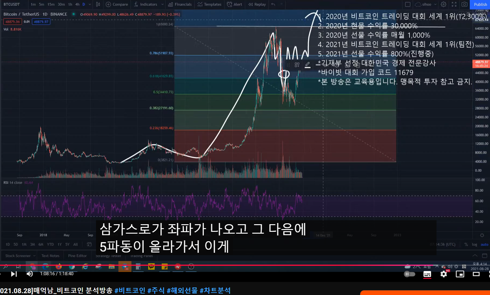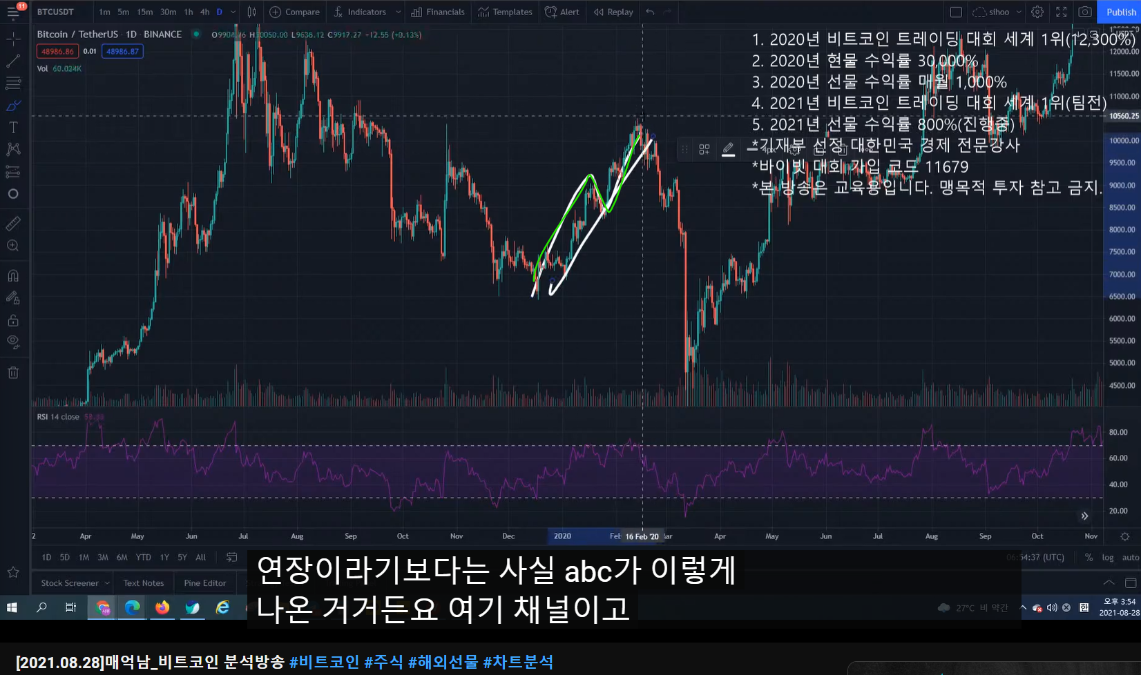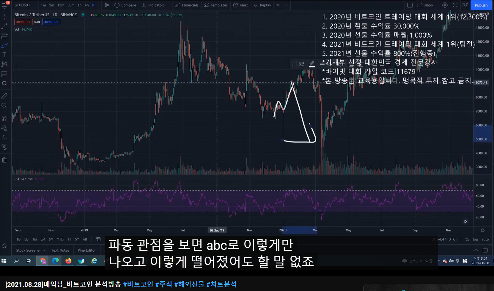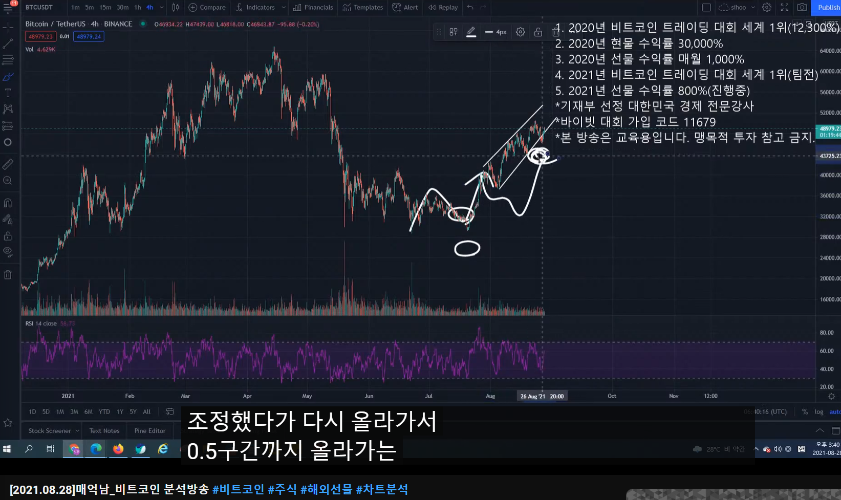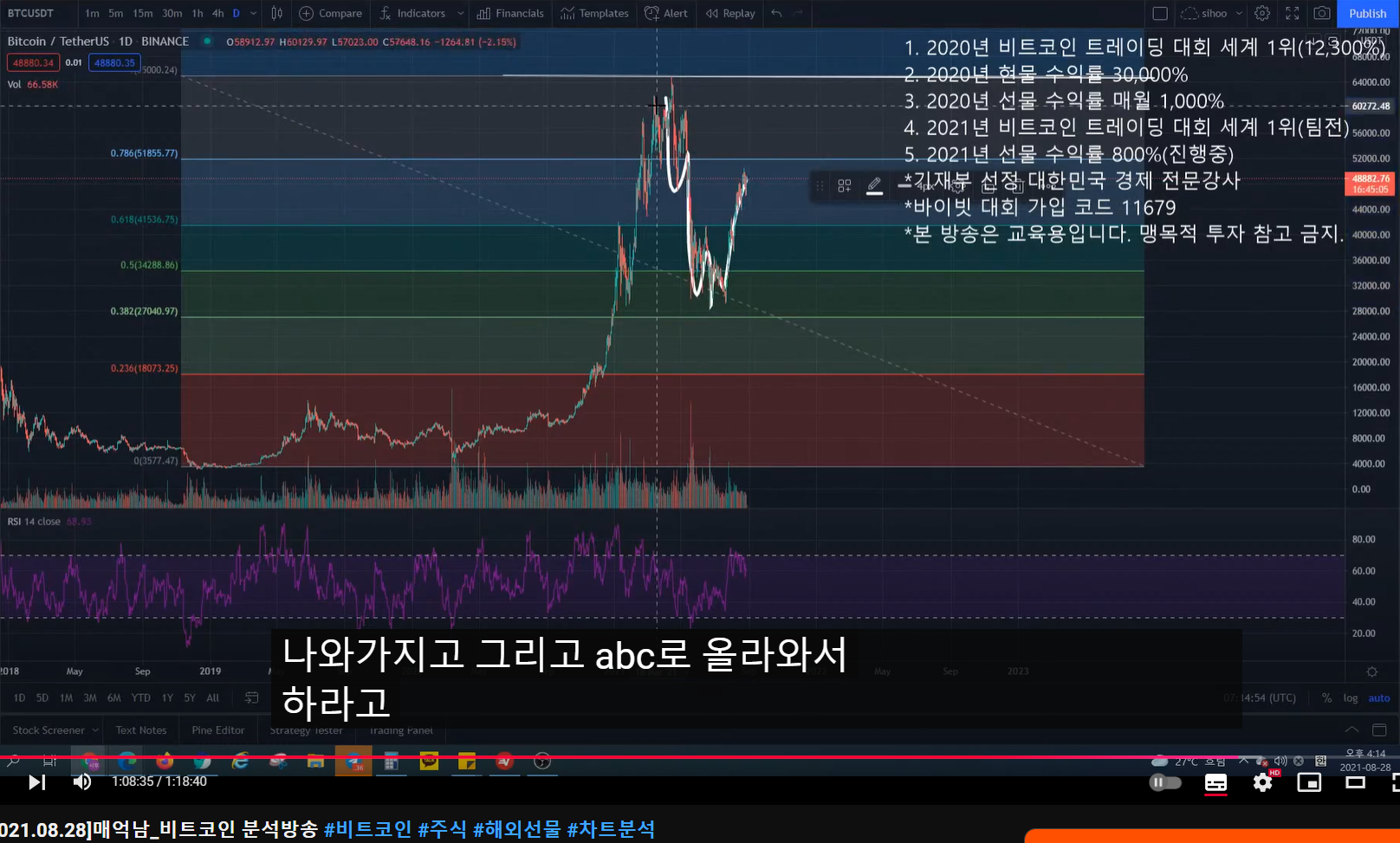 - ABC로 오르고 조정 왔다가 다시 0.5구간까지 오르는 분석이었다.