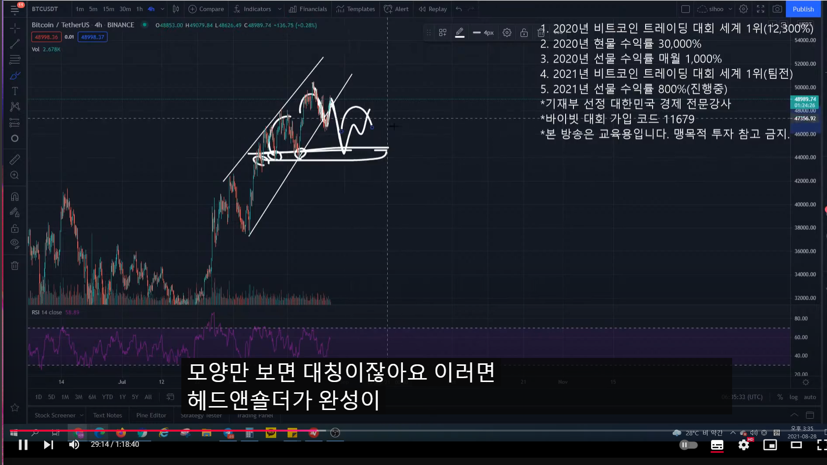 - 그런데 여기도 그렇고, 방송시점 현재도 그렇고, 거래량이 헤드 앤 숄더에서는 헤드 부분이 명확히 크게 나와야 하는 거 아닌가?
