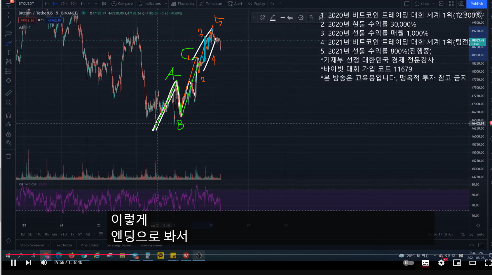 - 이 카운팅이 맞다고 하면, (현재 포지션이 숏이므로) 올라갔을 때 손절하지 말고, 조정주었을 때 익절하고 대응하면 된다.