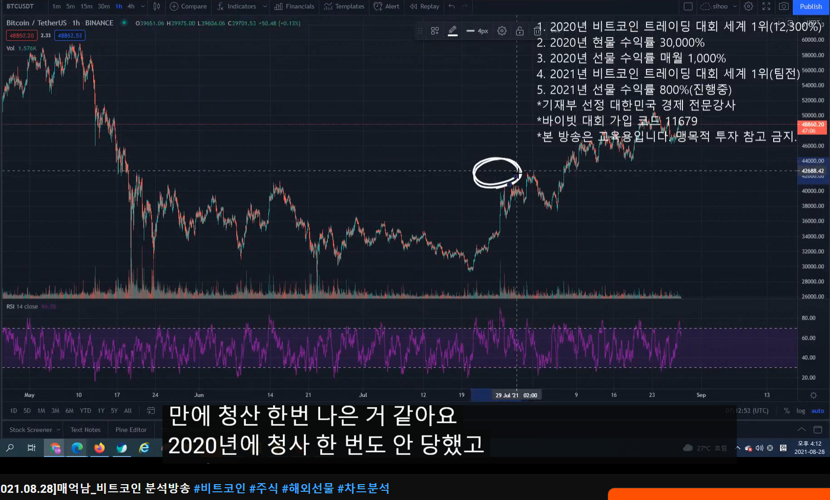 - 방송 키면서 떨어졌을 때 40% 익절 했다.