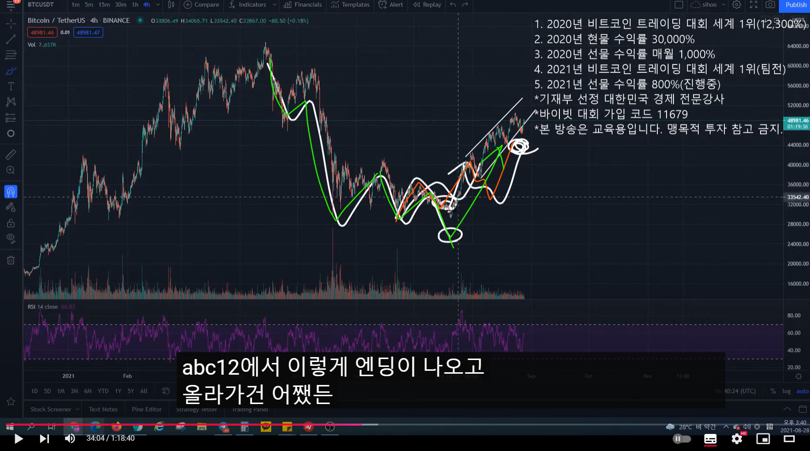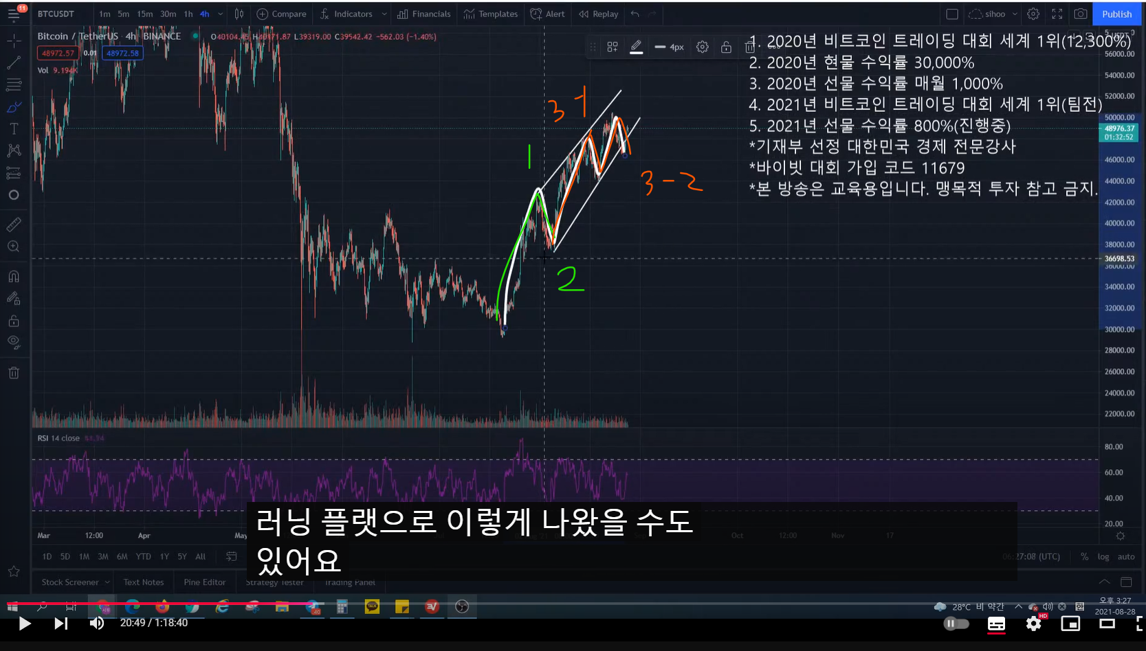 - 그런데 이렇게 반듯하게 정석적으로 차트가 흘러갔었을 때의 일이다. 요즘 비트코인은 예전처럼 예쁘고 반듯하게 차트가 잘 나오지 않는다.