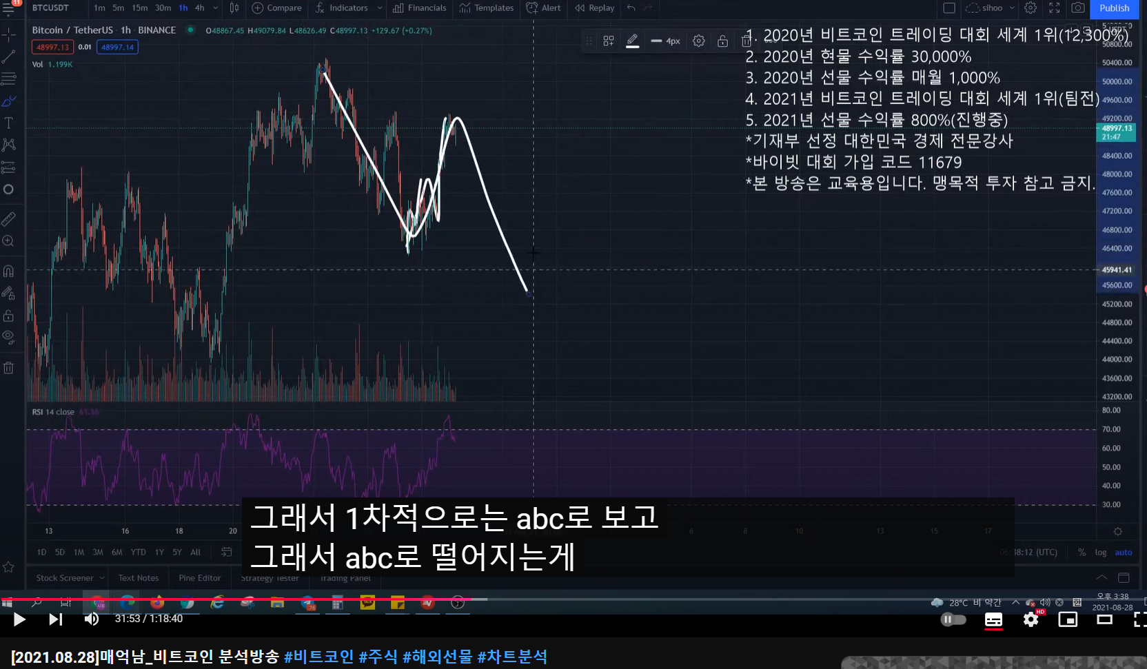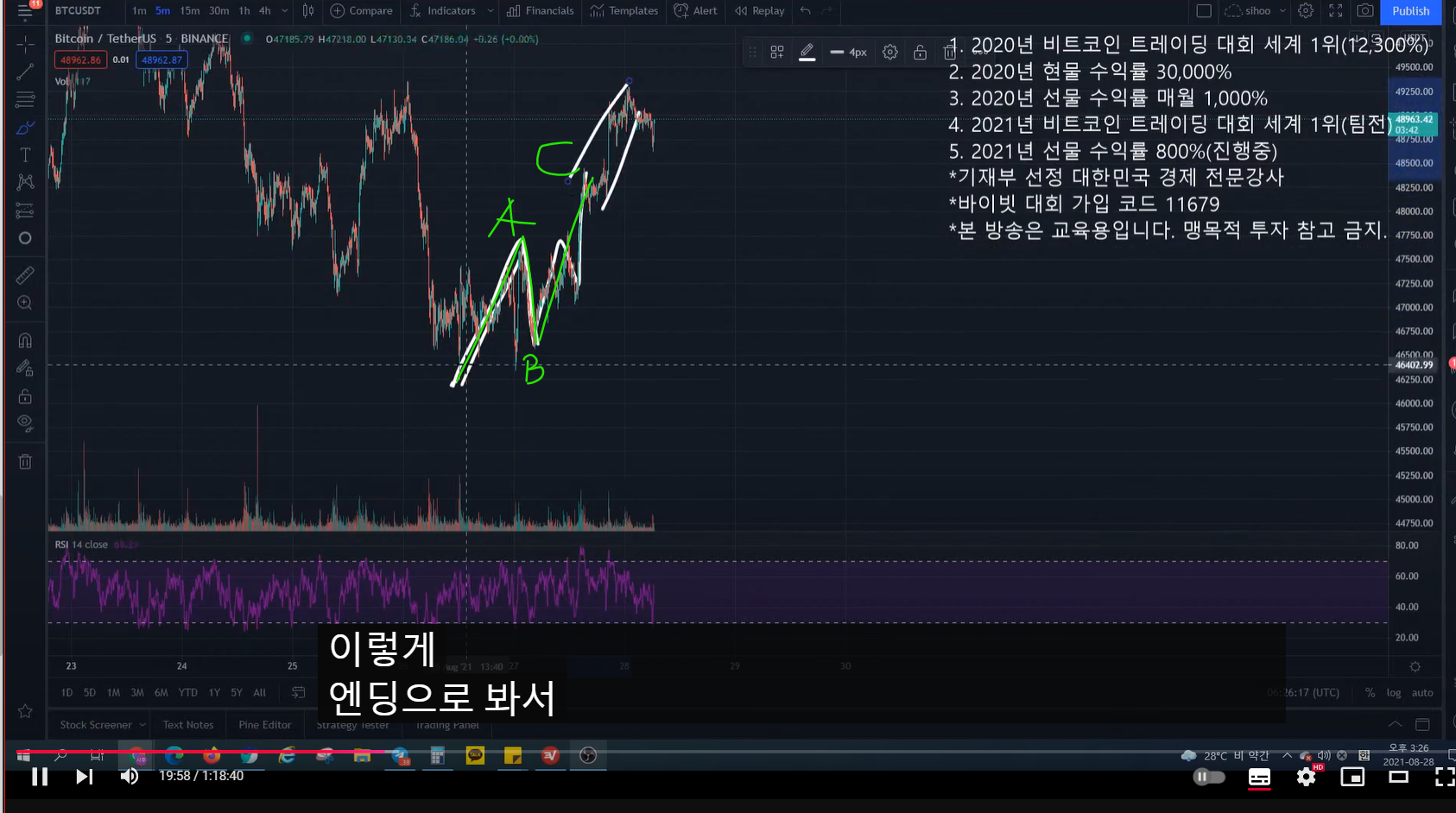 - 그렇기 때문에 크게 봤을 때 ABC로 떨어지는 것이 맞는데, 반등이 나오니까 헷갈린다.