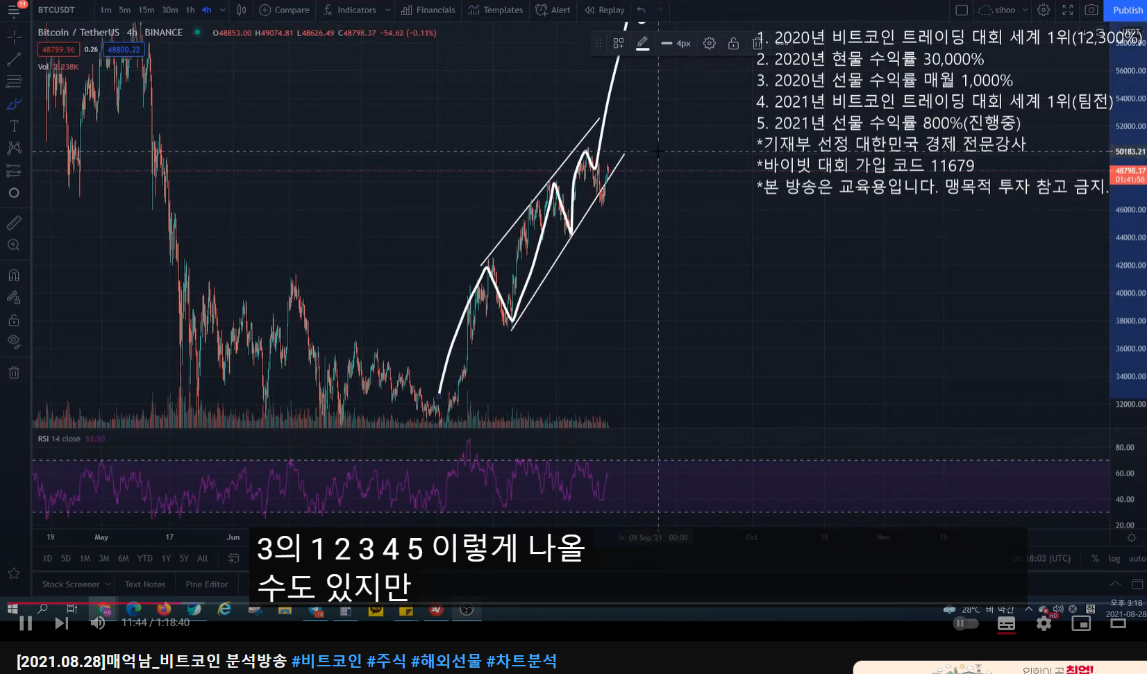 - 이후에 3파에서도 리딩이 나와서 3-1, 3-2가 나왔고 3-3이 나오는 것 같다. (방송 시점에서 분석) (여기 잘 모르겠다. 다이아고날의 경우 카운팅을 어떻게 하는 건지 봐야 할 필요가 있다.)