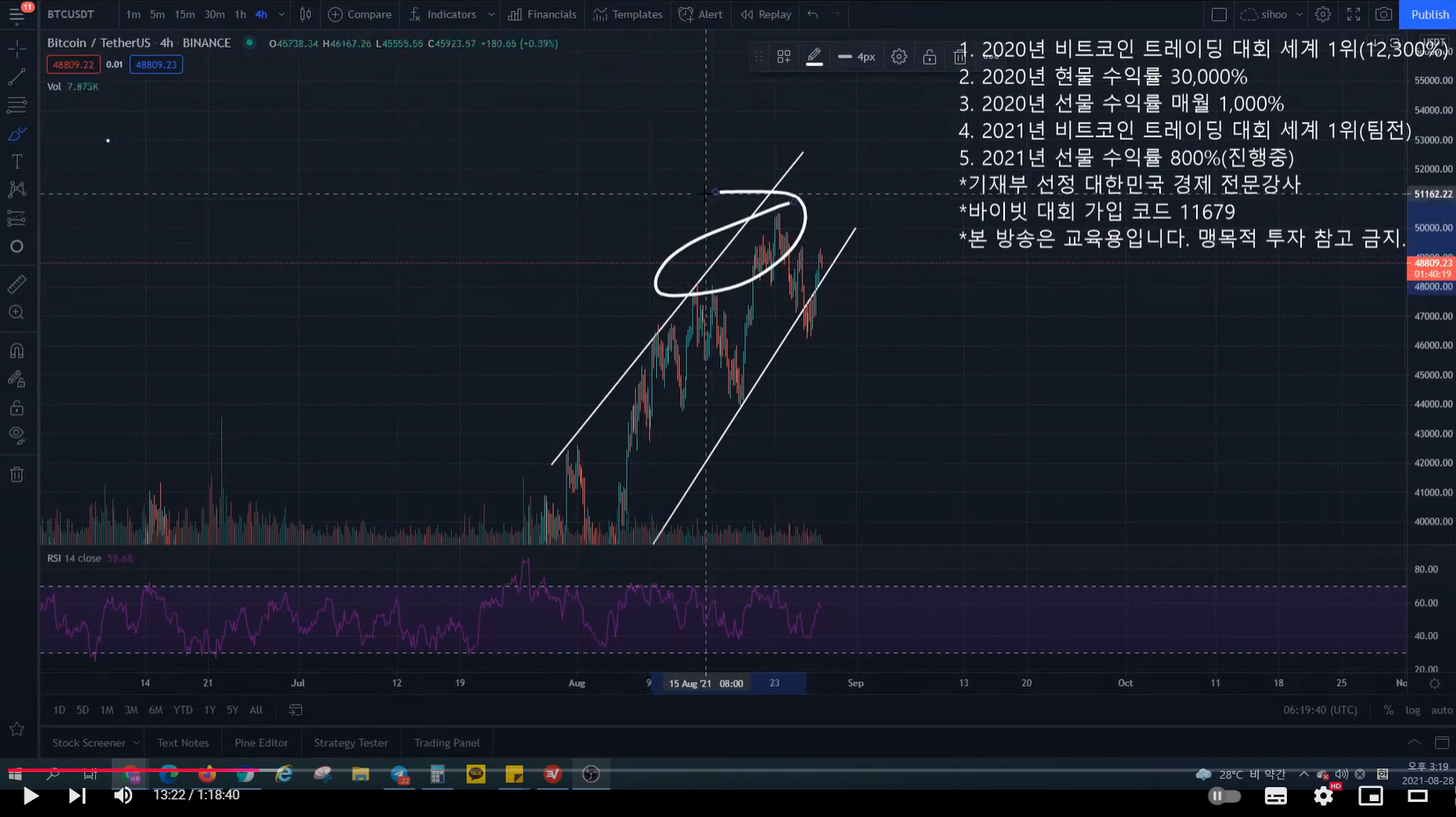 - 반등이 나오지 않을 구간이라고 생각했는데, 방송 시점에 반등이 나오고 있다.