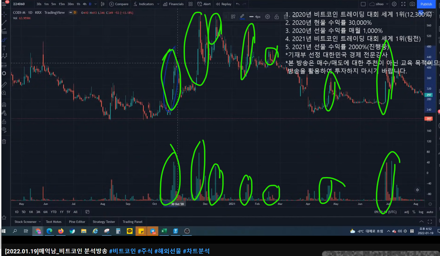 - 2018년도 말 상승장, 19년도 말 상승장, 본격적인 상승장에 계속 고점을 두드리면서 갔었다.