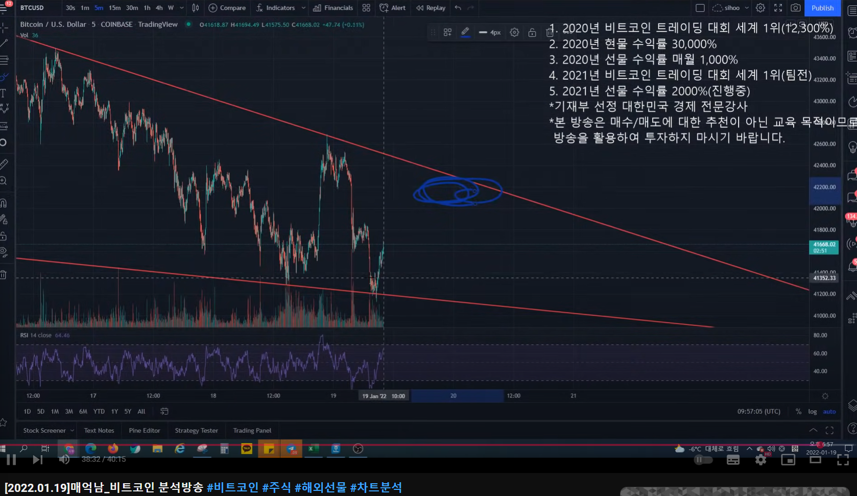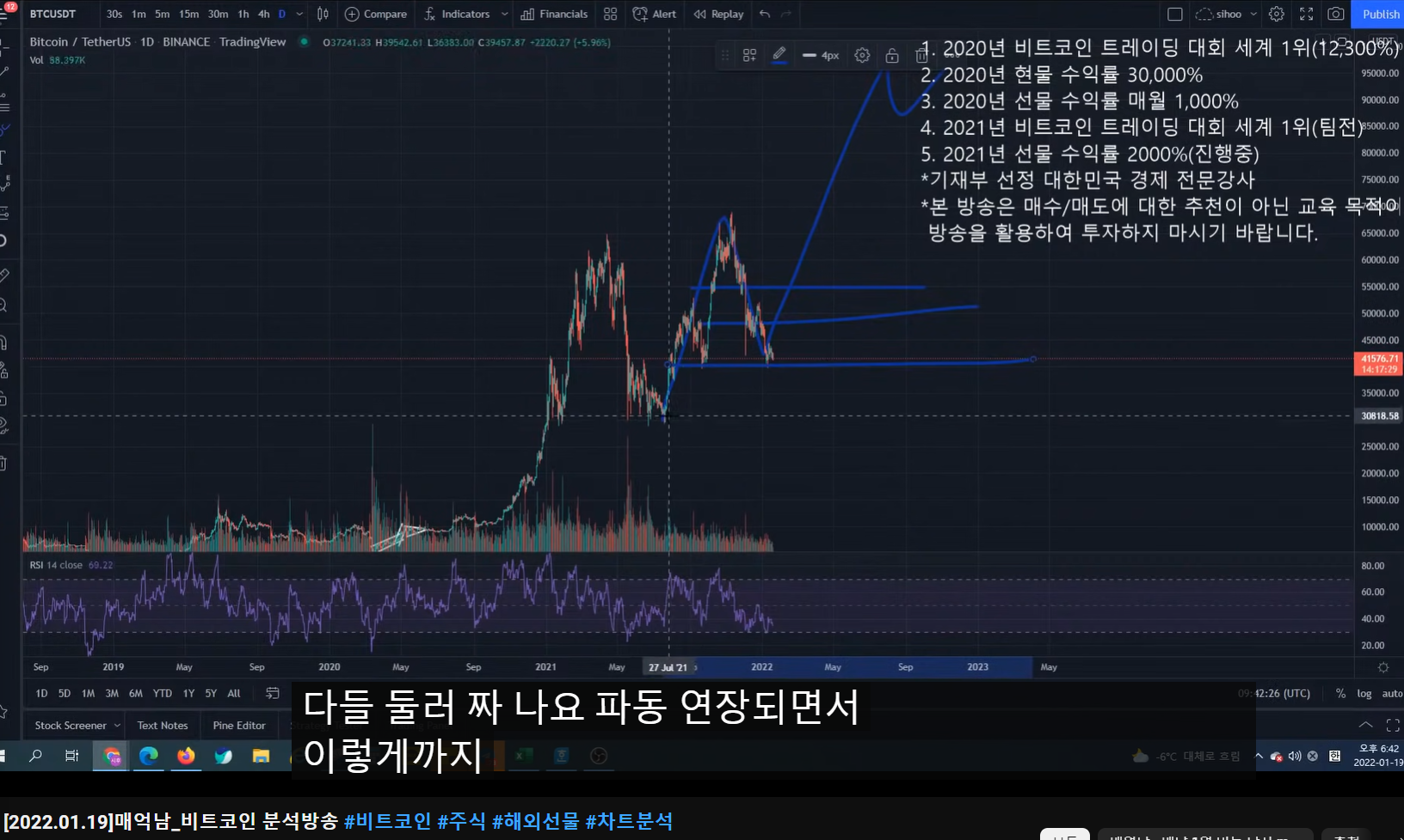 - 만약에 지금부터 올랐다가 한 번 더 쏟아서 39k 후반이 된다고 하면, 상승 다이버전스가 형성될 가능성이 높다.