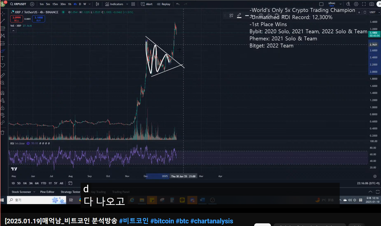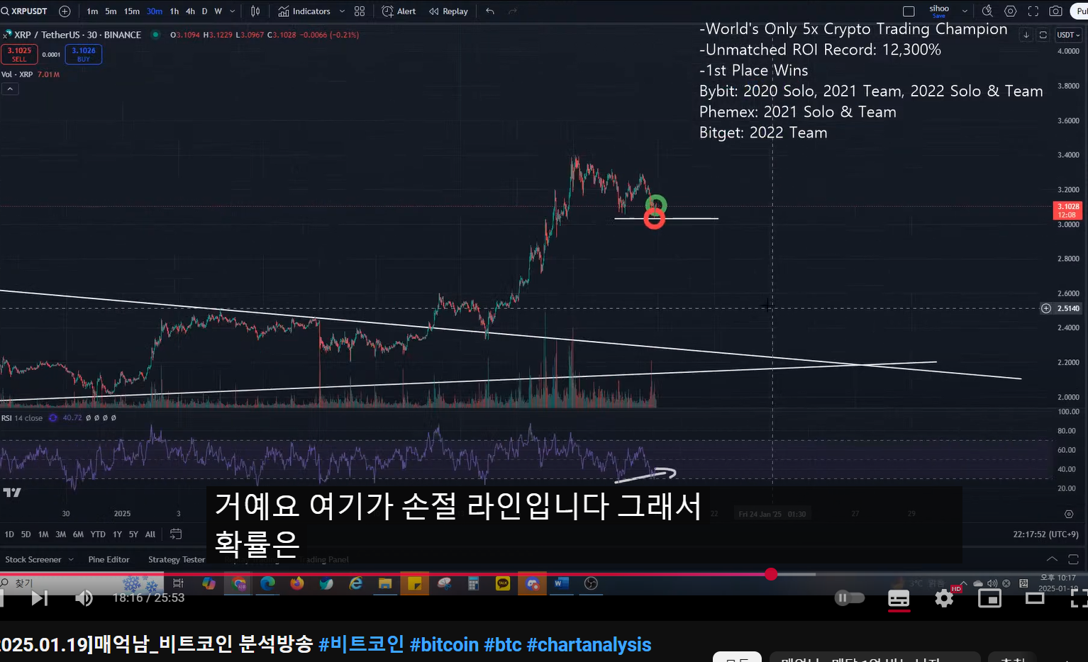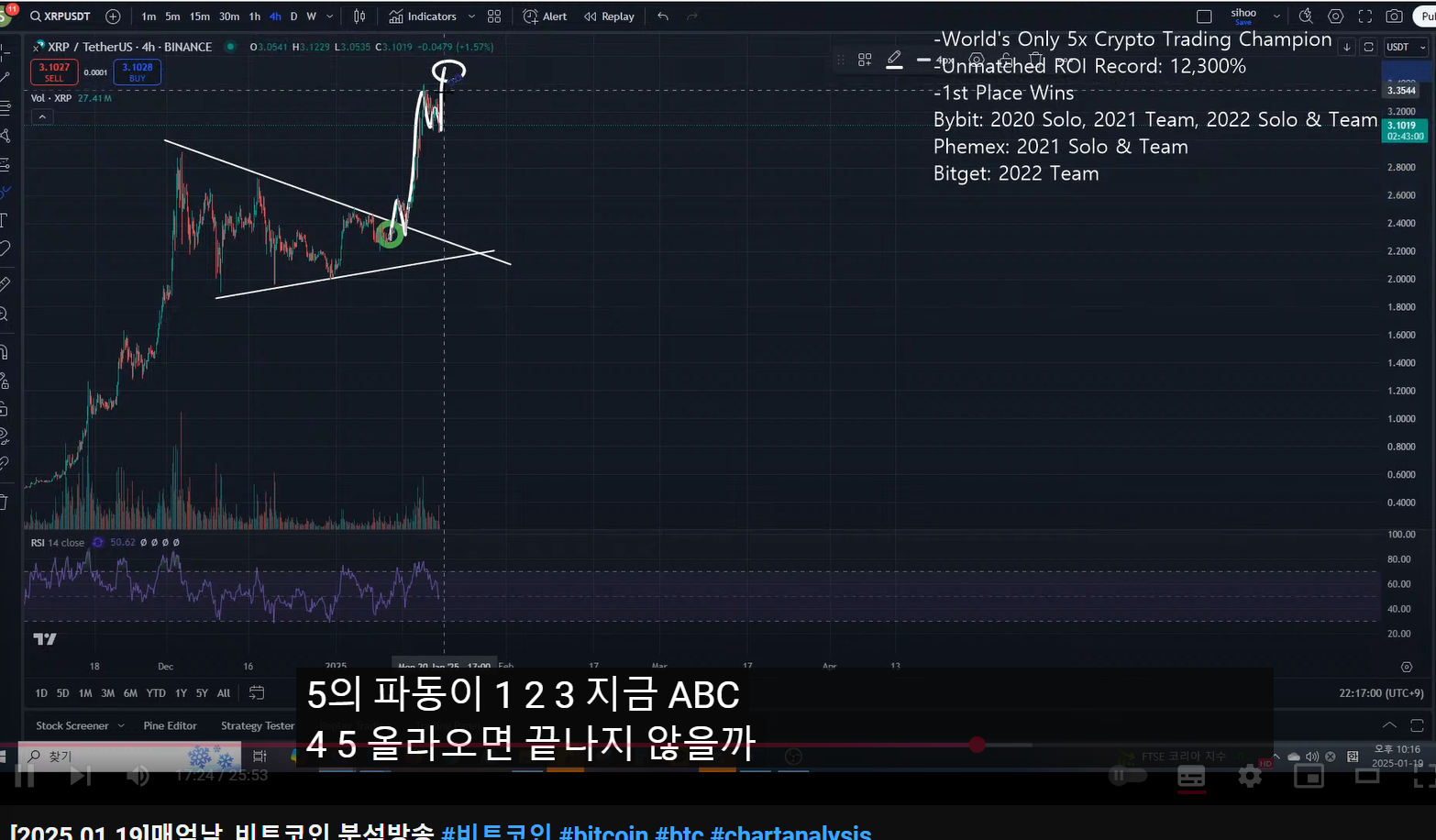- 리플 분석한 이유 : 저점부터 많이 올라왔는데, 언제 익절 하면 되는가였다.