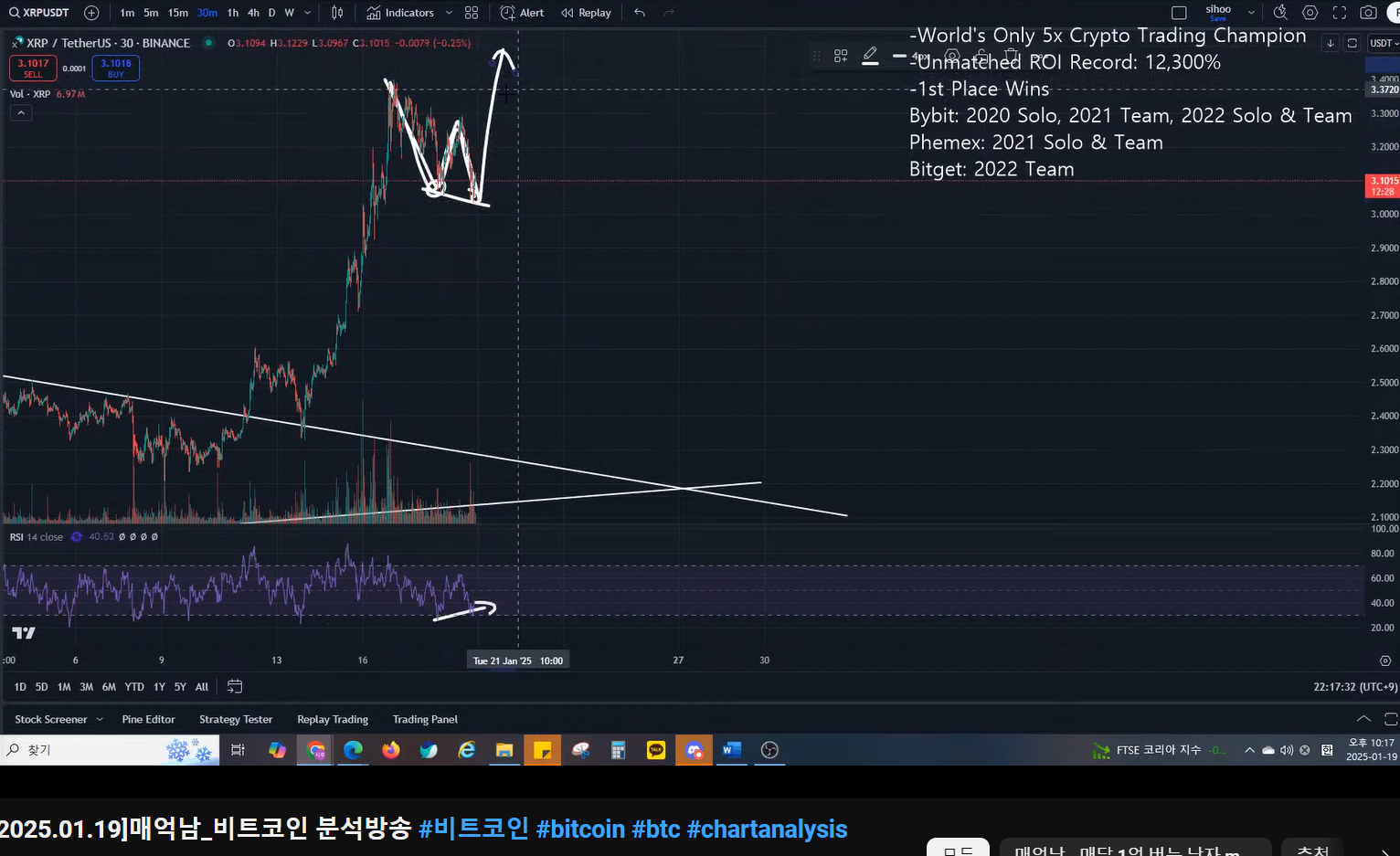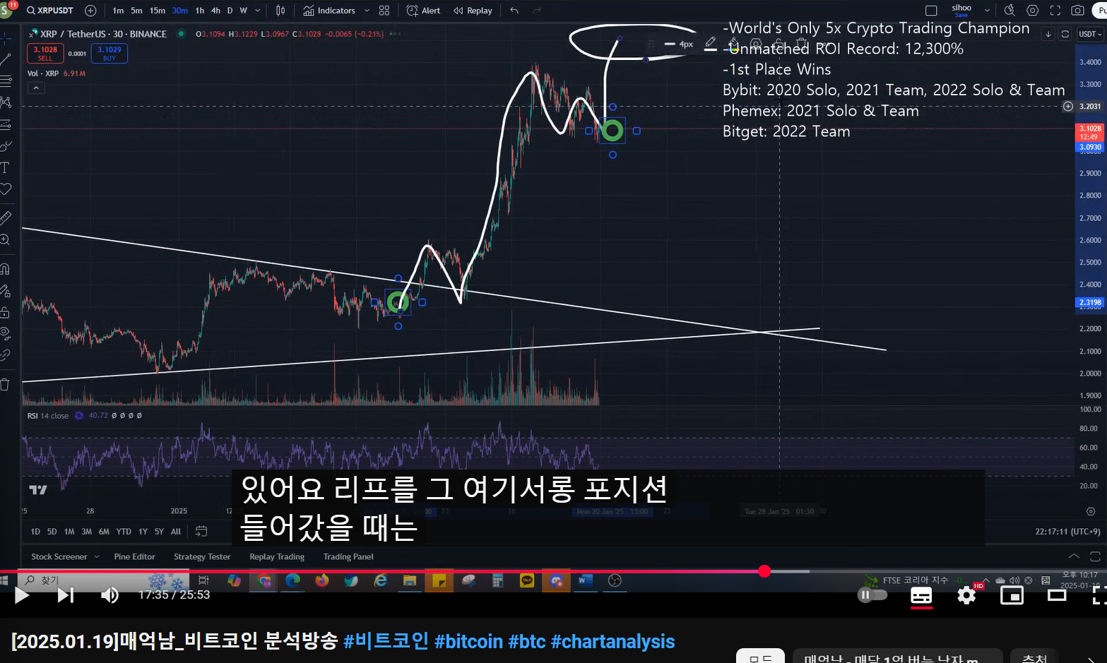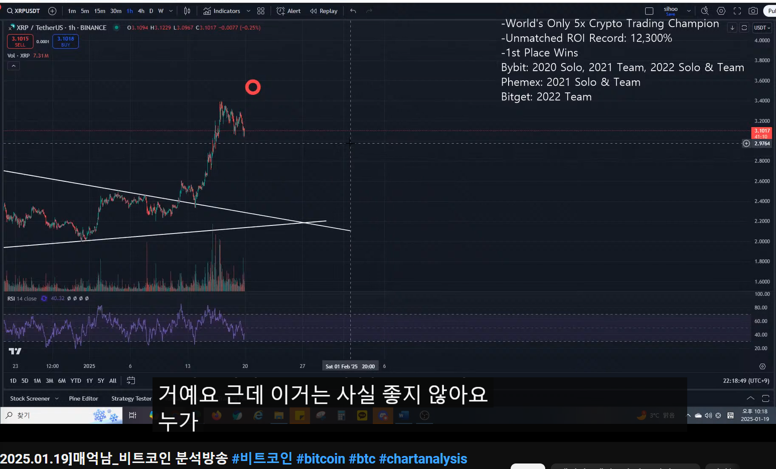- 리플 분석한 이유 : 저점부터 많이 올라왔는데, 언제 익절 하면 되는가였다.