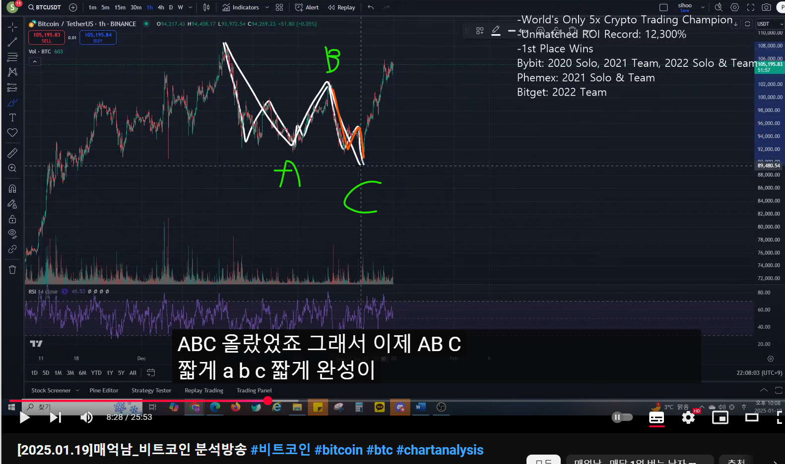 - abc 하락 이후 반등이 왔었다. 내려가는 즈음에 방송을 했었다.