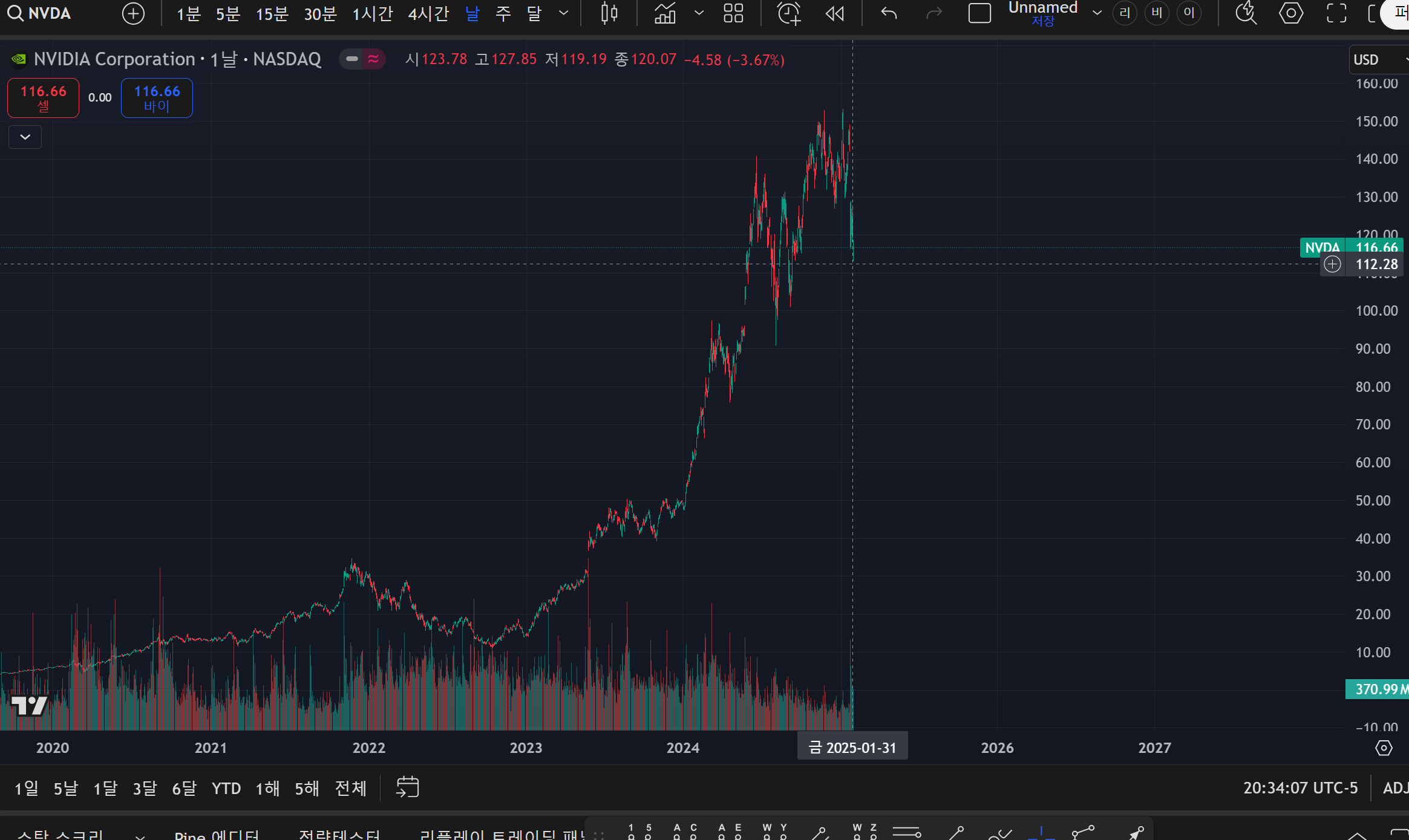 - 단기 폭락은 나왔다. 엔비디아가 오랜만에 갭하락했다. (딥시크로 인해서)