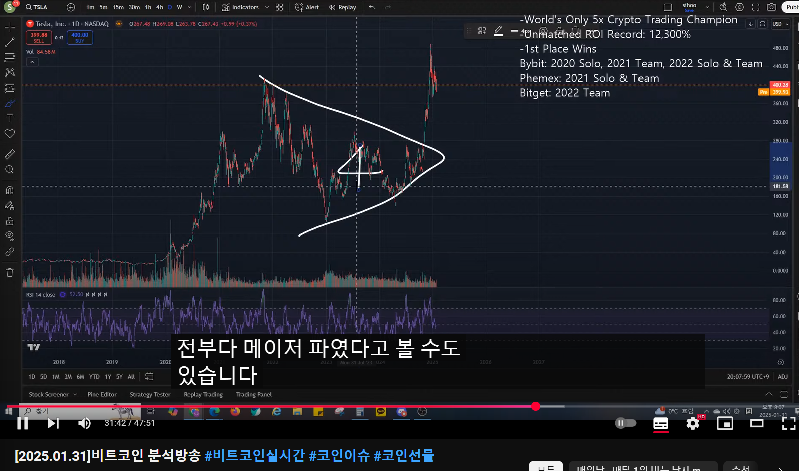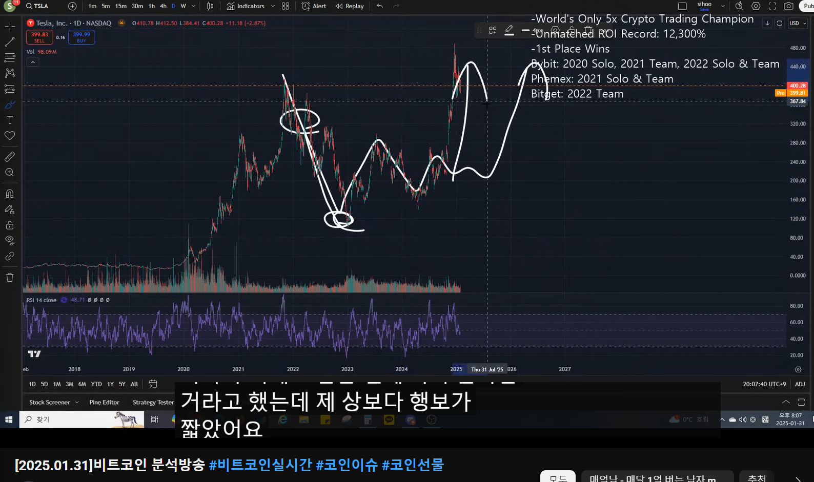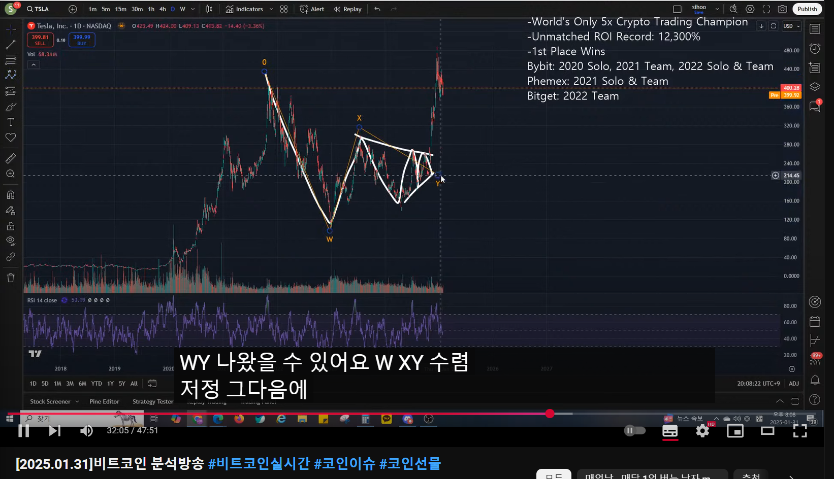 - 테슬라에서 말한 것처럼 wxy(abcde)로 수렴하다가 올라갈 수도 있겠지만, 지금으로서는 힘들지 않을까 싶다.