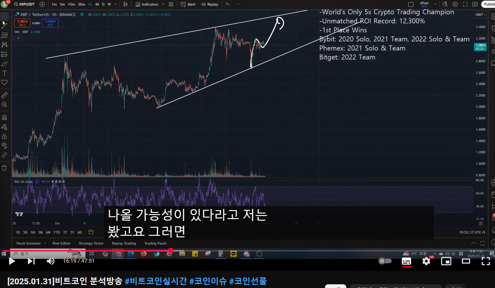 - 중기 트렌드 라인에서 반등이 나왔기 때문에 상방으로 갈 가능성이 있다고 봤었다.(abc로 엔딩 가능성)