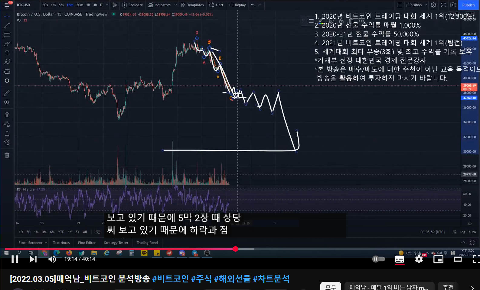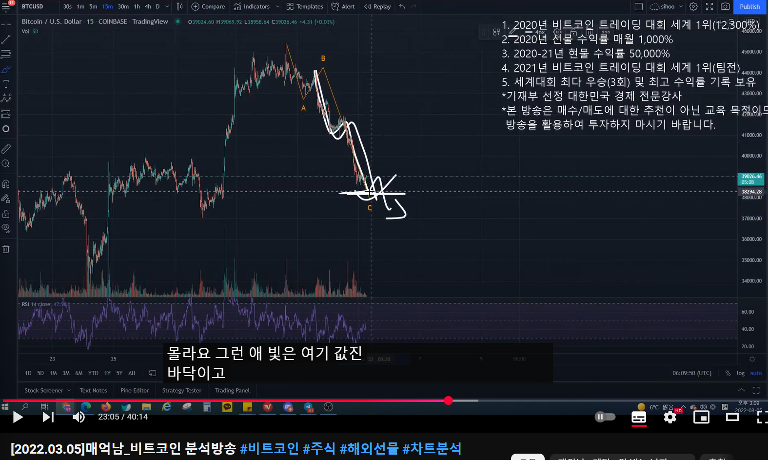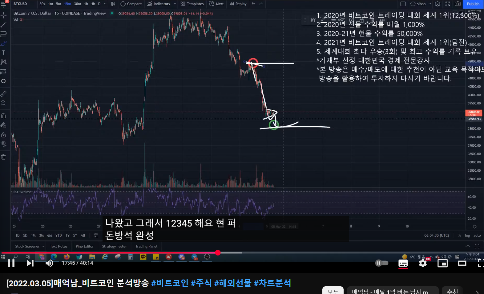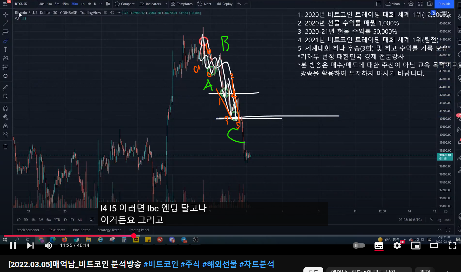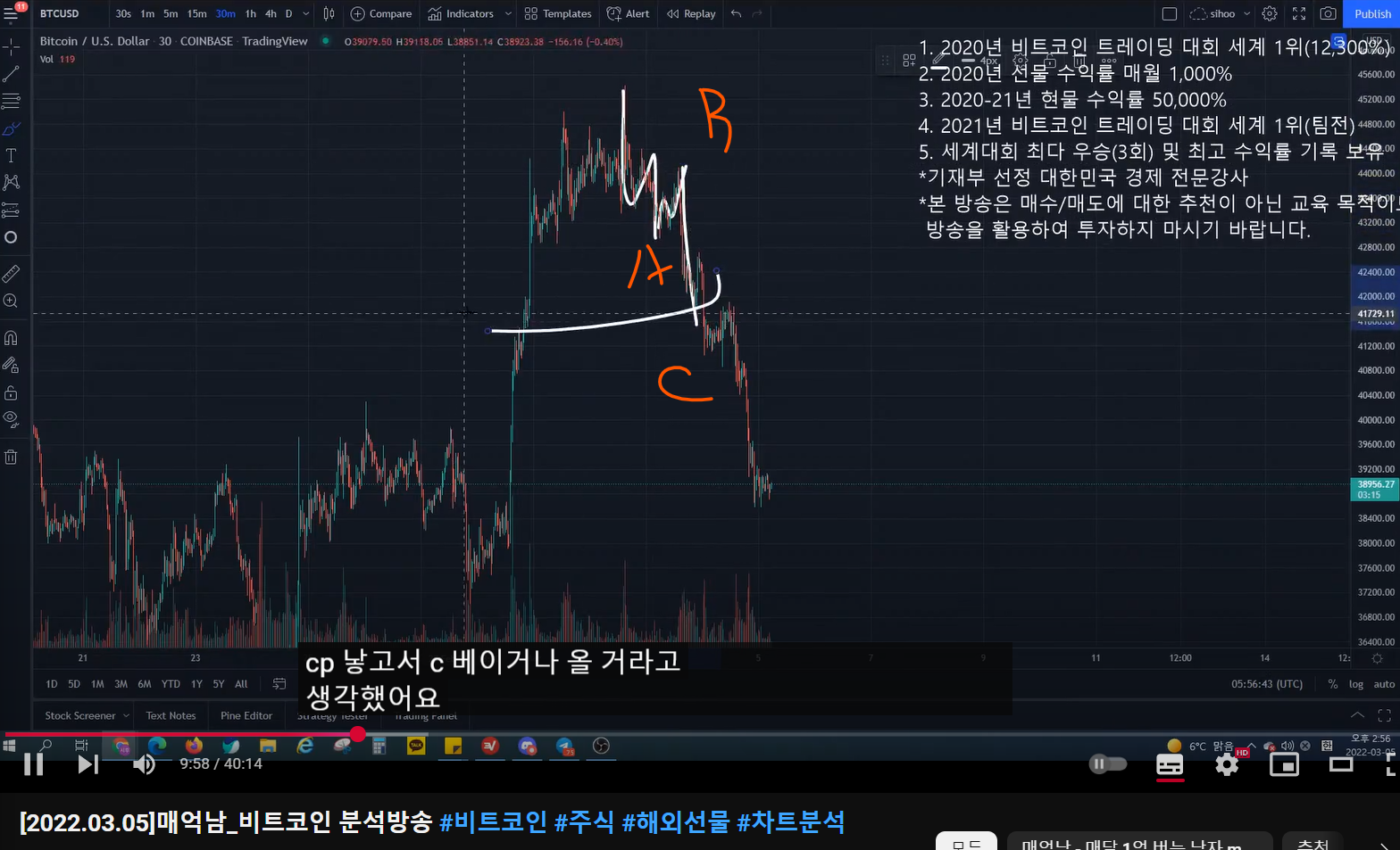 - 지난 방송 이후 숏 홀딩 중이었다.(42k 초반까지 가져갈 것이라고 말했었다.)