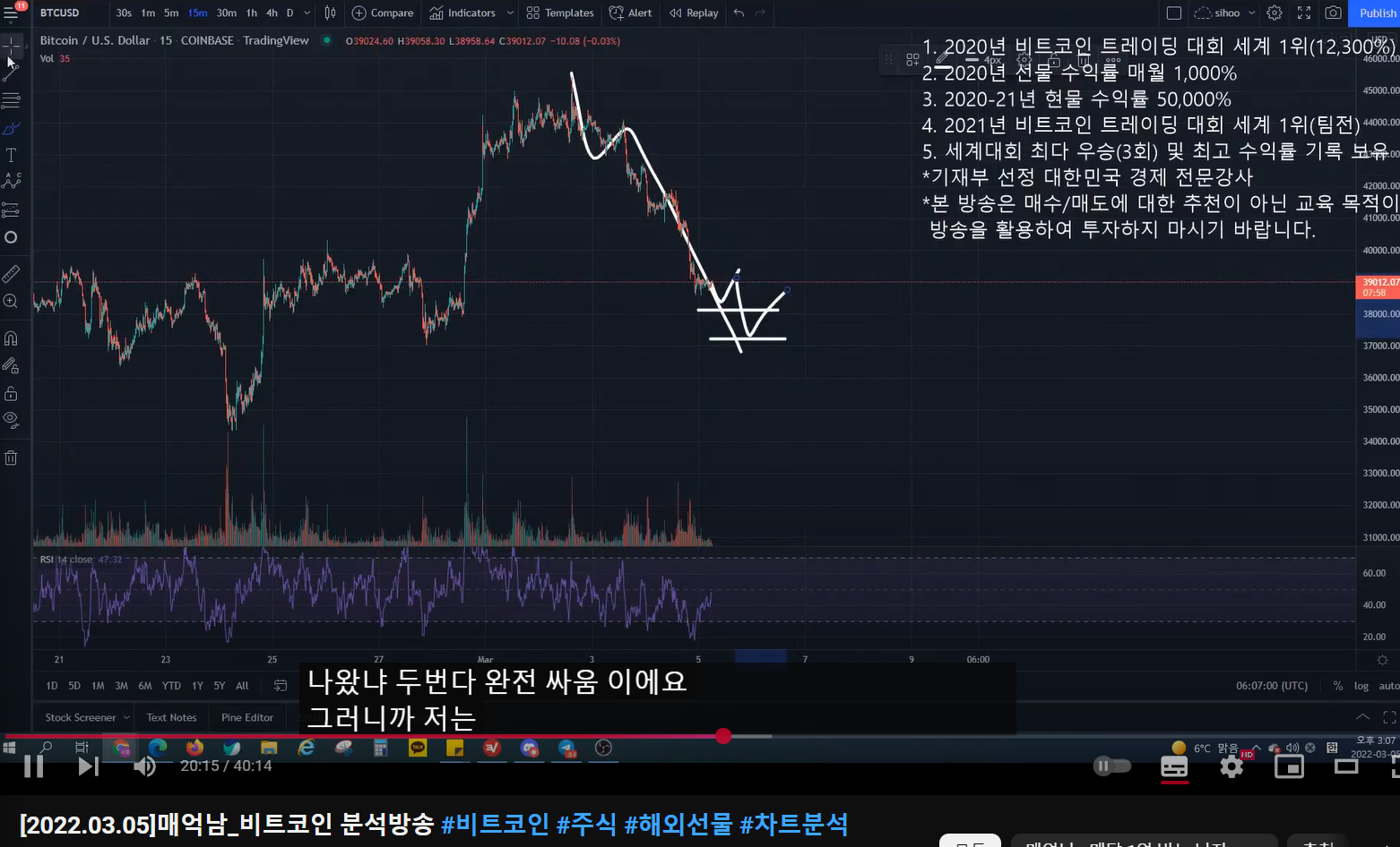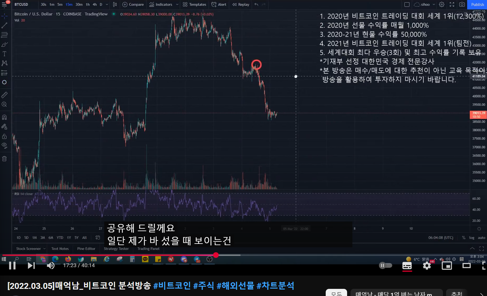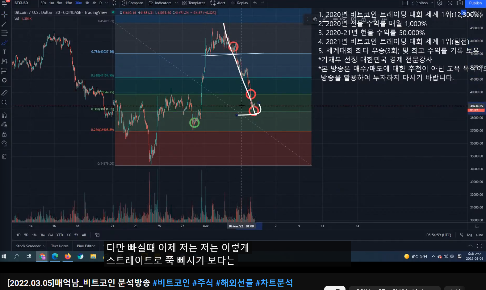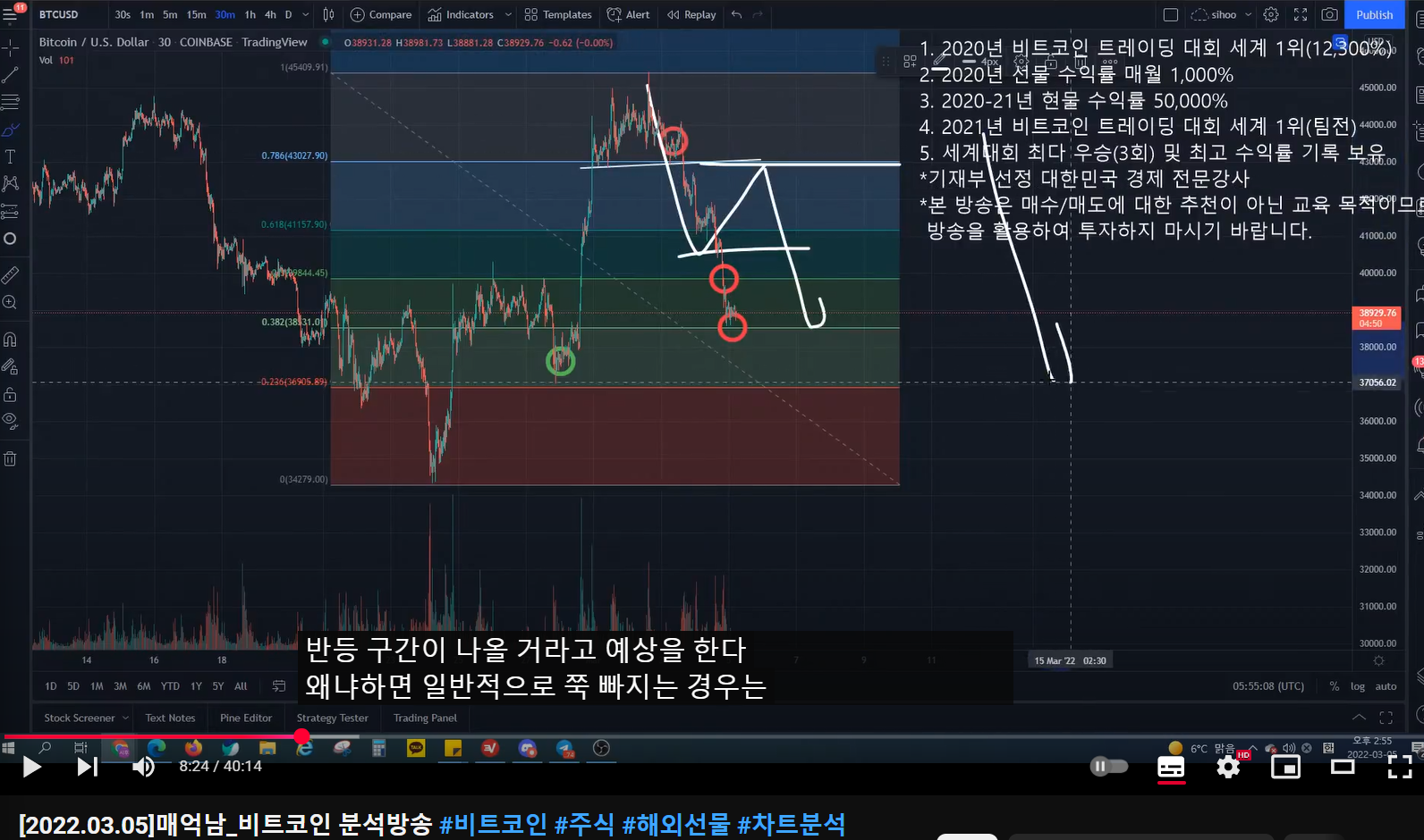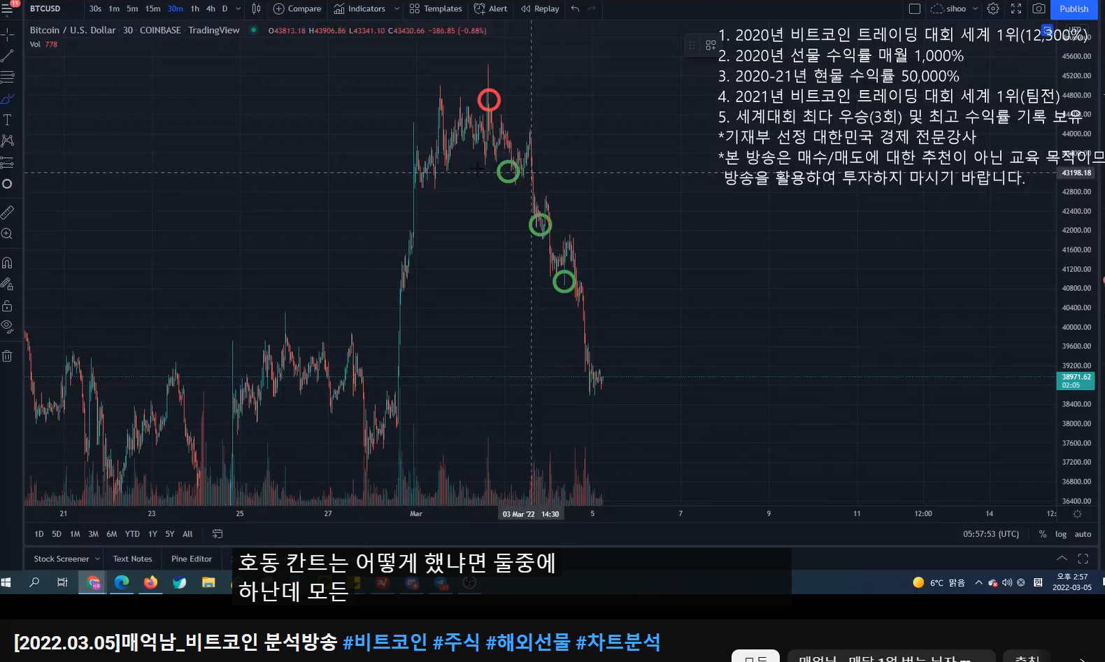 - 지난 방송 이후 숏 홀딩 중이었다.(42k 초반까지 가져갈 것이라고 말했었다.)