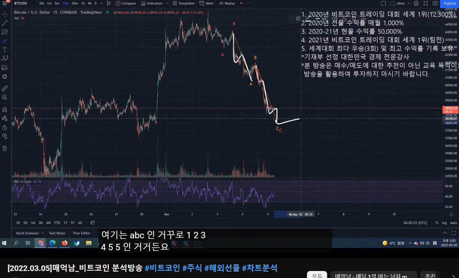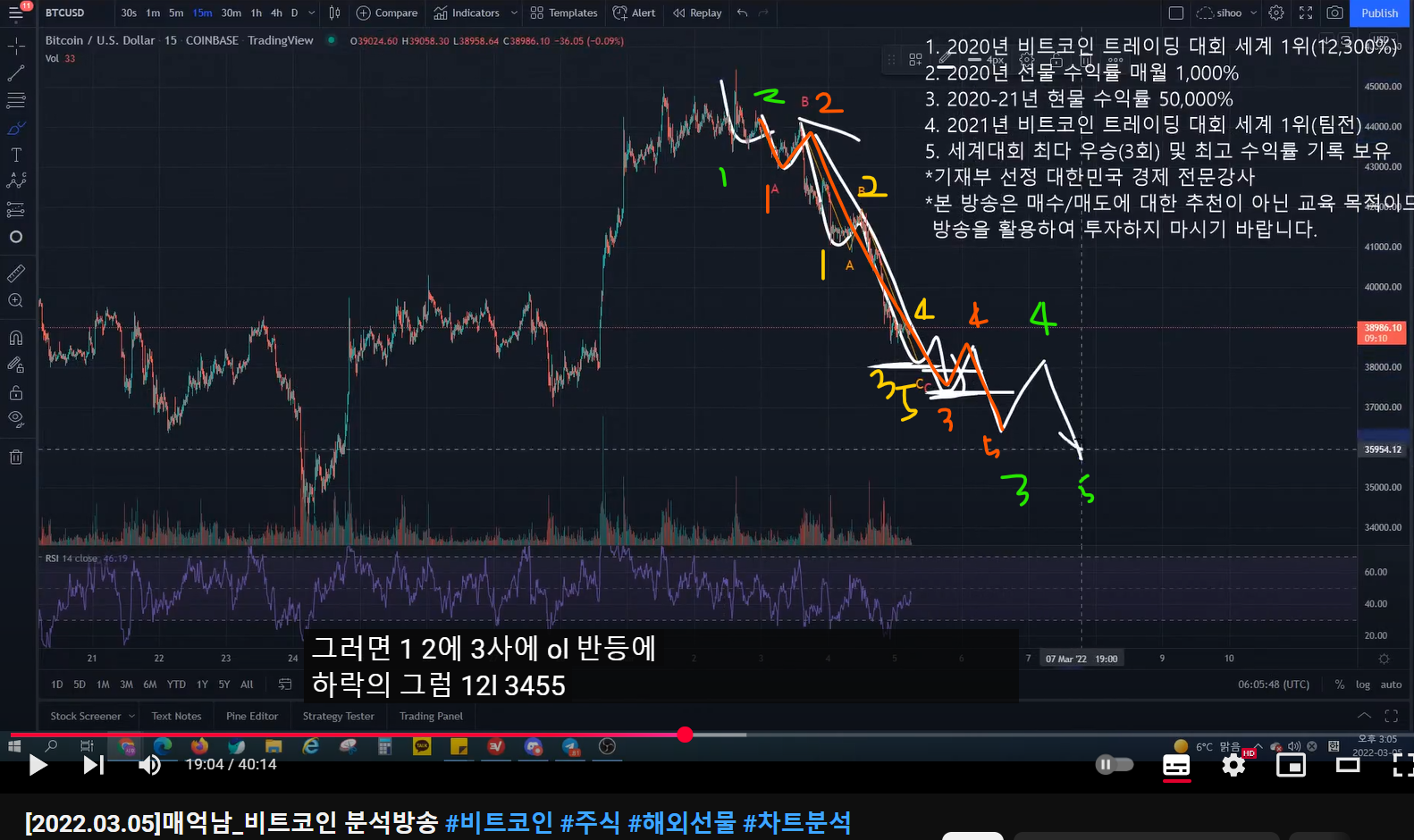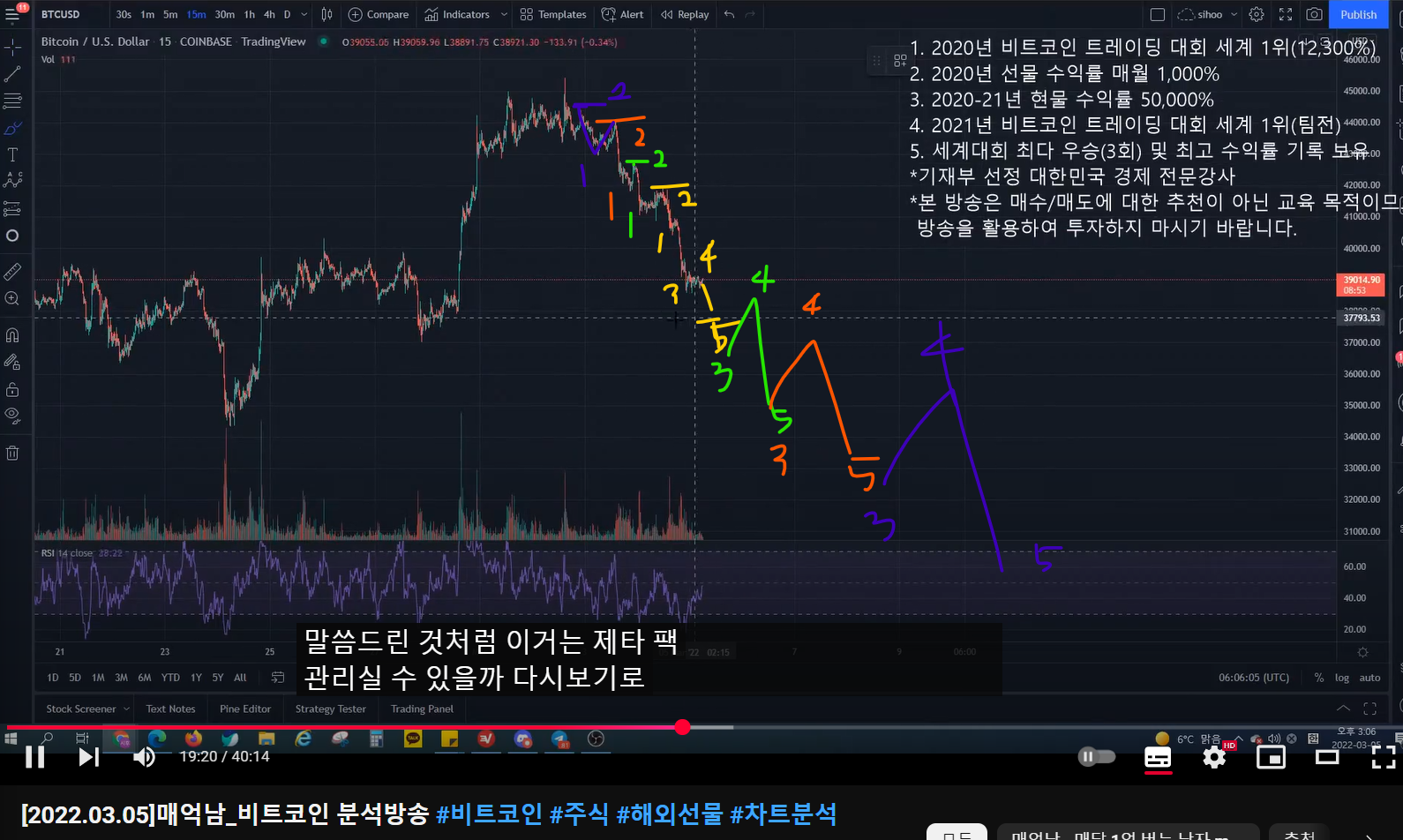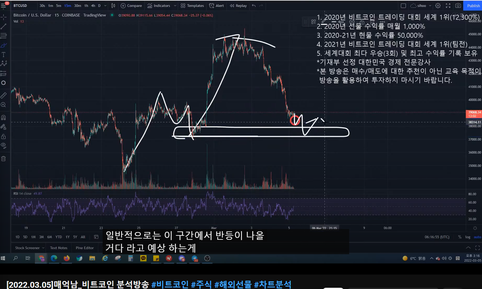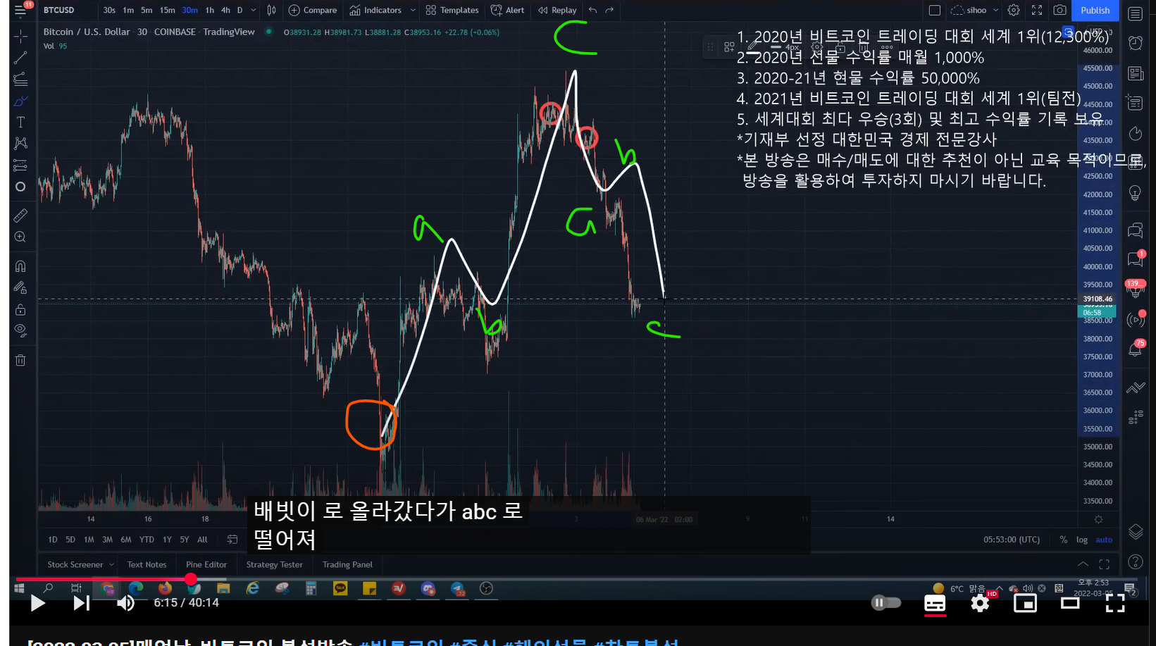 - 지난 방송 이후 숏 홀딩 중이었다.(42k 초반까지 가져갈 것이라고 말했었다.)